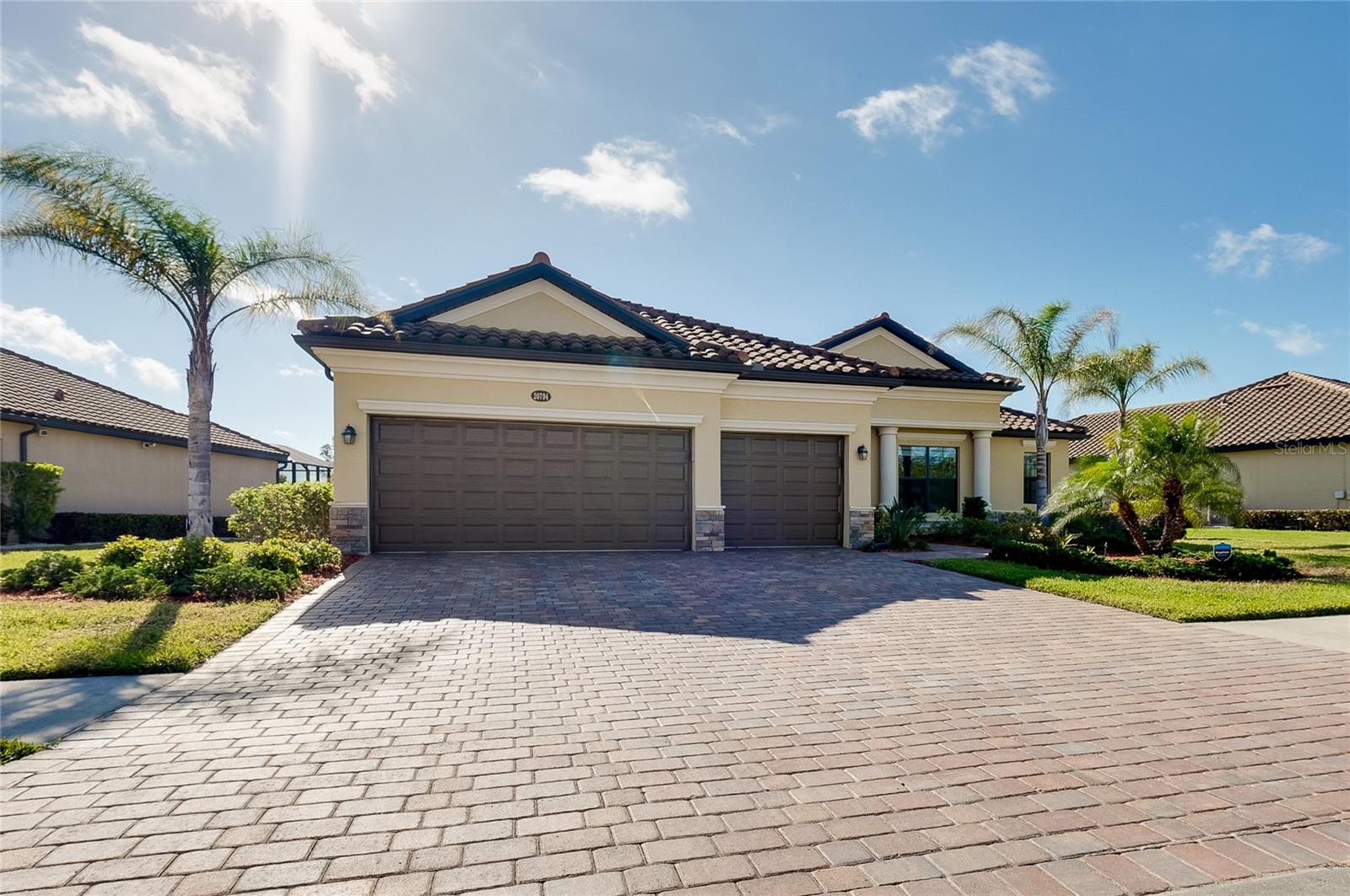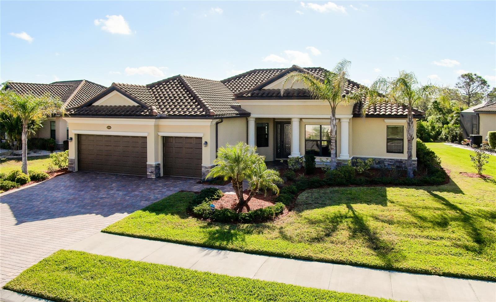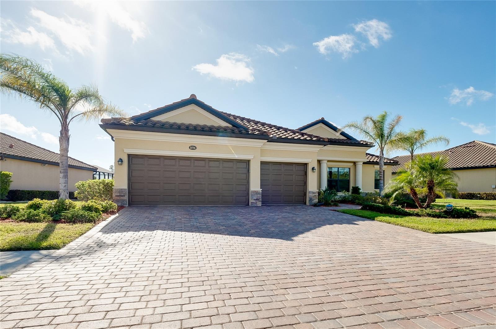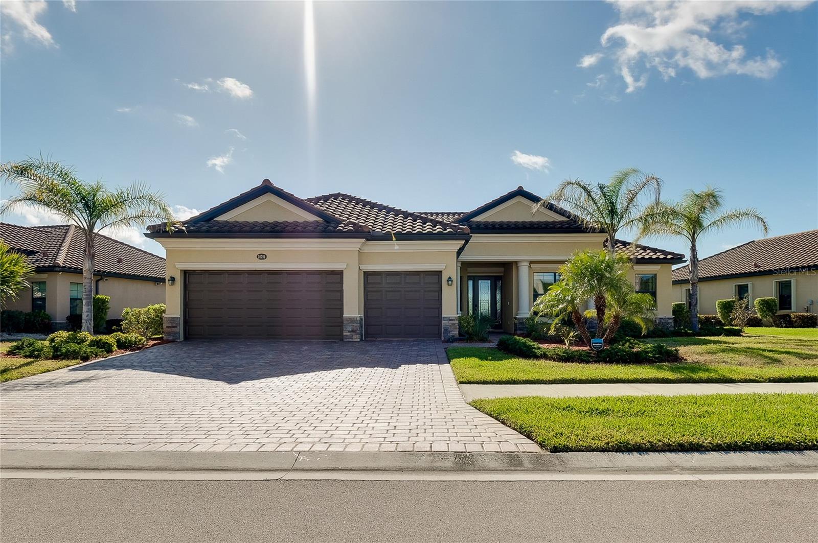 Like new, this 4-bedroom, 2 1/2 bath, 3-car garage home is situated on a cul-de-sac in the desirable Wellen Park neighborhood of Gran Paradiso, an upscale, Tuscan-inspired, resort-like community located just a golf cart ride from shopping, dining, and entertainment. This home is crafted for relaxation and sophistication, featuring an airy layout with sleek porcelain tile floors in the main living spaces and fresh carpet in the bedrooms. Step inside to discover tray ceilings, an open concept, and a stunning view through the sliding glass doors leading to your outdoor retreat. The chef’s kitchen showcases 42-inch light wood cabinetry, elegant granite countertops, stainless steel appliances, a vented hood, a pantry, a breakfast bar, and a cozy eat-in dining space. The master suite is a haven, offering a tray ceiling, a spacious walk-in closet, private access to the lanai area, and a spa-inspired en suite with dual vanities, a soaking tub, a walk-in shower, and granite counters. The 4th bedroom serves as an ideal space for an office or den. The 2nd bathroom connects to guest rooms 2 and 3. The 1/2 bath is inside the 3rd bedroom, providing direct entry to the lanai area. Additional perks include hurricane shutters and an in-wall pest control system. Cable, internet, lawn maintenance, and irrigation are covered in the monthly HOA fee of $329! Nestled in a gated, deed-restricted community with on-site management, Gran Paradiso offers premier amenities, including community pool, spa, fitness center, sauna, steam room, pickleball, tennis, basketball, playgrounds, library, craft rooms, billiards, aerobics studio, scenic walking and biking trails, and more. The community also features an engaging social calendar with year-round events, gatherings, and activities. Conveniently located just 15 minutes from 11 breathtaking Gulf beaches, the Atlanta Braves Spring Training Stadium, top-tier golf courses, dining, shopping, and exceptional fishing. Enjoy seamless access to Venice, Punta Gorda, Sarasota, and beyond. Don’t miss this outstanding opportunity to own a stunning home in paradise—schedule your private showing today.