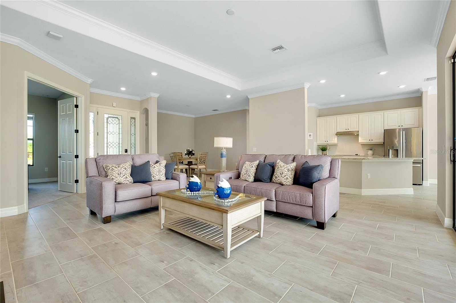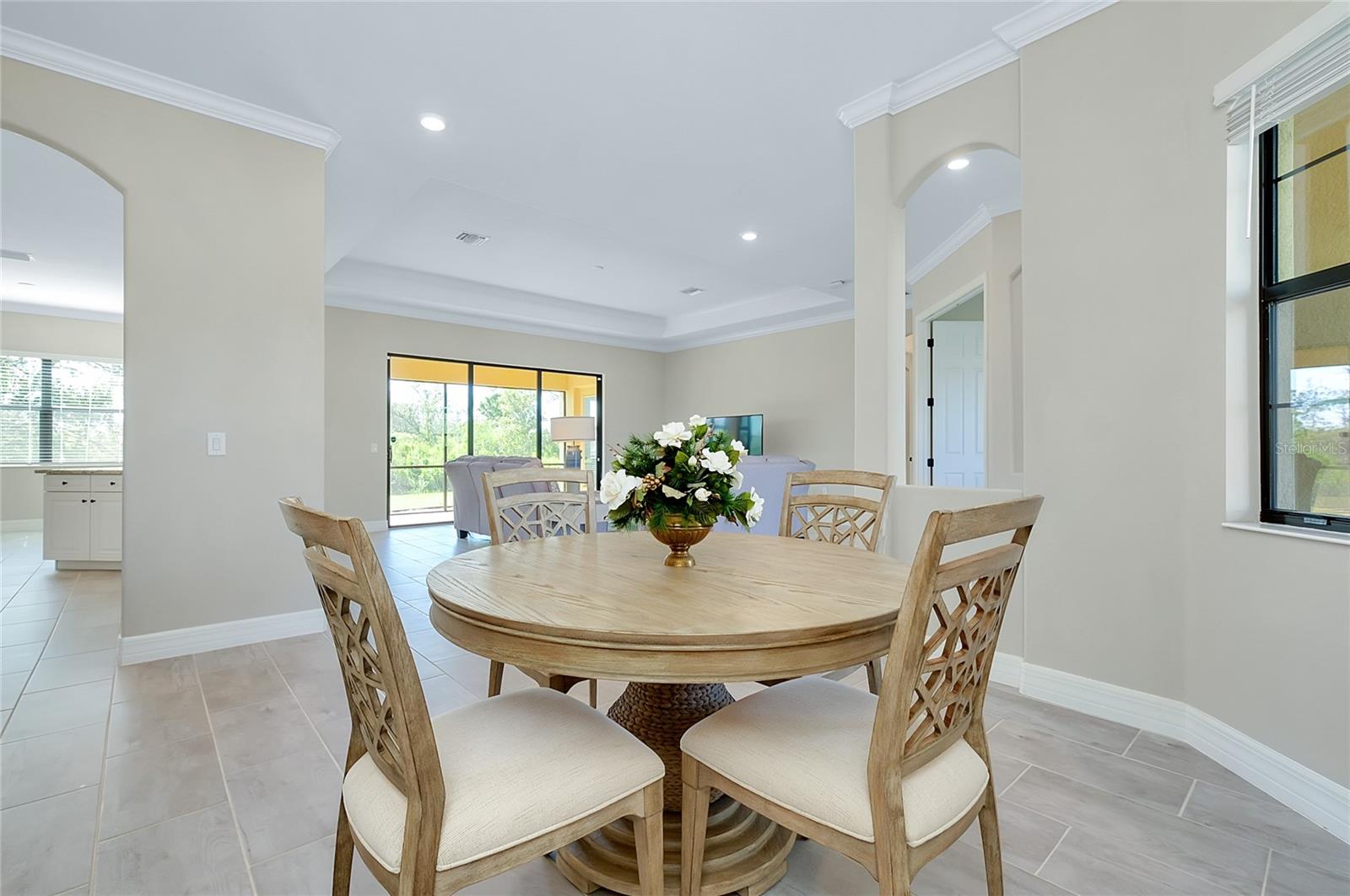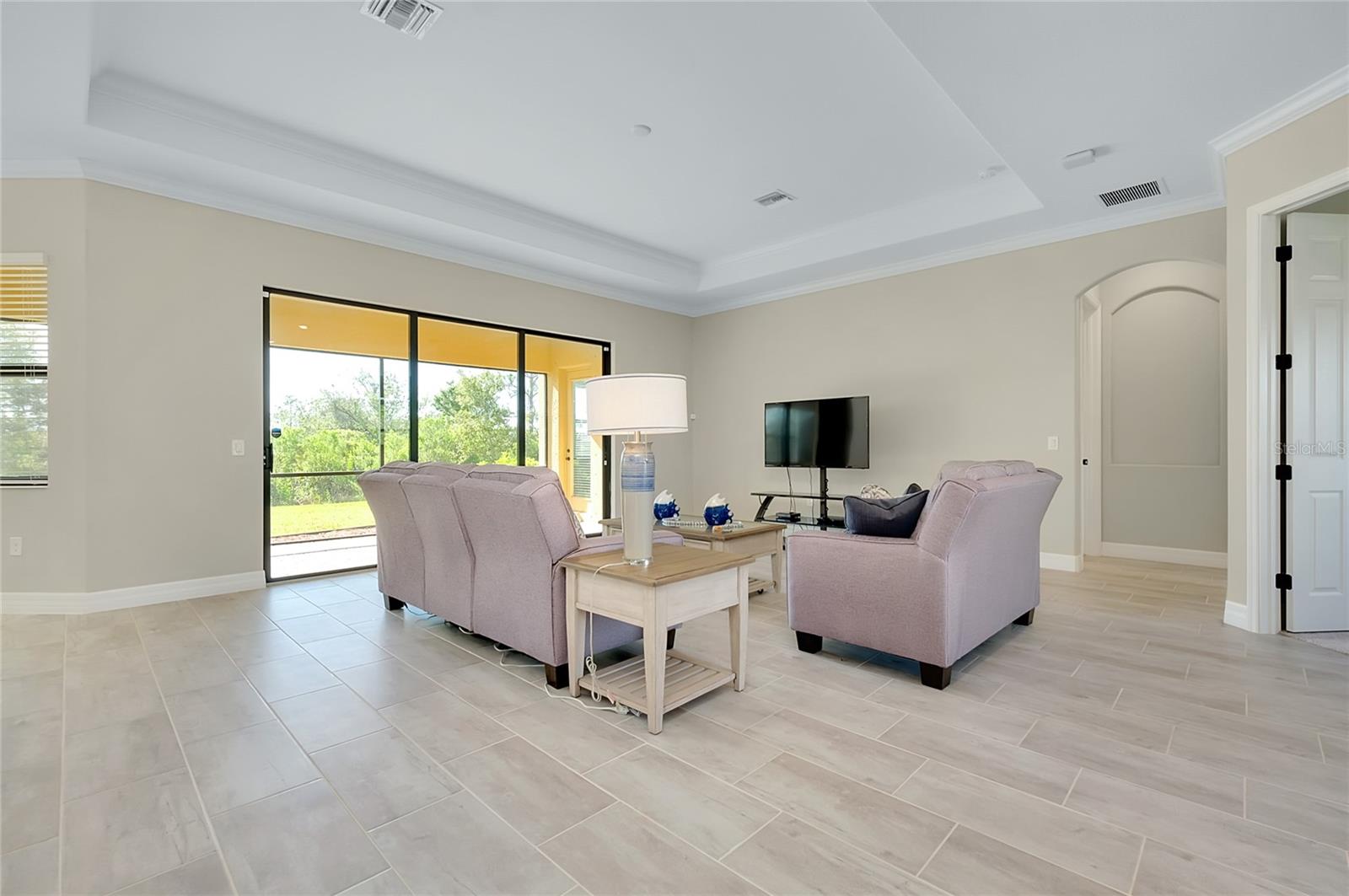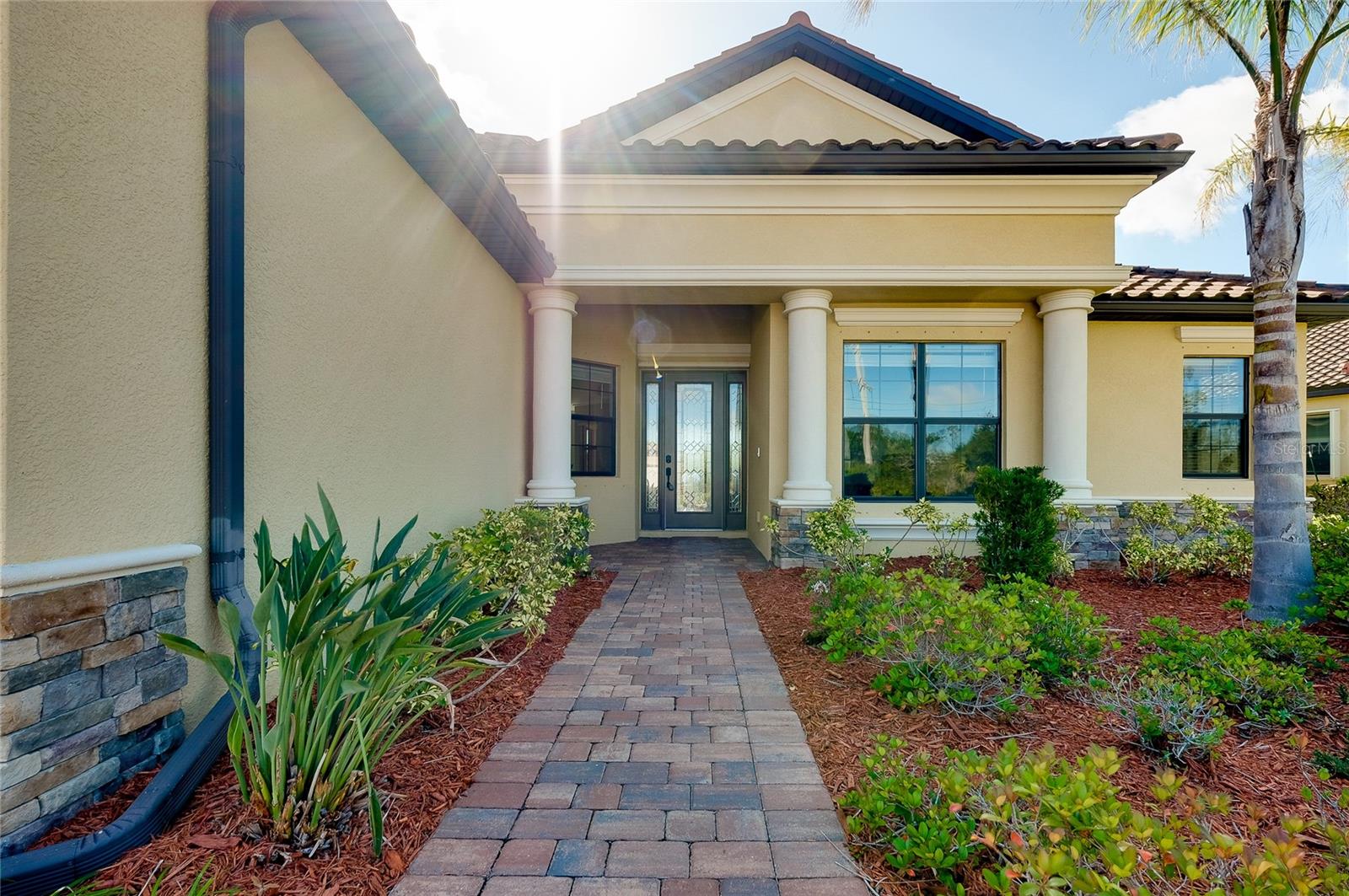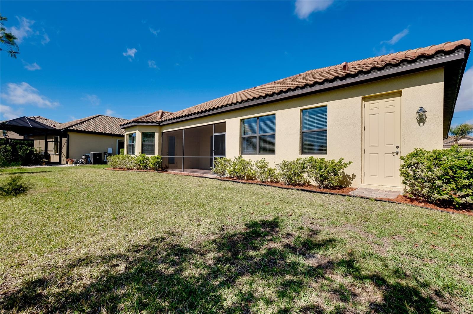 Like new, this 4-bedroom, 2 1/2 bath, 3-car garage home is situated on a cul-de-sac in the desirable Wellen Park neighborhood of Gran Paradiso, an upscale, Tuscan-inspired, resort-like community located just a golf cart ride from shopping, dining, and entertainment. This home is crafted for relaxation and sophistication, featuring an airy layout with sleek porcelain tile floors in the main living spaces and fresh carpet in the bedrooms. Step inside to discover tray ceilings, an open concept, and a stunning view through the sliding glass doors leading to your outdoor retreat. The chef’s kitchen showcases 42-inch light wood cabinetry, elegant granite countertops, stainless steel appliances, a vented hood, a pantry, a breakfast bar, and a cozy eat-in dining space. The master suite is a haven, offering a tray ceiling, a spacious walk-in closet, private access to the lanai area, and a spa-inspired en suite with dual vanities, a soaking tub, a walk-in shower, and granite counters. The 4th bedroom serves as an ideal space for an office or den. The 2nd bathroom connects to guest rooms 2 and 3. The 1/2 bath is inside the 3rd bedroom, providing direct entry to the lanai area. Additional perks include hurricane shutters and an in-wall pest control system. Cable, internet, lawn maintenance, and irrigation are covered in the monthly HOA fee of $329! Nestled in a gated, deed-restricted community with on-site management, Gran Paradiso offers premier amenities, including community pool, spa, fitness center, sauna, steam room, pickleball, tennis, basketball, playgrounds, library, craft rooms, billiards, aerobics studio, scenic walking and biking trails, and more. The community also features an engaging social calendar with year-round events, gatherings, and activities. Conveniently located just 15 minutes from 11 breathtaking Gulf beaches, the Atlanta Braves Spring Training Stadium, top-tier golf courses, dining, shopping, and exceptional fishing. Enjoy seamless access to Venice, Punta Gorda, Sarasota, and beyond. Don’t miss this outstanding opportunity to own a stunning home in paradise—schedule your private showing today.