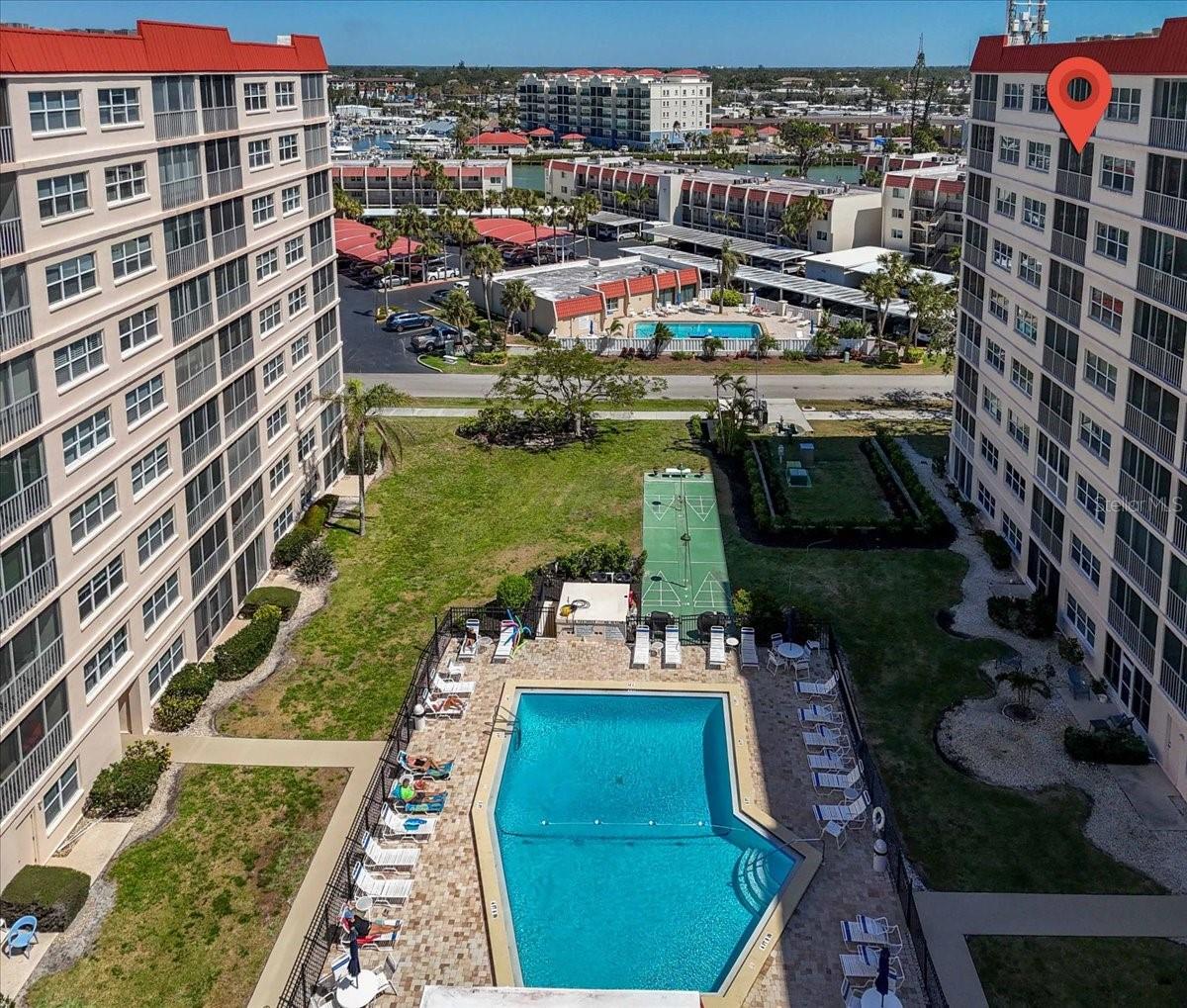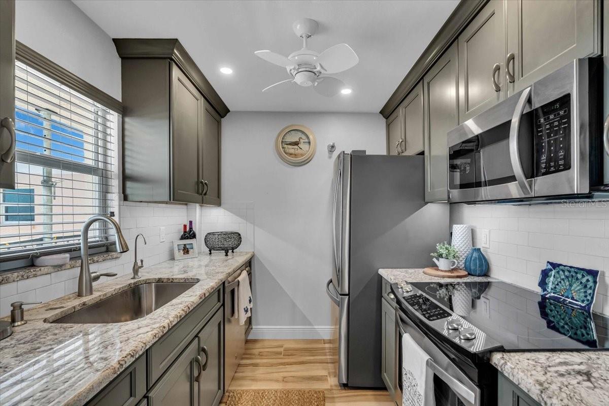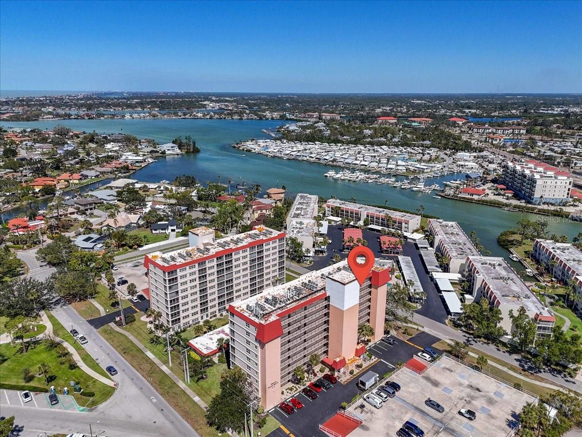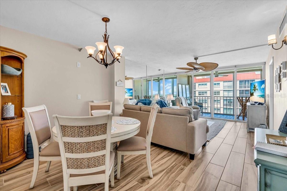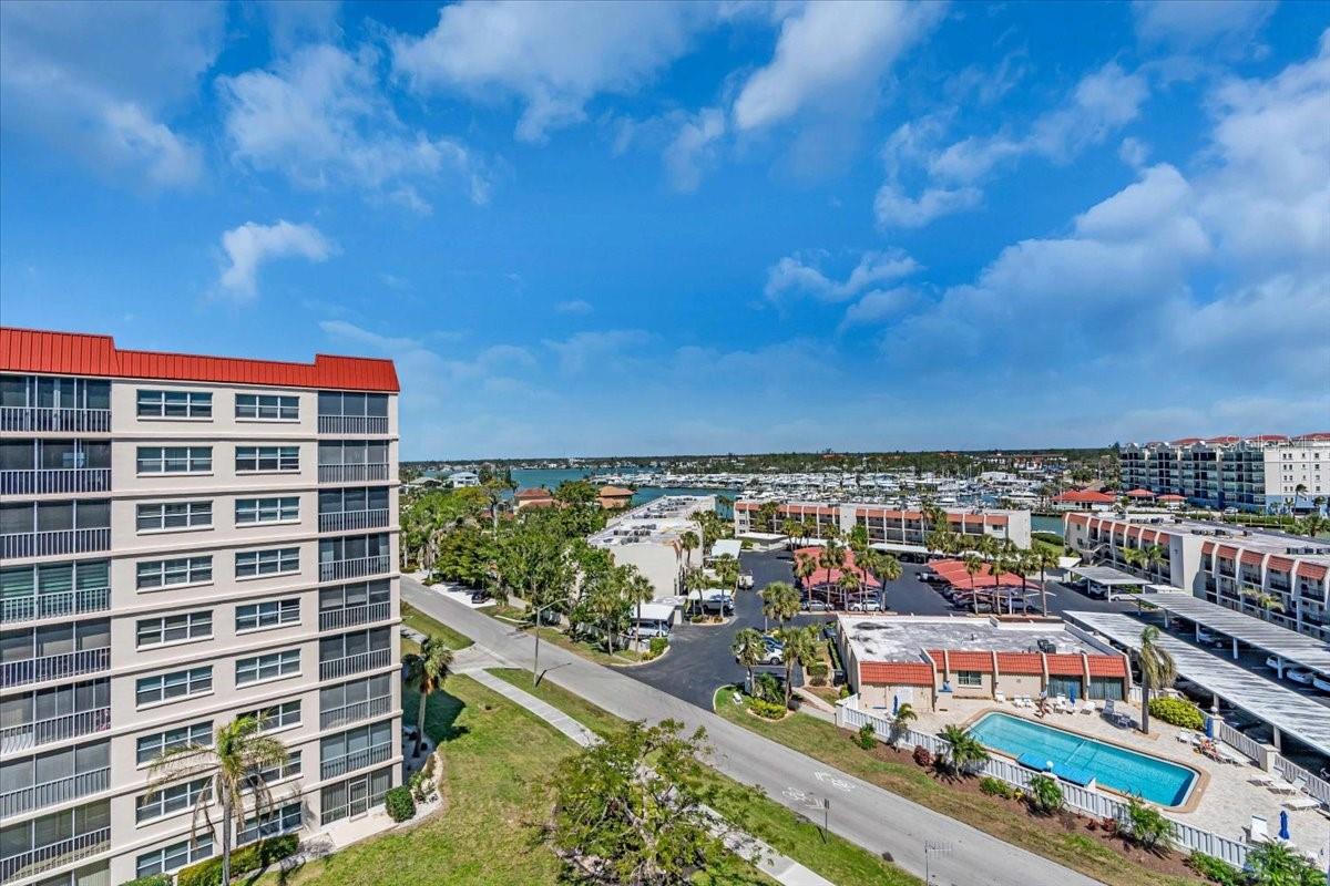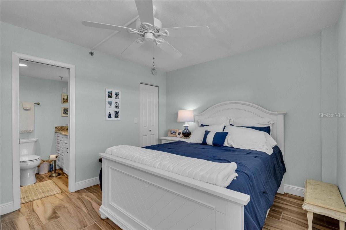 This stunning 8th-floor unit offers breathtaking water views of the Inter-coastal Water Way. Watch boats go by and enjoy the views Step inside to discover beautiful plank tile floors that add a modern touch throughout the space. The updated kitchen boasts newer appliances, a sleek deep sink, soft-close cabinets, and a stylish subway tile back splash, making it a delight for any home chef. The open-concept design seamlessly connects the dining area to the living room, creating a welcoming great room atmosphere. The spacious master bedroom is enhanced by plantation shutters and features an en suite bathroom with a walk-in shower and a walk-in closet. Enjoy picturesque views of the inter-coastal waterway from both the master bedroom and the living room, which opens onto a glass-enclosed lanai that is perfect for all-season living. The generous guest bedroom also features plantation shutters and its own en suite bathroom with a walk-in shower and a walk-in closet, offering privacy and comfort for visitors. This gorgeous, updated unit has plank tile flooring throughout, extending to the lanai, providing a cohesive and elegant look. With its fantastic location, you are a few blocks to the Historic Downtown Venice. Venice beaches, restaurants, and historic shops. Each unit includes a storage locker, and laundry facilities are conveniently located on each floor. This unit comes turn-key furnished, with the exception of a few personal items, making it ready for you to enjoy right away!