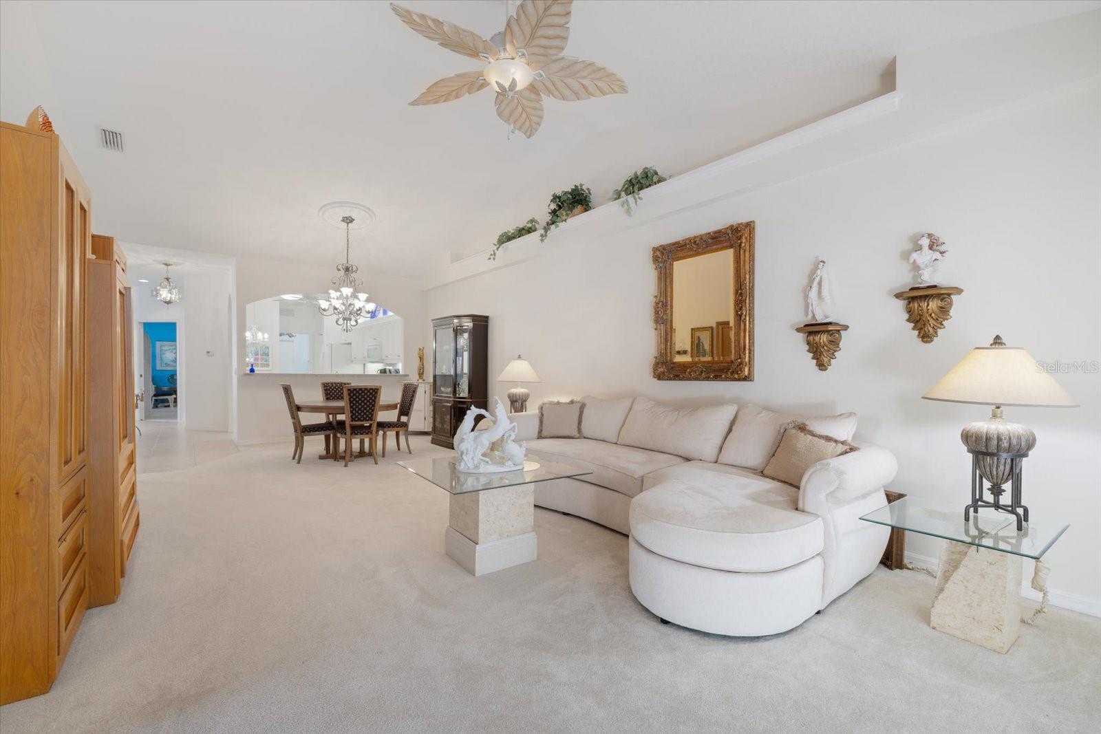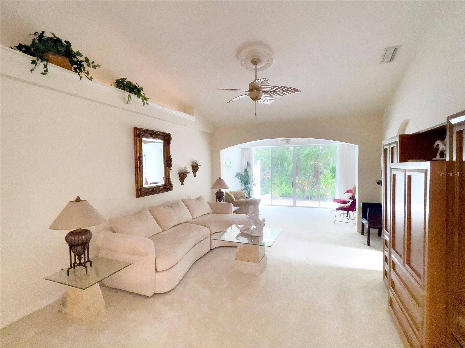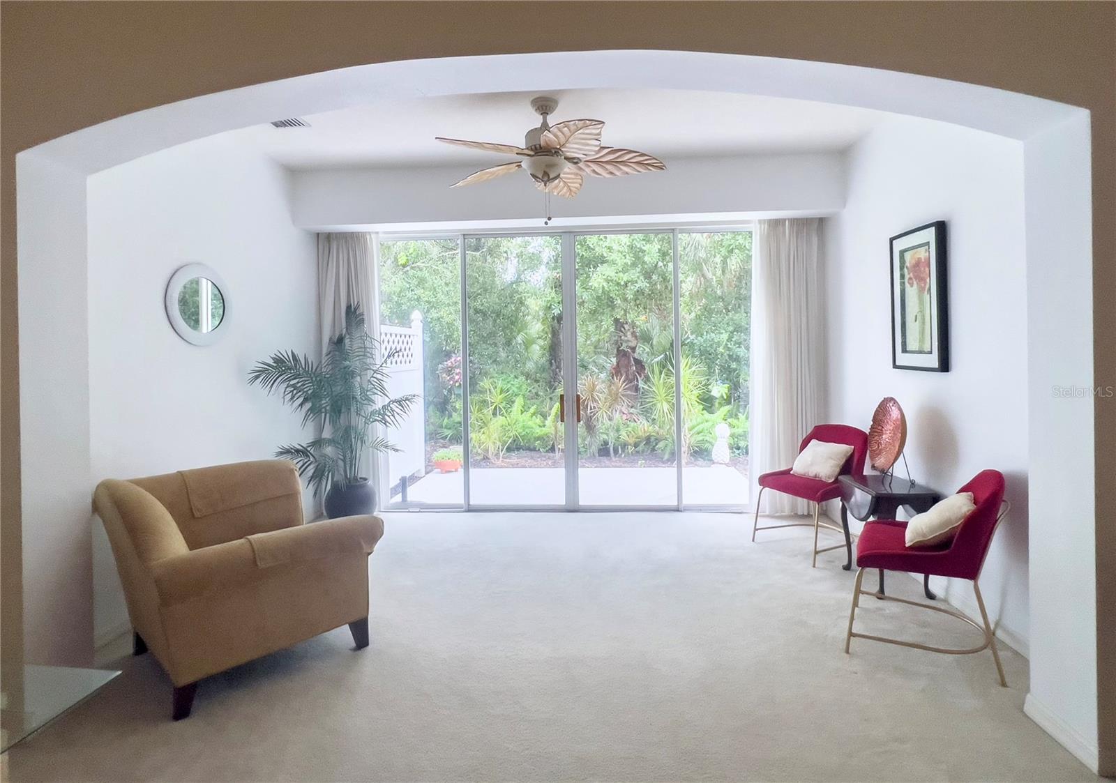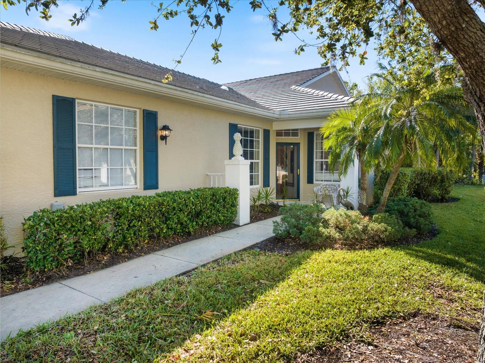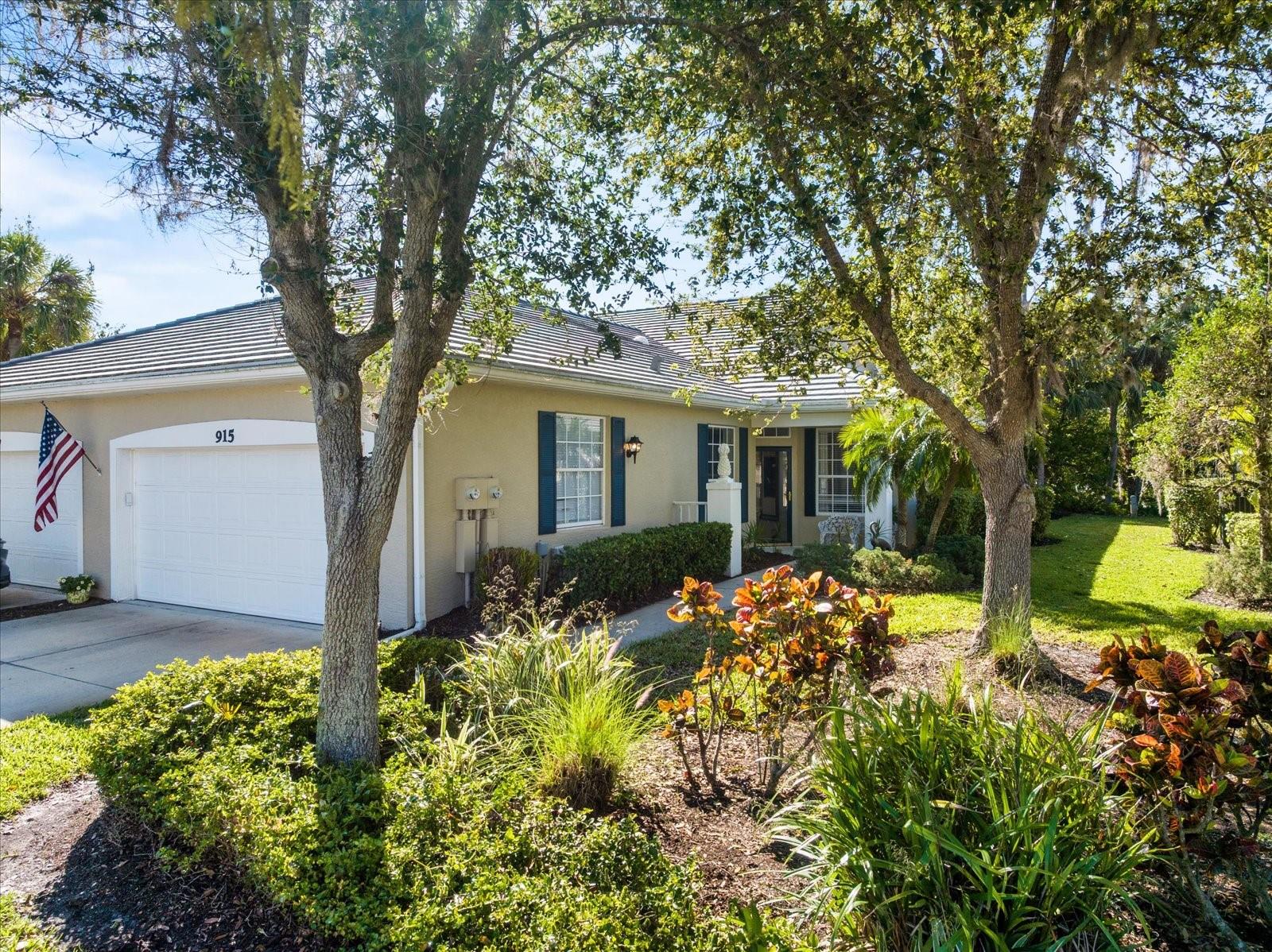 MOTIVATED SELLER! PRICE REDUCTION TO ALLOW FOR NEW FLOORING OR PERSONAL UPGRADES! Welcome to this serene maintenance-free VENICE VILLA in the highly desired community of St. Andrews Park of Plantation Golf and Country! This spacious home features 2 BEDROOMS, DEN (Optional 3rd BEDROOM) and 2 BATHROOMS. The home is nicely situated on a quiet, dead-end road, and offers a convenient location to the relaxing community pool across the street. The backyard features tranquil peaceful nature views of your own TROPICAL GARDEN! This preserved nature setting is a real gem of this home and offers hours of relaxation. No development will occur as it adjoins to the 13th hole of the Bobcat course. This lovely home comes “MOSTLY FURNISHED” and is MOVE-IN ready! Features include tall, cathedral ceilings, open layout, extended living room, split bedrooms, a bonus area off the kitchen for storage (or a craft area), plus a 2-car garage! The dining room showcases a high counter bar with conveying dining table. The spacious living room offers a conveying sofa, table set and Mid-Century armoire, while the bright kitchen conveys a cute round wicker table. The large master bedroom features 2 separate closets, beautiful southern exposure to your tropical garden and offers conveying wicker set. The en-suite master bathroom has a soaker tub, pocket commode and separate shower. The guest bedroom also has conveying wicker furniture. The cozy Den feels like a quiet reading room with its soothing blue walls and conveying leather sofa, chairs and wicker armoire. The Tile Roof was replaced in 2023, A/C 2018, Water Heater 2023. There is a new 4-point inspection recently performed and available to view. The HOA covers exterior, roof, water/sewer, basic cable, all lawn care, pest control, annual laundry duct cleaning, and maintenance of all the community pools. This premier lot offers much privacy with a preserve backyard, quick access to the neighborhood community pool (literally across the street), and is conveniently close to the MAIN PLANTATION GOLF and COUNTRY CLUB offering “OPTIONAL MEMBERSHIPS” in GOLF, SOCIAL or TENNIS! There's also 2 more St. Andrew's community pools just down the street to enjoy as well, one offering year round social activities! Plantation is a lifestyle community, yet Memberships are NOT MANDORATY and offer PREMIER GOLFING with 2 pristine courses, dining & lounging, Har-Tru tennis, pickle-ball, bocce ball, fitness center, a large community pool, plus a variety of social events! This is an ideal location, just off of CENTER RD, and only minutes to the NEW Wellen Park (with many new restaurants). And Downtown Historic Venice is a 6 miles away offering farmer's markets, our famous Venice Theatre, an active Art Center, boutique shops and numerous authentic restaurants from Greek, Italian to French! There's an appetite for everyone! Plus our area beaches offer amazing sunsets, drum dance circles, and the area's only DOG BEACH, Bohard Beach and Paw Park, a favorite to bring your furry friend to beach with you! Plus, our new state-of-art Sarasota Memorial medical facility is only 8 miles away! Call for your private tour! This is a community where neighbors will know your name!