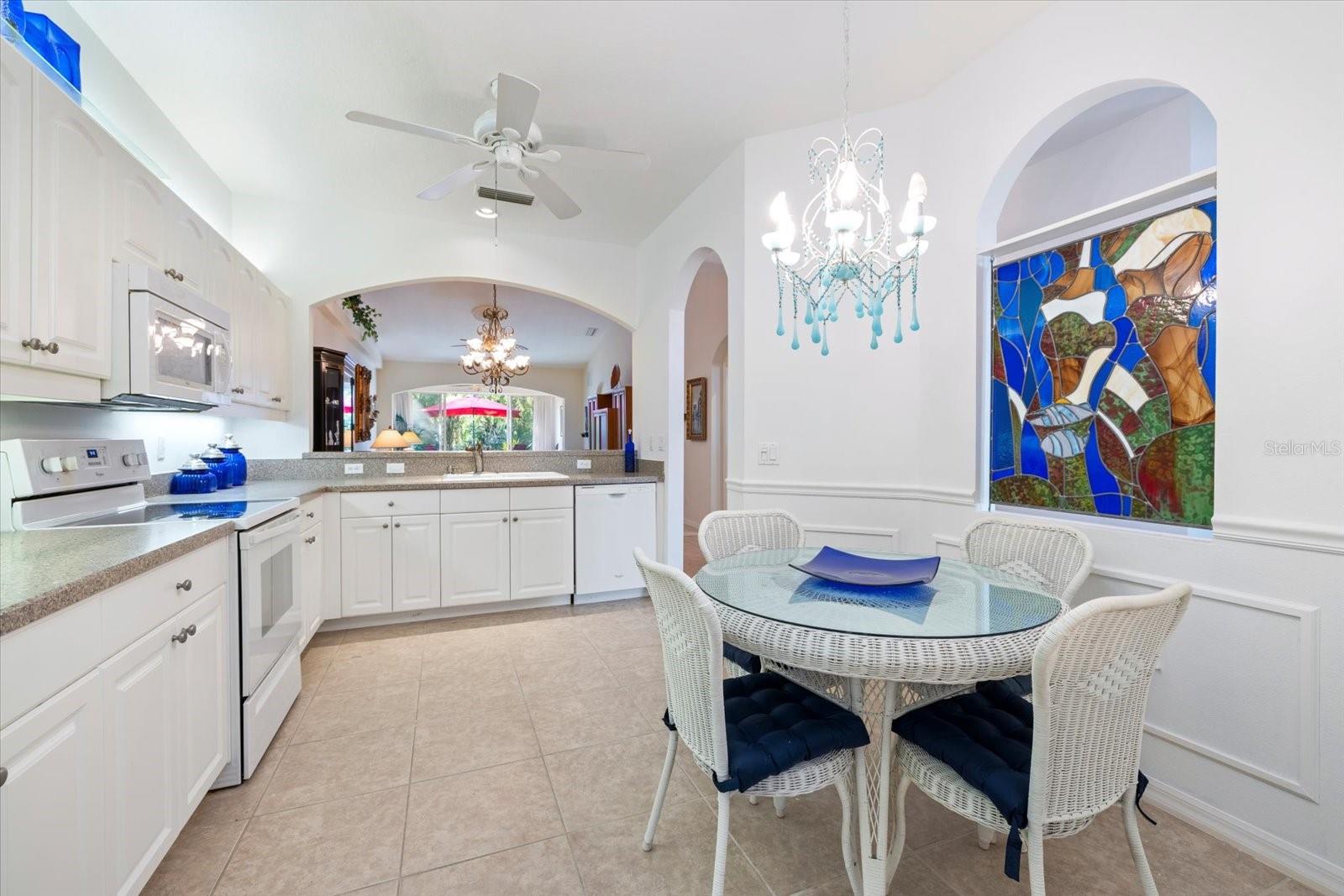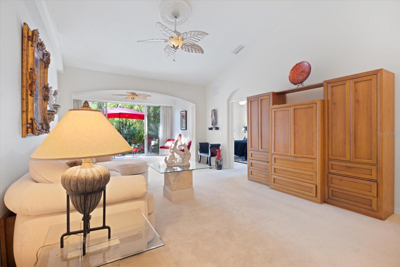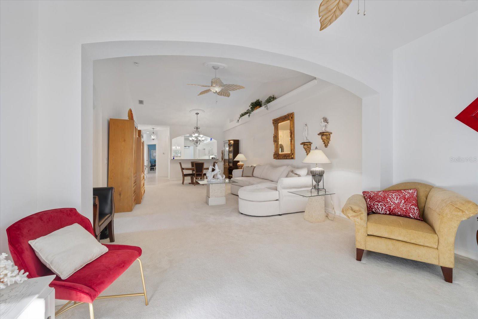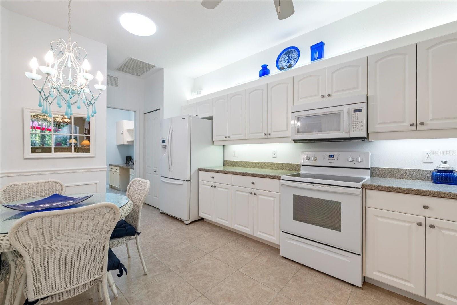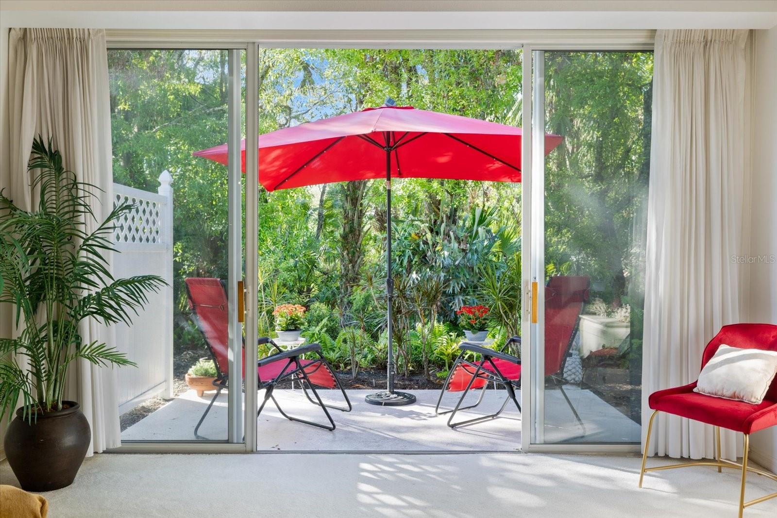 MOTIVATED SELLER! PRICE REDUCTION TO ALLOW FOR NEW FLOORING OR PERSONAL UPGRADES! Welcome to this serene maintenance-free VENICE VILLA in the highly desired community of St. Andrews Park of Plantation Golf and Country! This spacious home features 2 BEDROOMS, DEN (Optional 3rd BEDROOM) and 2 BATHROOMS. The home is nicely situated on a quiet, dead-end road, and offers a convenient location to the relaxing community pool across the street. The backyard features tranquil peaceful nature views of your own TROPICAL GARDEN! This preserved nature setting is a real gem of this home and offers hours of relaxation. No development will occur as it adjoins to the 13th hole of the Bobcat course. This lovely home comes “MOSTLY FURNISHED” and is MOVE-IN ready! Features include tall, cathedral ceilings, open layout, extended living room, split bedrooms, a bonus area off the kitchen for storage (or a craft area), plus a 2-car garage! The dining room showcases a high counter bar with conveying dining table. The spacious living room offers a conveying sofa, table set and Mid-Century armoire, while the bright kitchen conveys a cute round wicker table. The large master bedroom features 2 separate closets, beautiful southern exposure to your tropical garden and offers conveying wicker set. The en-suite master bathroom has a soaker tub, pocket commode and separate shower. The guest bedroom also has conveying wicker furniture. The cozy Den feels like a quiet reading room with its soothing blue walls and conveying leather sofa, chairs and wicker armoire. The Tile Roof was replaced in 2023, A/C 2018, Water Heater 2023. There is a new 4-point inspection recently performed and available to view. The HOA covers exterior, roof, water/sewer, basic cable, all lawn care, pest control, annual laundry duct cleaning, and maintenance of all the community pools. This premier lot offers much privacy with a preserve backyard, quick access to the neighborhood community pool (literally across the street), and is conveniently close to the MAIN PLANTATION GOLF and COUNTRY CLUB offering “OPTIONAL MEMBERSHIPS” in GOLF, SOCIAL or TENNIS! There's also 2 more St. Andrew's community pools just down the street to enjoy as well, one offering year round social activities! Plantation is a lifestyle community, yet Memberships are NOT MANDORATY and offer PREMIER GOLFING with 2 pristine courses, dining & lounging, Har-Tru tennis, pickle-ball, bocce ball, fitness center, a large community pool, plus a variety of social events! This is an ideal location, just off of CENTER RD, and only minutes to the NEW Wellen Park (with many new restaurants). And Downtown Historic Venice is a 6 miles away offering farmer's markets, our famous Venice Theatre, an active Art Center, boutique shops and numerous authentic restaurants from Greek, Italian to French! There's an appetite for everyone! Plus our area beaches offer amazing sunsets, drum dance circles, and the area's only DOG BEACH, Bohard Beach and Paw Park, a favorite to bring your furry friend to beach with you! Plus, our new state-of-art Sarasota Memorial medical facility is only 8 miles away! Call for your private tour! This is a community where neighbors will know your name!