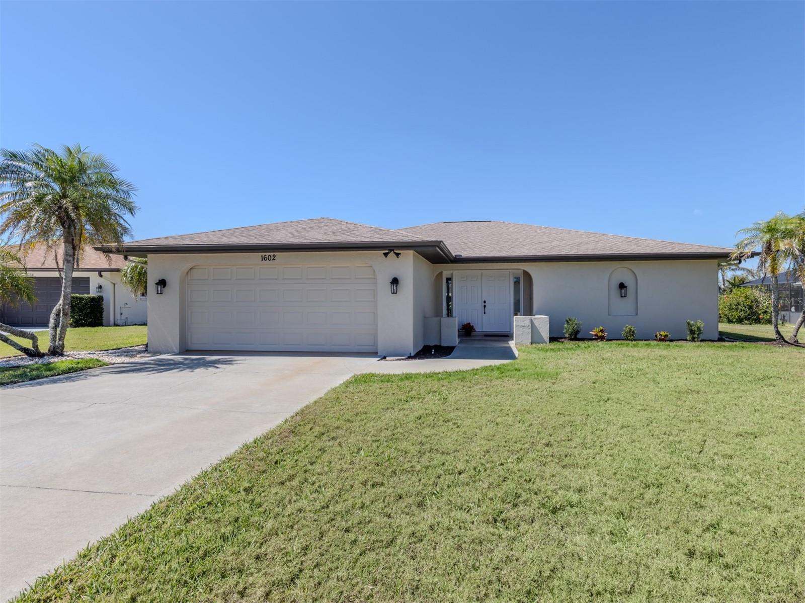 One or more photo(s) has been virtually staged. MARVEL AT YOUR BRAND NEW KITCHEN! Stylish new white shaker style cabinets topped with gorgeous new white quartz counter tops. Upgraded stainless steel Whirlpool appliances complete the package. Be the first to cook in this delightful kitchen. Freshly painted throughout. Both bathrooms are being updated with new vanities, quartz countertops, and mirrors. This OPTIMAL LOCATION is priceless. Situated on a quiet cul-de-sac street near everything. Blocks to the YMCA, 5.6 miles to the beach, 4 miles to I-75, and just blocks to grocery stores, shopping, restaurants, dry cleaner, medical centers and more. Every essential is in walking distance. Experience the charm of this well-maintained 2-bedroom, 2-bathroom home in the sought-after Jacaranda West area. With great bones and sturdy block and stucco construction, it features 1,280 sq ft of living space and a full 2-car garage. The large 23'x21' great room makes this a very comfortable home to live in. Enjoy the expansive 29’ x 12’ screened and tiled lanai with serene pond views. Upgrades include a new hurricane-rated double entry door, new water heater with 6 year warranty, a 3-year-old AC, a 5-year-old roof, and a new sprinkler pump in 2023. Fresh exterior paint, new designer exterior lights, and interior vinyl flooring add to its appeal. Benefit from flood zone “X” status and low HOA fees of $528/year.