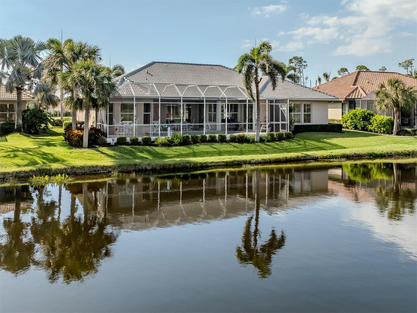 Be sure to view this special property soon! Located in a premium Lakefront location in popular Sawgrass, one of Venice's highly sought-after golf communities. The hard-to-find 3,200 sq. ft. sized home is a true 3 bedroom/3 full baths plus office, created with a flowing open floorplan. The extra-size kitchen and cafe' area as well as the spacious family room and living room have panoramic lake views and overlook the large pool and caged lanai. You'll find plenty of space to welcome family and friends. Two of the sizable bedrooms and bath are in one wing of the home and the truly masterful primary suite is on the opposite side, offering maximum comfort for all. One of the 3 baths even has dedicated pool access. The TILE ROOF was just replaced as of Feb. 2025, adding extra value and many years of safety ahead. The Sawgrass community has no CDD fees, optional 9 holes of golf, a large, sunshiny pool and resort-style lounging area, various fun sport activities and many social opportunities. Sawgrass is just 4 miles to Venice Island and all that it has to offer, from beaches to bistros to boutiques. This fine home was beloved by its previous owners and their family and has not on the market before, so be sure you don't miss the opportunity!