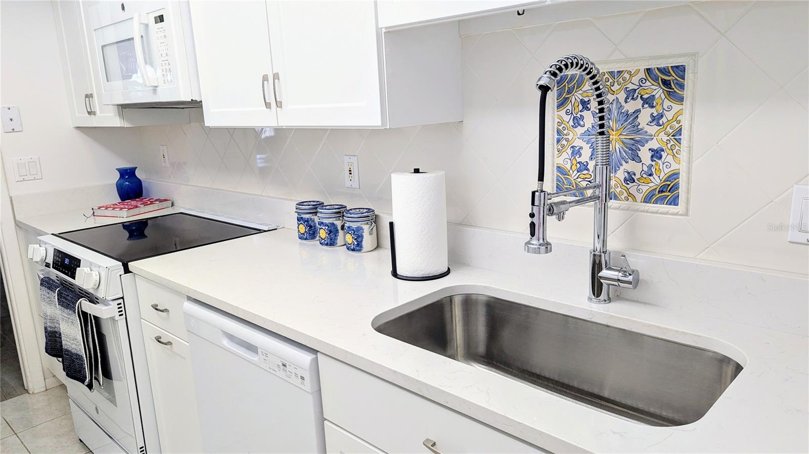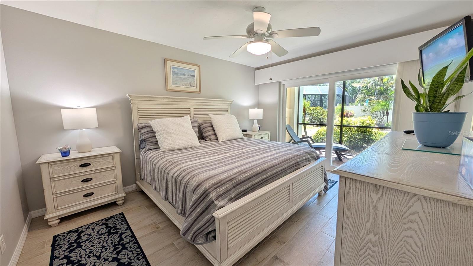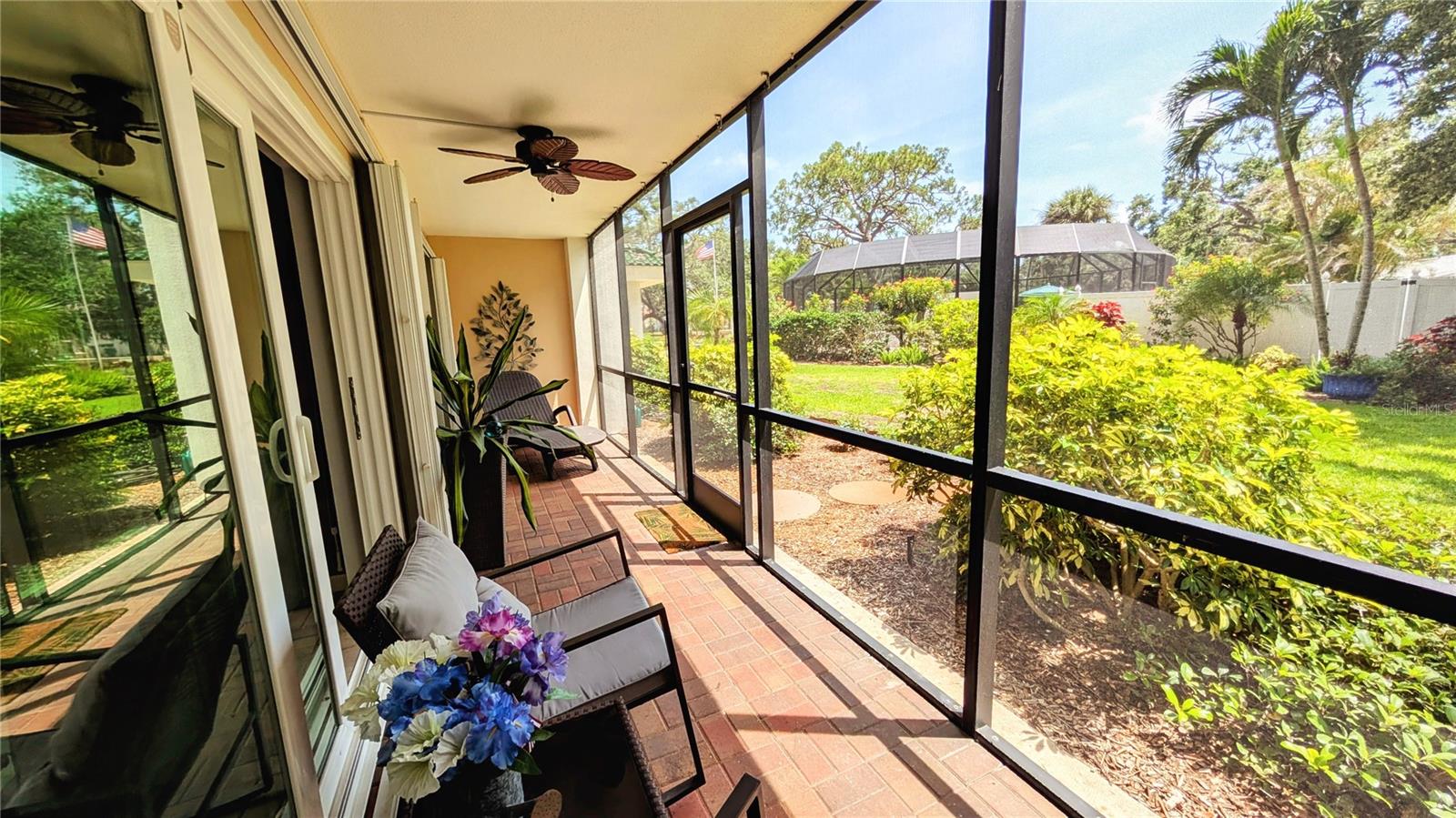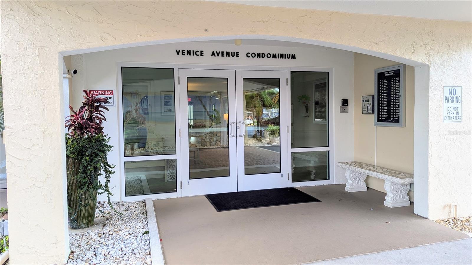 Your Secure Sanctuary on Sunny Venice Island! Experience the best of Florida living with unparalleled peace of mind in this beautifully updated 55+ condo. Nestled perfectly between Historic Downtown and our pristine Gulf beaches, every convenience is just steps away – from the vibrant farmers market to boutique shopping; from pickleball matches to tranquil banyan tree strolls. Feel truly secure with impact glass sliders, a Ring doorbell system for your peace of mind, and the added assurance of a lower risk X flood zone with solid insurance and a brand new roof! Enjoy turnkey living with tasteful coastal decor, new water heater (2024), and AC (2022), new apliances and quartz countertops and premium porcelain tile flooring. Your ground-floor unit offers easy access to the heated pool, club room, and lush garden views from your private screened lanai. Join a friendly, active community at Venice Avenue Condominium, where social activities abound. No pets permitted. Ready to embrace a worry-free Venice lifestyle? Schedule your private showing today and discover true serenity!