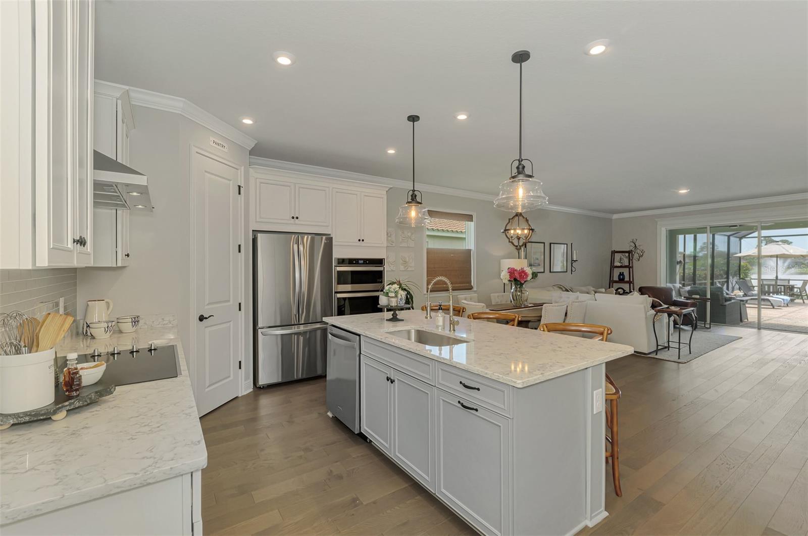 "Shows like a model! This stunning Riviera Coastal II home in the sought-after Renaissance at West Villages boasts over $80,000 in upgrades, including gorgeous engineered hardwood floors, a custom fireplace, and a custom pantry. Featuring 3 bedrooms, 2 baths, and a versatile flex room, the primary bedroom is privately located away from the other 2 bedrooms and bath, offering ultimate relaxation and privacy, complete with its own coffee bar for added luxury. The kitchen is a chef’s dream with beautiful upgraded cabinets and a custom-wrapped island, perfect for both cooking and entertaining. The spacious, open-concept layout is flooded with natural light. Seamless indoor-outdoor living awaits with a stunning triple-slider that fully opens to the pool lanai, creating an effortless flow for entertaining and relaxation Step outside to the beautiful south facing pool with waterfall and custom landscaping, so peaceful and inviting. The incredible 1200 square foot outdoor living space is the perfect extension of the home’s luxurious feel. Enjoy resort-style amenities in this vibrant community, the beautiful new Wellen Park across the street and just minutes from shopping, dining, world-class beaches. A must-see opportunity for elevated living!"