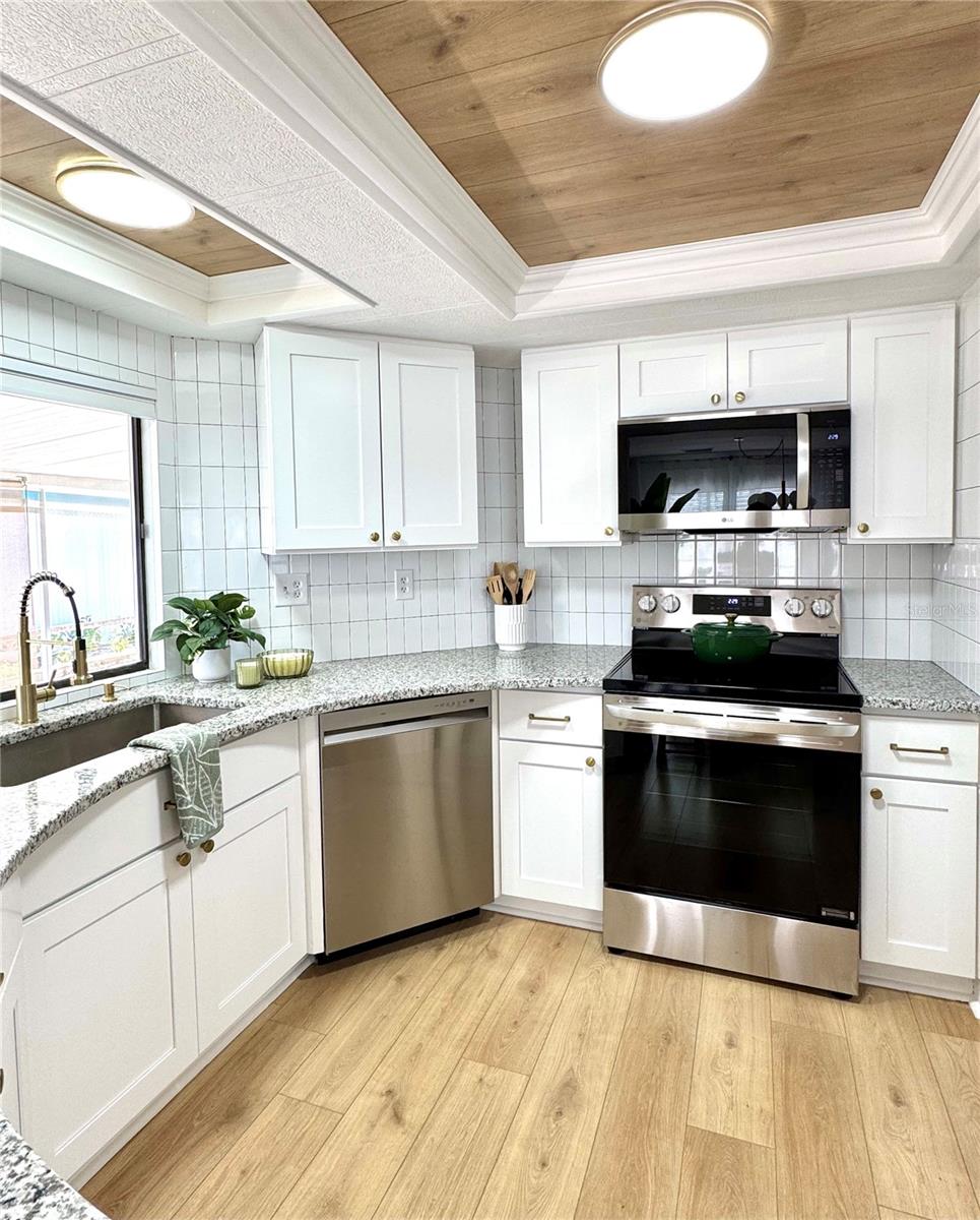 You will fall in love with this manufacture home in one of the hottest places everyone is moving to Venice Florida. The entire home has been completely remodeled. New Kitchen with Soft Close Cabinetry, Granite Countertops, subway tile backsplash, built in shelving and dimmers. Stainless steel appliances, and a built in coffee bar. New wood flooring throughout the entire home, even in the enclosed Lanai. Which offers lots of sunlight, a great place for relaxing reading a book or drinking your morning cup of Mojo. A Great Open Floor Plan, starting with an L-shaped living room offering space for all of the family, as well as a cell phone lounge area. The dining room is set up with a mini bar great for entertaining guests. Master Bedroom with private en-suite, S-marble counter tops and shower with unique tile backsplash all the way to the ceiling. Large size walk-in closet w/ organizers. The Guest room also with a large size Walk-in closet and private bath with tub. Top/Bottom window shades on all windows throughout the entire home, so you can control the amount of light coming into the home. Great curb appeal with brand new Bahama shutters installed and under car port shades, plus shed, with keyless entry. The community is the Best keep secret, plenty of friendly neighbors, some with private block parties. The community offers 2 heated pools, spas, 2 clubhouses, a miniature golf course, along with a nice size fitness center. Plenty of social events, shows, luau’s, soc hops, disco nights, St Patty day golf cart parades, park breakfasts and dinners throughout the year. What more could you ask for? Come and check out this lovely home as well as this awesome park. Don’t forget this is a Co-op Community, which means reasonably low fees, and shared ownership!! Venice Florida, great place to live, with 4 beaches within a short distance. The downtown Venice is 2.5 miles away with plenty of restaurants, shopping and beach. The new Wellen Park, with its new downtown area and the Atlanta Braves spring training stadium are close by. Venice has some really wonderful sunsets and lovely skies in the evening. So, don't delay make your appointment today !!