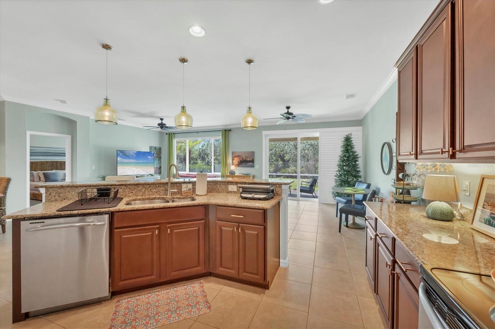 Beautiful 3-Bedroom Home in Gated Community – Minutes from the Beach! This stunning 3-bedroom, 2-bathroom home with a 2-car garage offers a maintenance-free exterior and is located in an amazing location—less than 10 minutes to Manasota Beach, 10 minutes to downtown Venice and Venice Beach, and close to shopping and dining. Inside, you'll find a spacious open great room and dining area, perfect for entertaining. The oversized kitchen features a breakfast bar, beautiful granite countertops, and wood cabinets, all overlooking the great room. Enjoy the high ceilings, great lighting, and stylish finishes throughout. The home boasts tile flooring in the main areas and bathrooms, new carpet (2022) in two bedrooms, and bamboo flooring in the third. Relax on the nice-sized lanai with plenty of seating space. Major updates include a new roof (2023), new heat/air unit (2021), water heater (2020), hurricane-impact windows & doors (2023), and fresh interior & exterior paint. Located in a well-maintained, gated community, residents enjoy access to a community pool, spa, and clubhouse. This is the perfect place to enjoy Florida living! Call today for your private showing!