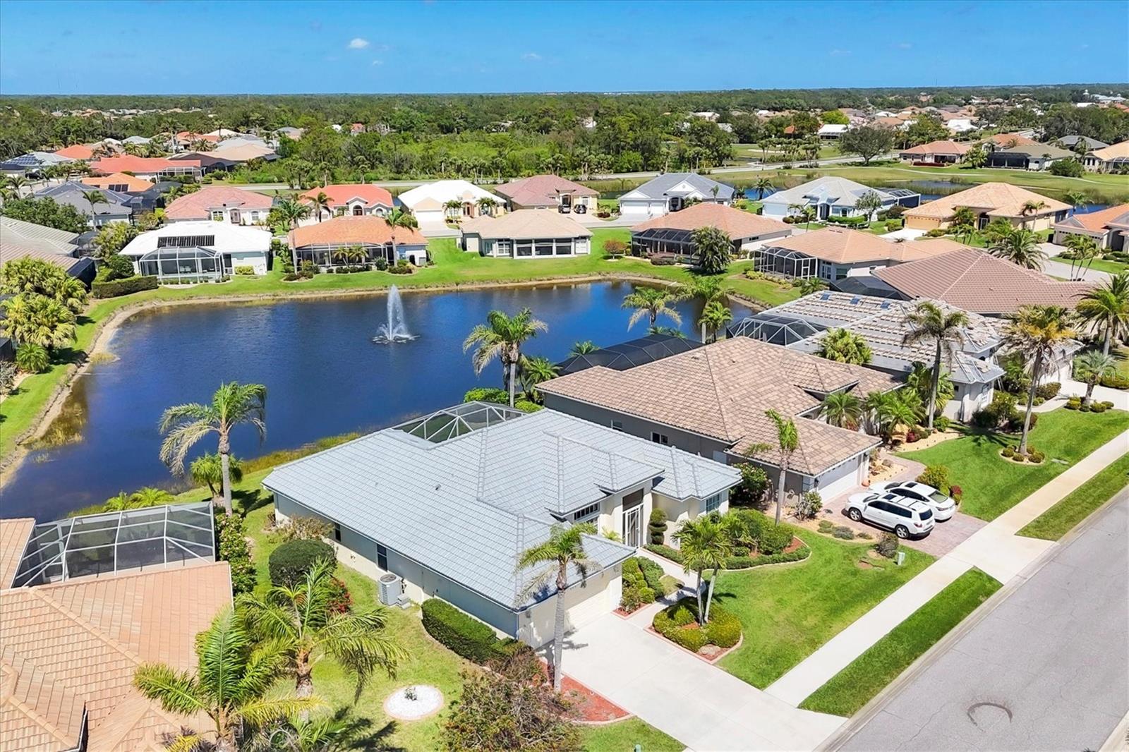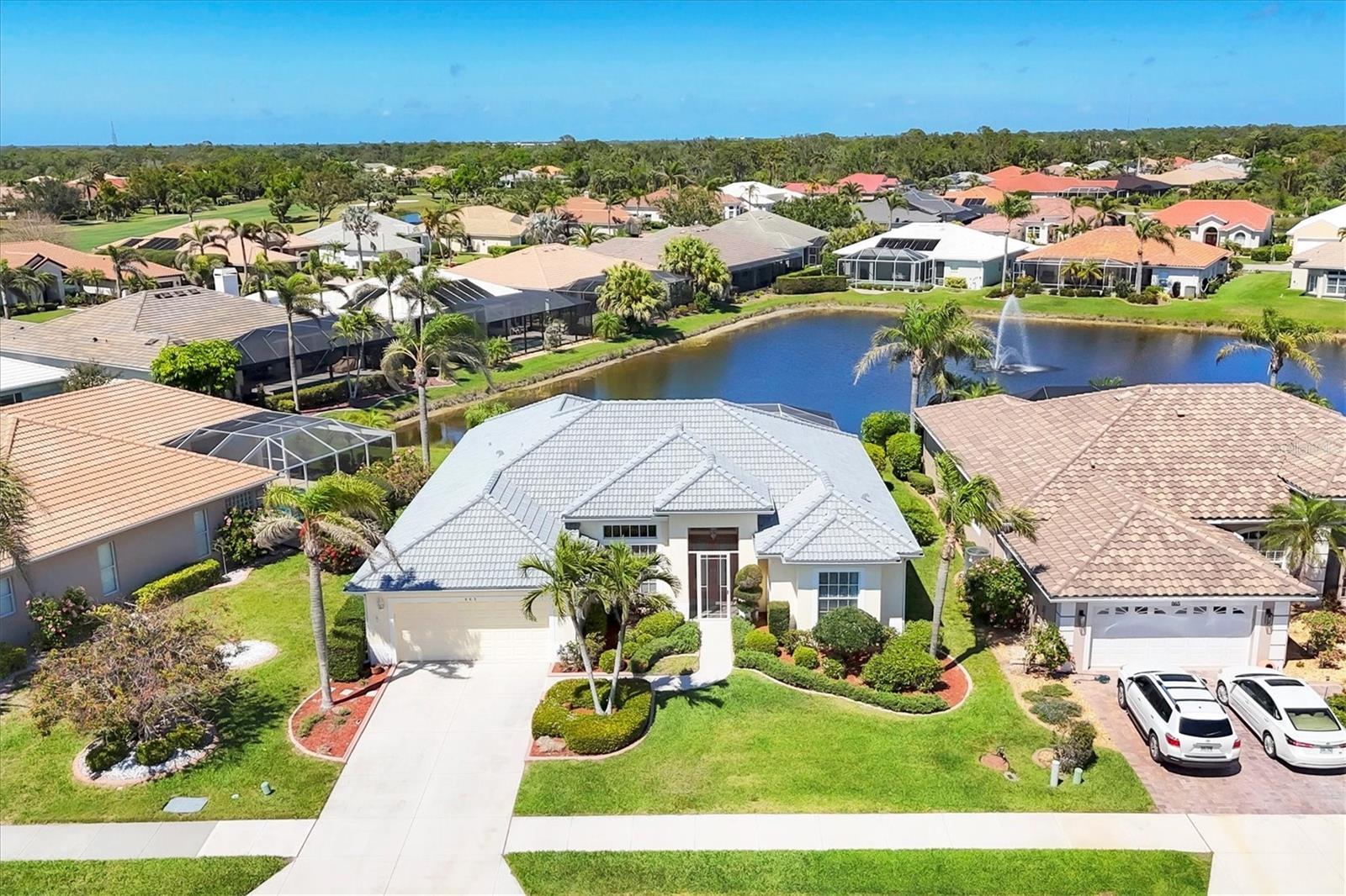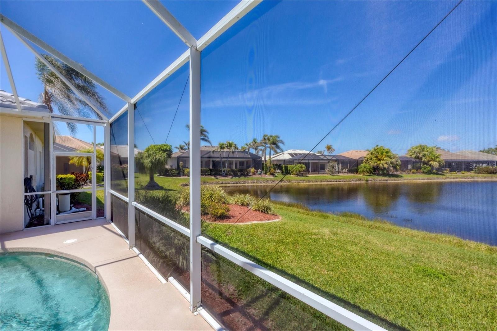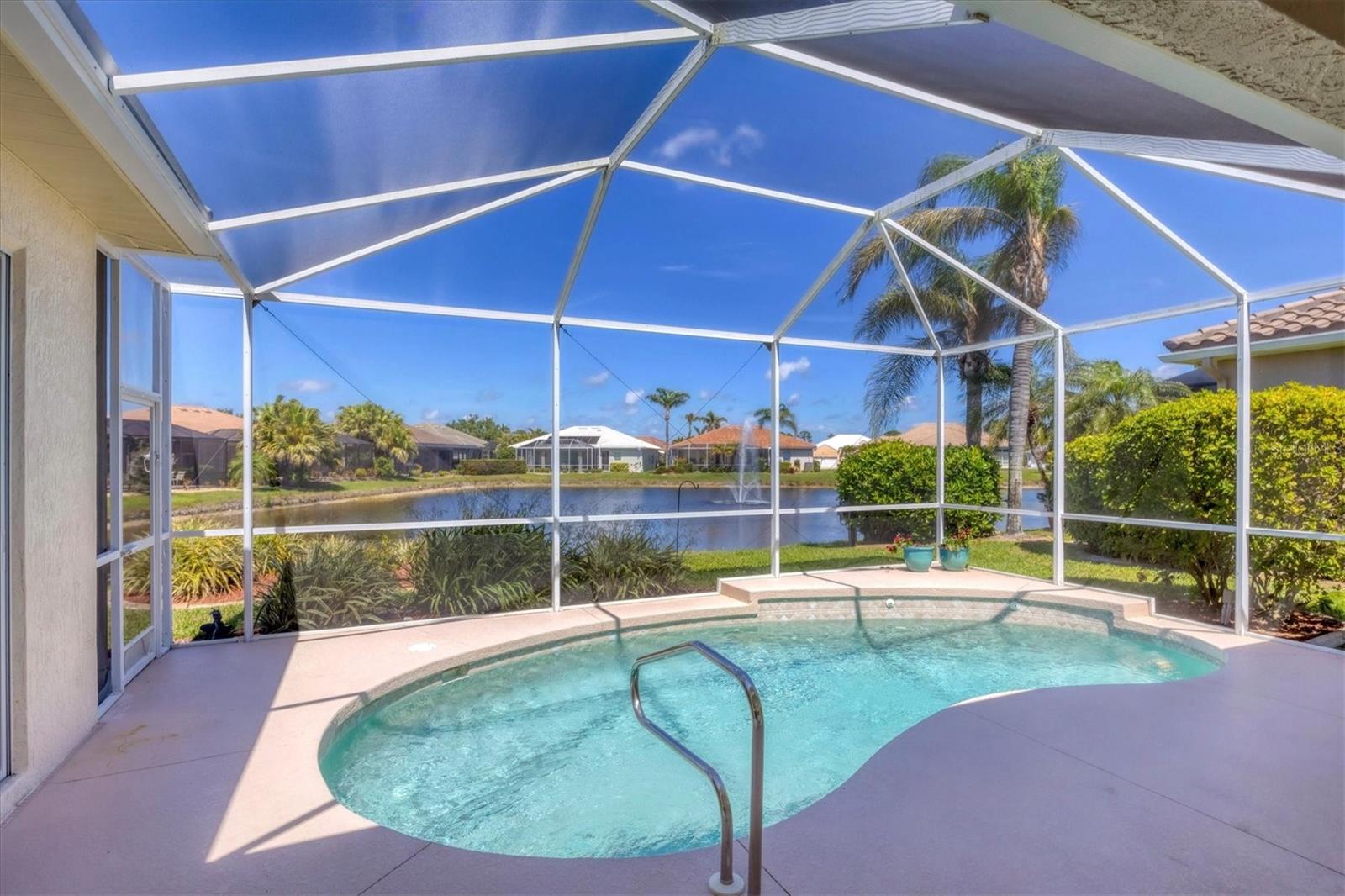 BACK ON THE MARKET! BUYERS LOSS IS YOUR GAIN! SEE IT NOW BEFORE SOMEONE ELSE SNAPS IT UP! Fantastic Pool home located in one of the most coveted areas of Pelican Pointe. 3BD/2BA/2CG. Tranquil LAKE views with a fountain spray in the middle ( the only lake to have one). Private pool and large lanai for outdoor enjoyment and entertaining. Beautiful curb appeal as you drive up to the home surrounded by tropical landscape. Screened front entry with double glass doors and transom window for lots of natural light. Enter into the formal living and dining room area where the gorgeous view will have you dreaming of relaxing days on the lanai and cooling off in the pool. Through the arched doorway into the kitchen and family room area where the views are abundant. Kitchen offers Corian counters offers lots space for kitchen activities. Raised panel Wood cabinets, new refrigerator, tile backsplash, and tons of recessed lighting. Breakfast nook with aquarium window overlooking the view. Large Master Bedroom with en suite bath and 2 walk in closets. Tray ceiling and crown molding enhance the room. Master bath offers dual sinks, walk in shower, and Jacuzzi tub with jets. Guest bedrooms on the other side of home for everyone's privacy. NEW ROOF. HW 2021. 3D Walk through at : https://my.matterport.com/show/?m=XsNAE9jfEqe Pelican Pointe is Venice's premier community with resort style amenities- Clubhouse with restaurant/bar/grill, heated pool, fitness center, tennis courts, pickle ball, tons of social activities, social room/library, 27 holes of golf and pro shop. Huge and very active Women’s Association with tons of activities to choose from. Golf membership is NOT mandatory. LOW HOA FEES. All centrally located minutes to Venice Beach, Venice Downtown, shopping, theatres, restaurants, highways, airports, and so much more.Come find your Florida Lifestyle today!