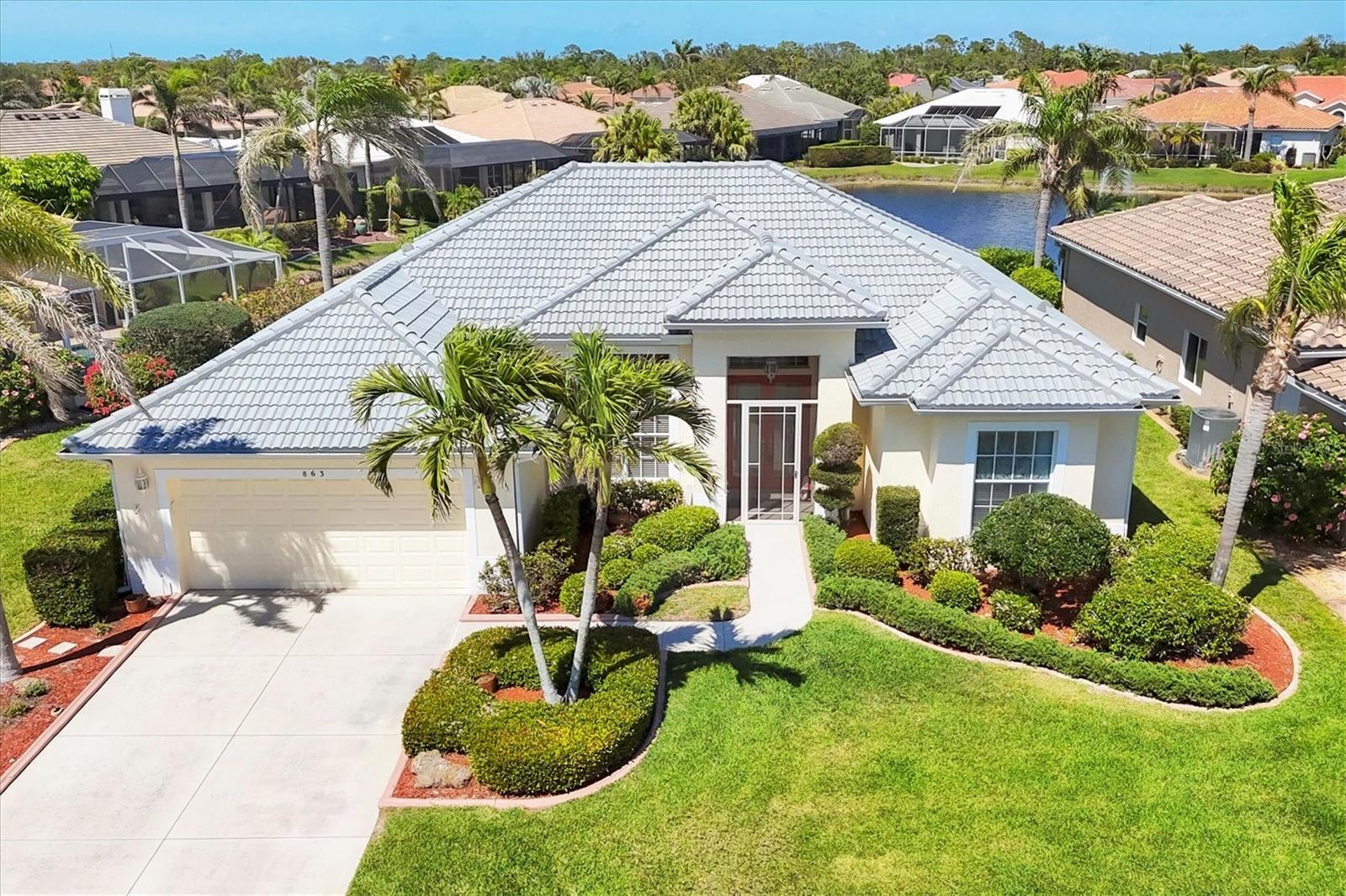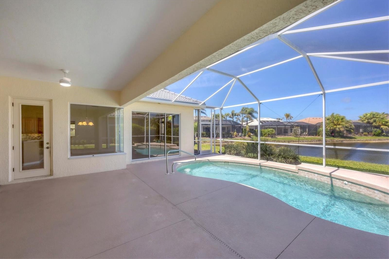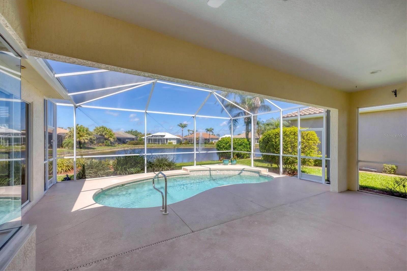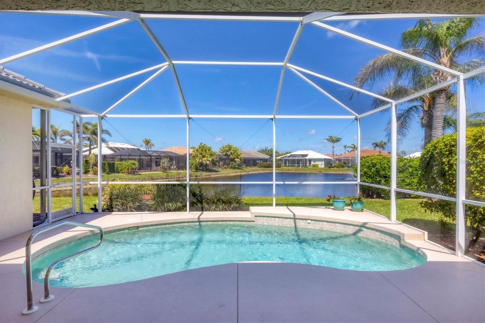 BACK ON THE MARKET! BUYERS LOSS IS YOUR GAIN! SEE IT NOW BEFORE SOMEONE ELSE SNAPS IT UP! Fantastic Pool home located in one of the most coveted areas of Pelican Pointe. 3BD/2BA/2CG. Tranquil LAKE views with a fountain spray in the middle ( the only lake to have one). Private pool and large lanai for outdoor enjoyment and entertaining. Beautiful curb appeal as you drive up to the home surrounded by tropical landscape. Screened front entry with double glass doors and transom window for lots of natural light. Enter into the formal living and dining room area where the gorgeous view will have you dreaming of relaxing days on the lanai and cooling off in the pool. Through the arched doorway into the kitchen and family room area where the views are abundant. Kitchen offers Corian counters offers lots space for kitchen activities. Raised panel Wood cabinets, new refrigerator, tile backsplash, and tons of recessed lighting. Breakfast nook with aquarium window overlooking the view. Large Master Bedroom with en suite bath and 2 walk in closets. Tray ceiling and crown molding enhance the room. Master bath offers dual sinks, walk in shower, and Jacuzzi tub with jets. Guest bedrooms on the other side of home for everyone's privacy. NEW ROOF. HW 2021. 3D Walk through at : https://my.matterport.com/show/?m=XsNAE9jfEqe Pelican Pointe is Venice's premier community with resort style amenities- Clubhouse with restaurant/bar/grill, heated pool, fitness center, tennis courts, pickle ball, tons of social activities, social room/library, 27 holes of golf and pro shop. Huge and very active Women’s Association with tons of activities to choose from. Golf membership is NOT mandatory. LOW HOA FEES. All centrally located minutes to Venice Beach, Venice Downtown, shopping, theatres, restaurants, highways, airports, and so much more.Come find your Florida Lifestyle today!