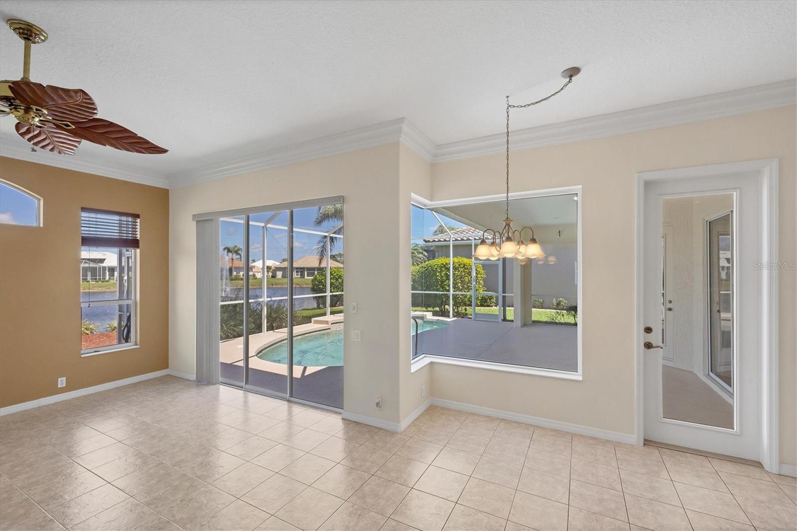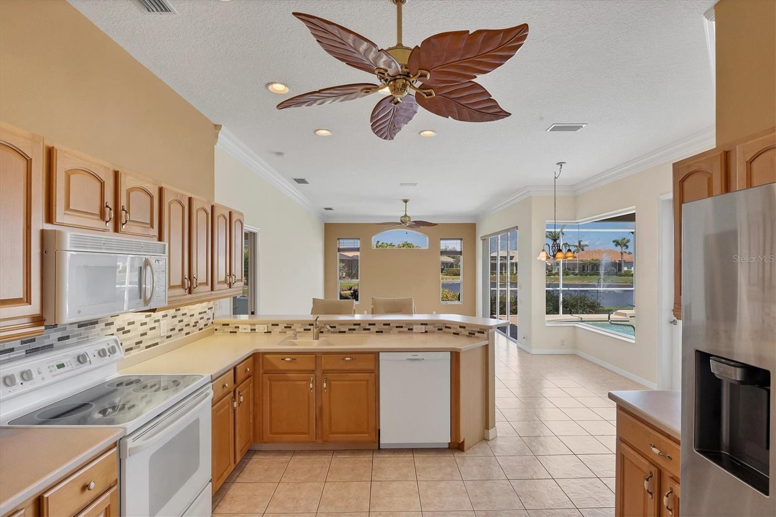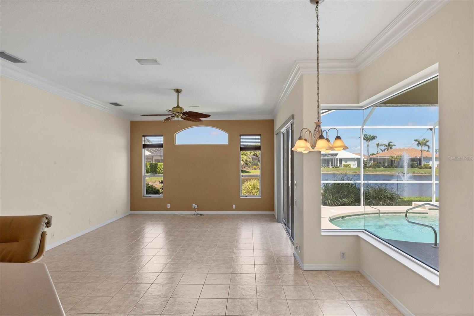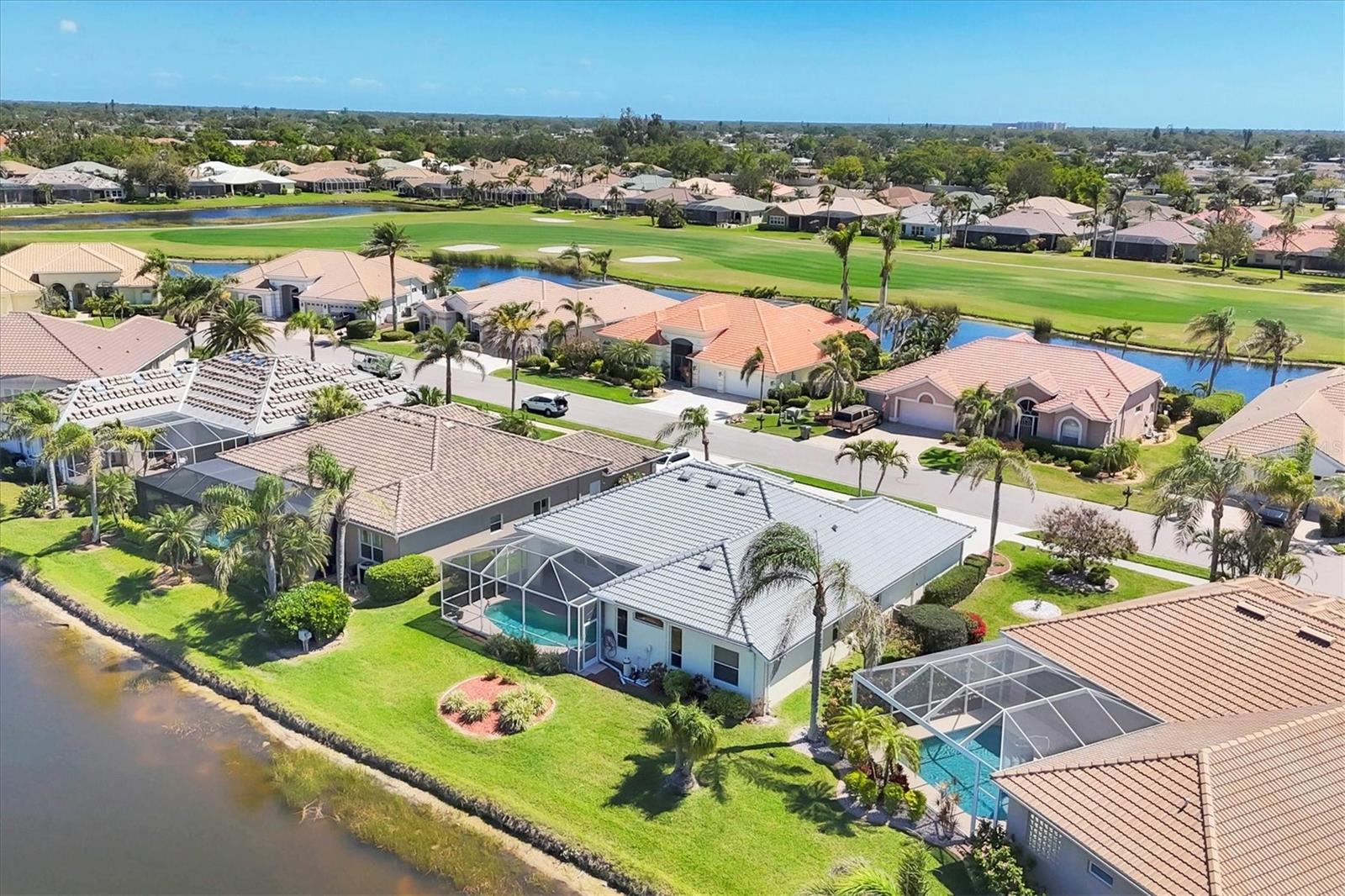 BACK ON THE MARKET! BUYERS LOSS IS YOUR GAIN! SEE IT NOW BEFORE SOMEONE ELSE SNAPS IT UP! Fantastic Pool home located in one of the most coveted areas of Pelican Pointe. 3BD/2BA/2CG. Tranquil LAKE views with a fountain spray in the middle ( the only lake to have one). Private pool and large lanai for outdoor enjoyment and entertaining. Beautiful curb appeal as you drive up to the home surrounded by tropical landscape. Screened front entry with double glass doors and transom window for lots of natural light. Enter into the formal living and dining room area where the gorgeous view will have you dreaming of relaxing days on the lanai and cooling off in the pool. Through the arched doorway into the kitchen and family room area where the views are abundant. Kitchen offers Corian counters offers lots space for kitchen activities. Raised panel Wood cabinets, new refrigerator, tile backsplash, and tons of recessed lighting. Breakfast nook with aquarium window overlooking the view. Large Master Bedroom with en suite bath and 2 walk in closets. Tray ceiling and crown molding enhance the room. Master bath offers dual sinks, walk in shower, and Jacuzzi tub with jets. Guest bedrooms on the other side of home for everyone's privacy. NEW ROOF. HW 2021. 3D Walk through at : https://my.matterport.com/show/?m=XsNAE9jfEqe Pelican Pointe is Venice's premier community with resort style amenities- Clubhouse with restaurant/bar/grill, heated pool, fitness center, tennis courts, pickle ball, tons of social activities, social room/library, 27 holes of golf and pro shop. Huge and very active Women’s Association with tons of activities to choose from. Golf membership is NOT mandatory. LOW HOA FEES. All centrally located minutes to Venice Beach, Venice Downtown, shopping, theatres, restaurants, highways, airports, and so much more.Come find your Florida Lifestyle today!