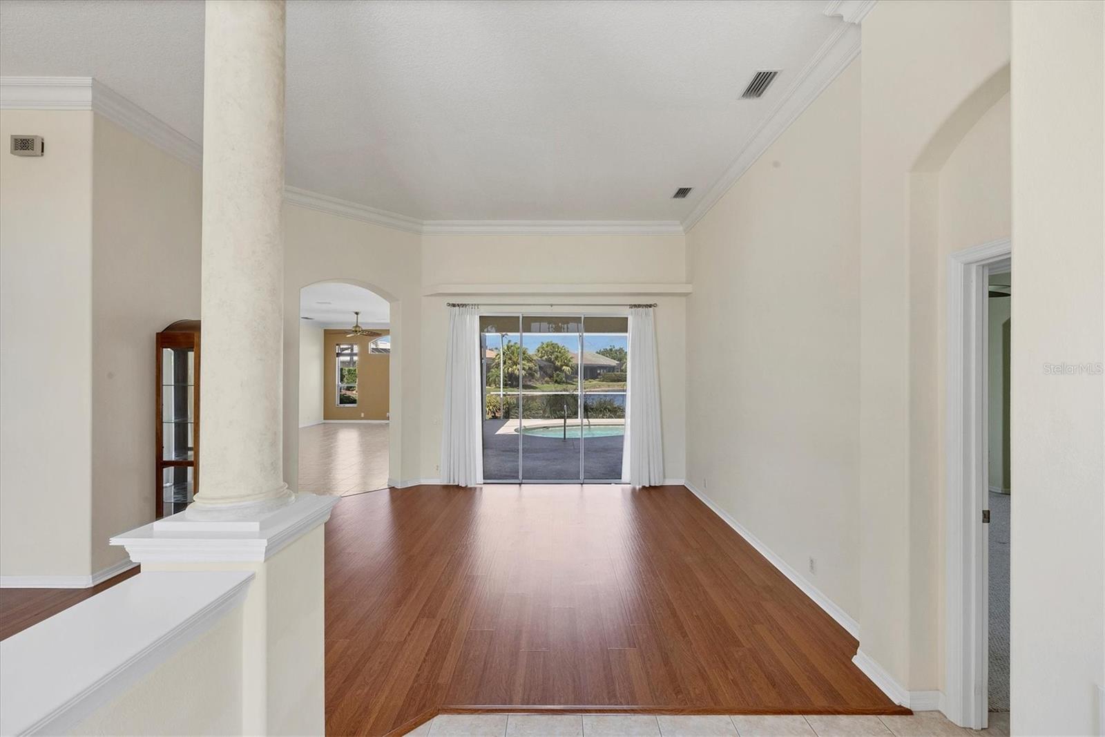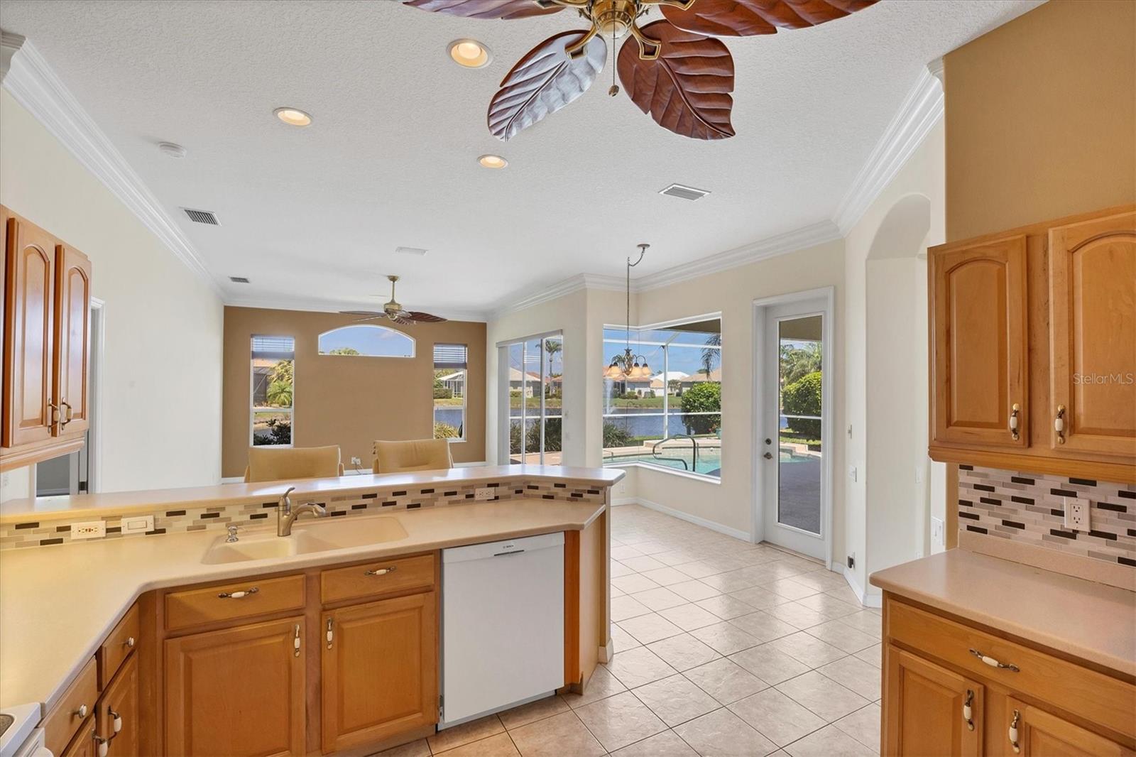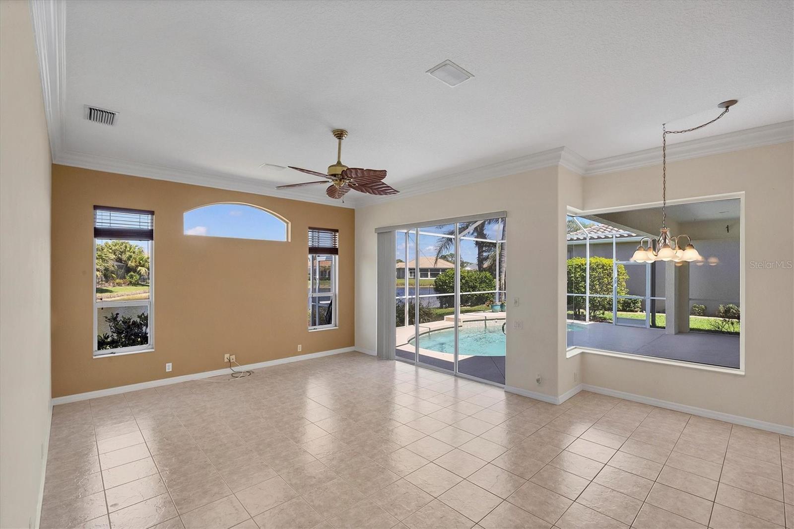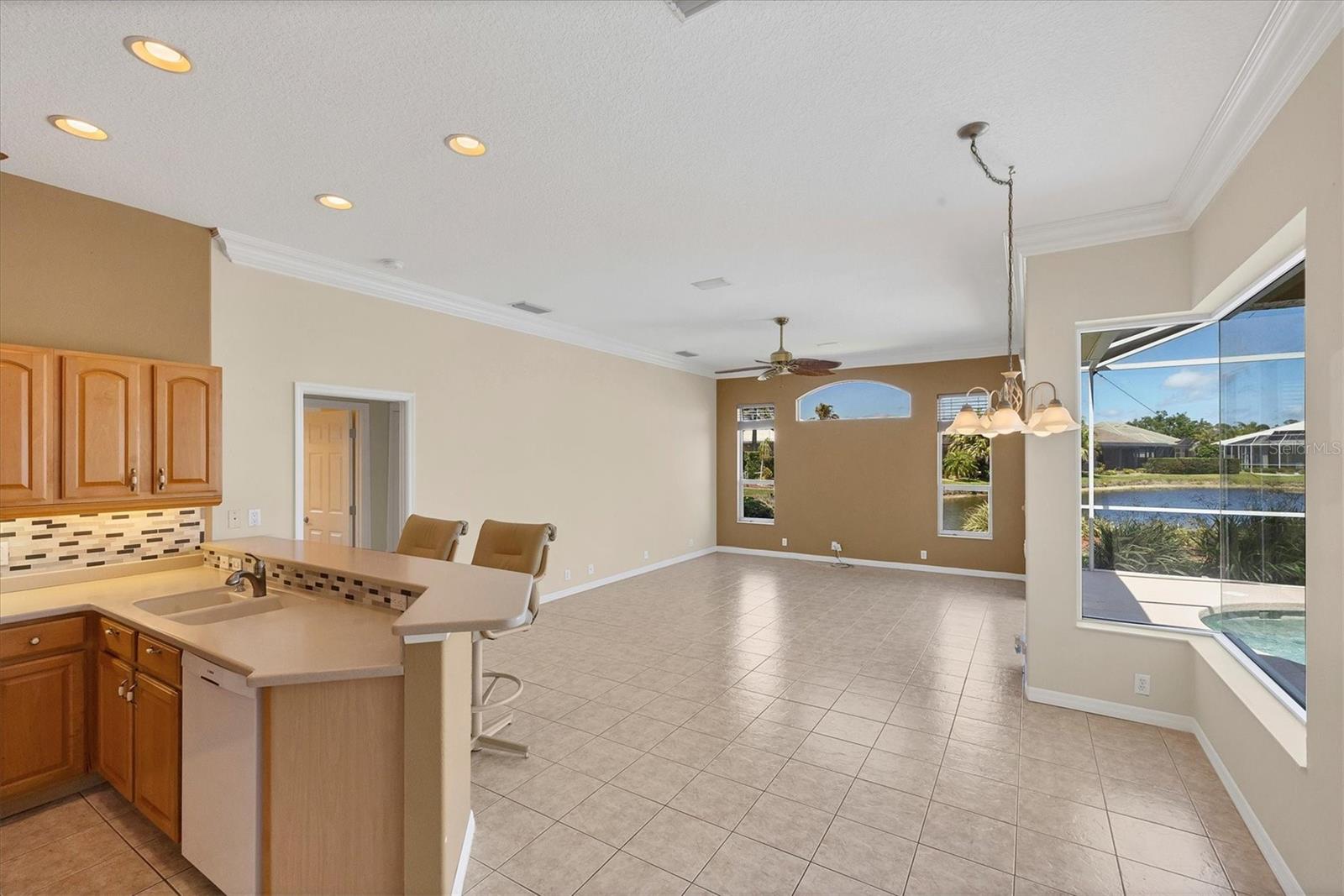 BACK ON THE MARKET! BUYERS LOSS IS YOUR GAIN! SEE IT NOW BEFORE SOMEONE ELSE SNAPS IT UP! Fantastic Pool home located in one of the most coveted areas of Pelican Pointe. 3BD/2BA/2CG. Tranquil LAKE views with a fountain spray in the middle ( the only lake to have one). Private pool and large lanai for outdoor enjoyment and entertaining. Beautiful curb appeal as you drive up to the home surrounded by tropical landscape. Screened front entry with double glass doors and transom window for lots of natural light. Enter into the formal living and dining room area where the gorgeous view will have you dreaming of relaxing days on the lanai and cooling off in the pool. Through the arched doorway into the kitchen and family room area where the views are abundant. Kitchen offers Corian counters offers lots space for kitchen activities. Raised panel Wood cabinets, new refrigerator, tile backsplash, and tons of recessed lighting. Breakfast nook with aquarium window overlooking the view. Large Master Bedroom with en suite bath and 2 walk in closets. Tray ceiling and crown molding enhance the room. Master bath offers dual sinks, walk in shower, and Jacuzzi tub with jets. Guest bedrooms on the other side of home for everyone's privacy. NEW ROOF. HW 2021. 3D Walk through at : https://my.matterport.com/show/?m=XsNAE9jfEqe Pelican Pointe is Venice's premier community with resort style amenities- Clubhouse with restaurant/bar/grill, heated pool, fitness center, tennis courts, pickle ball, tons of social activities, social room/library, 27 holes of golf and pro shop. Huge and very active Women’s Association with tons of activities to choose from. Golf membership is NOT mandatory. LOW HOA FEES. All centrally located minutes to Venice Beach, Venice Downtown, shopping, theatres, restaurants, highways, airports, and so much more.Come find your Florida Lifestyle today!