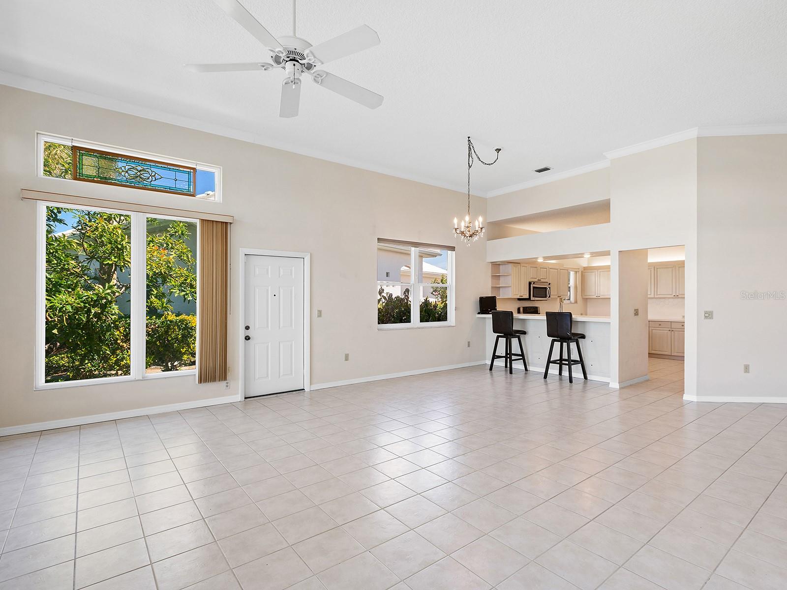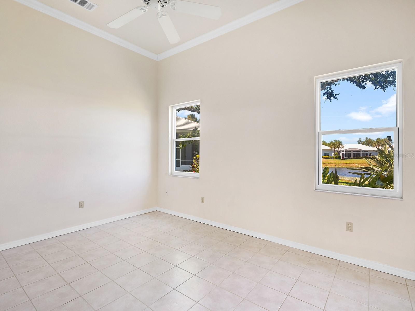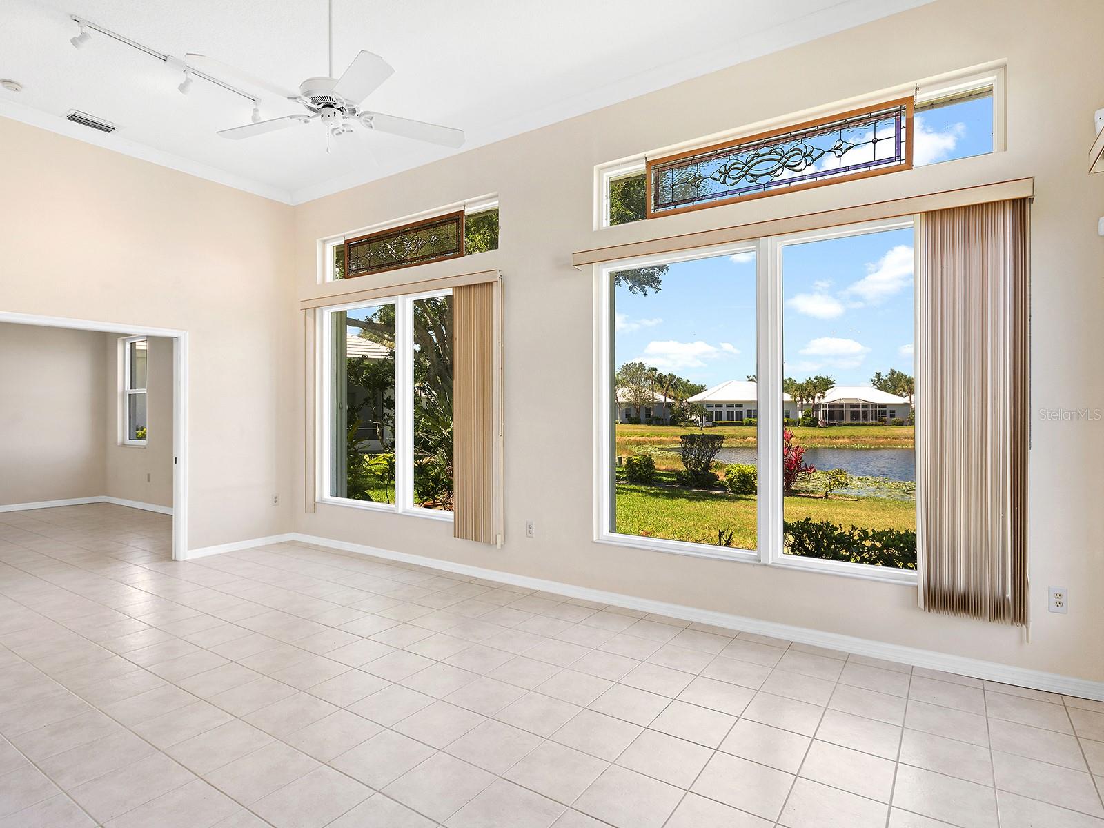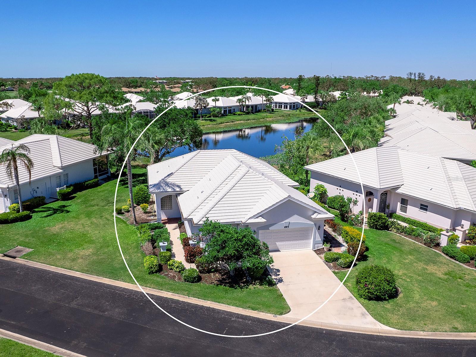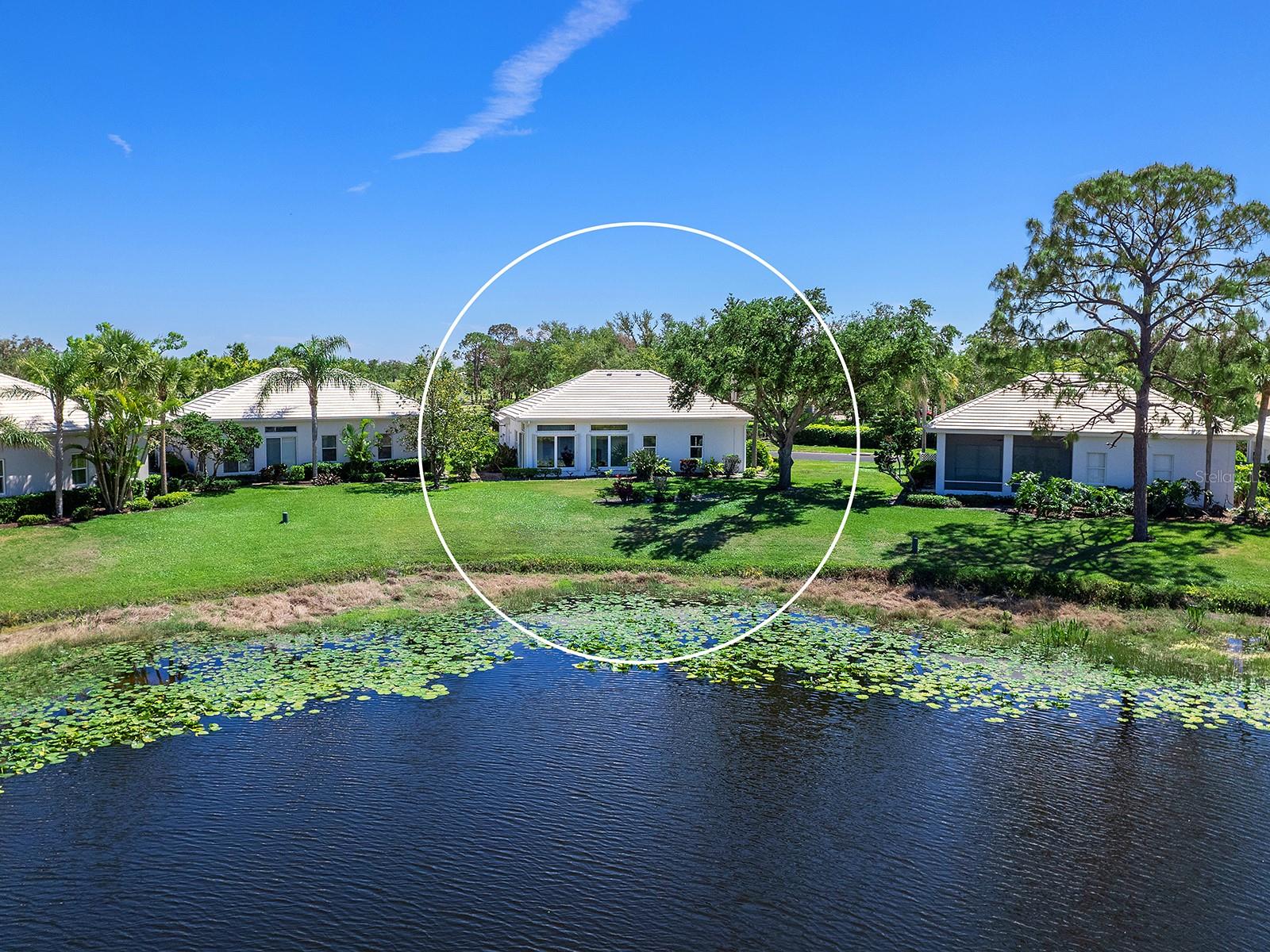 Unique maintenance-free single-family home treated as a condominium. The home was custom designed by first owners with vast open great room space, ideal for setting up different living areas, craft, artist studio or leisure game activities and wet bar for entertainment. Indirect lighting is also a feature of this home. An attached feature sheet shows many additional high-level construction or architectural elements that enhance the value of this home, such as block wall insulation more than R-5 and frame wall more than 5-11, whole-house attic fan, heat recovery unit with air conditioner and high efficiency water heater. For peace of mind windows are impact hurricane-resistant with shutters as well and provide much light and overlooks large pond. The home also has newer roof with exterior maintenance provided in condominium fee. The high ceilings add to the openness of the living space. The kitchen has large number of cabinets and two cabinets with lift shelving and power for appliances, and sprawling counter space and island for entertaining. The primary bedroom is at rear of home with views of the pond and large walk-in closet. The bath has dual vanities, and high-level walk-in Jacuzzi tub with shower and separate walk-in tile shower. The guest bedroom and bath are a split design for guest privacy and office with French doors and much light for working remotely. The home is a short distance to community clubhouse and pool. The Plantation Golf and Country Club provides equity ownership for all who desire social, tennis or golf membership sold separately. The club has fine dining, upscale fitness centers, bocci and 13 tennis and six pickleball courts. The community is convenient to shopping, area beaches, parks, and downtown Wellen Park center and Atlanta Braves spring training ballpark. So much more and ease of ownership to enjoy the wonderful Florida lifestyle. See, easy to show.