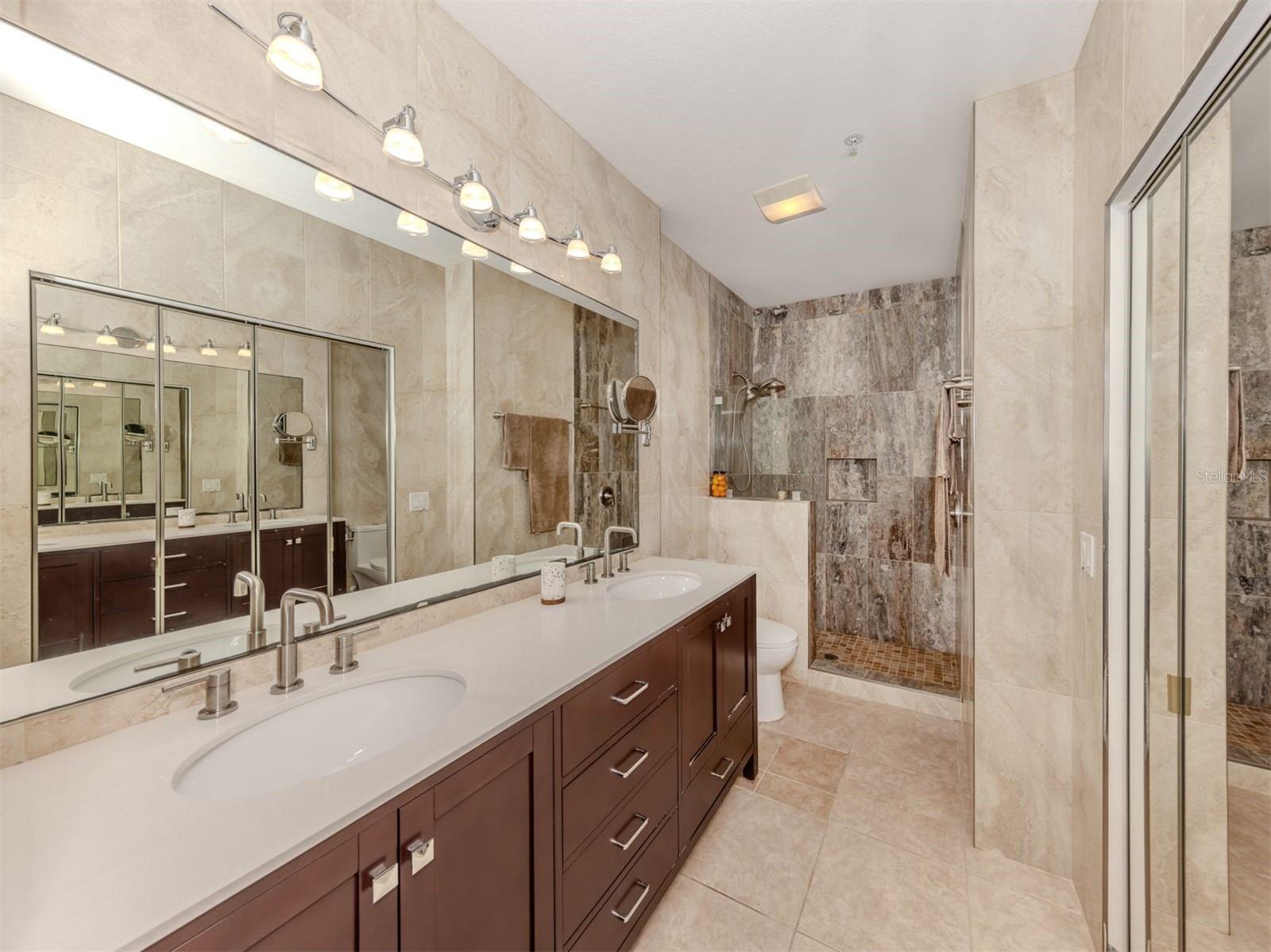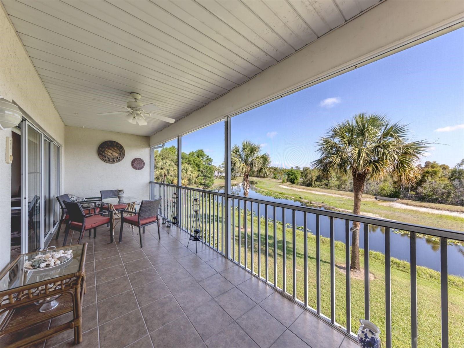 Beautiful Waterside Village condo with wonderful water and preserve view from extended lanai. Tile floors throughout along with updated baths. Waterside Village is THE place to live with friendly neighbors, main clubhouse, three pools, gas grills, pickelball, tennis, ladies golf, line dancing, bocce bal, Mahjong, men's cards, ladies cards, happy hour and water aerobics.