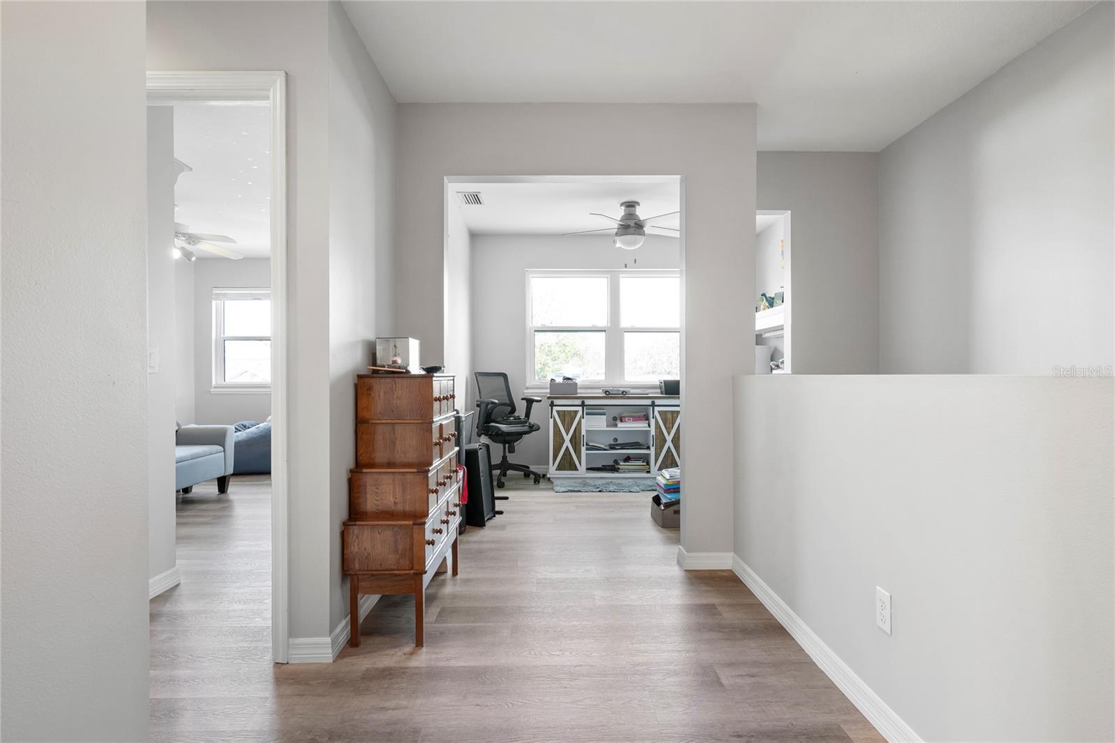 Discover the allure of the Citrus Estate, a beautiful residence nestled in the desirable Venice, Florida. As you arrive, the impressive 3-car garage and inviting Florida porch immediately capture your attention, hinting at the charm and comfort within. This well-maintained home sits on a substantial .37-acre lot, offering a sense of space and privacy. Inside, the open floor plan seamlessly connects the spacious living room, dining area, and kitchen, creating an ideal environment for both everyday living and entertaining. A versatile office/den, currently utilized as a workspace, extends off the dining room and opens to the delightful front porch. The first floor is home to a comfortable master bedroom featuring a custom-designed walk-in closet. Ascending the staircase, you'll find a breezeway leading to a second study/den area and two generously sized bedrooms, along with a second full bathroom. The exterior of the property is fully enclosed with vinyl fencing, featuring two convenient double gates on either side, providing easy access for boat and RV parking – a significant advantage for those with recreational vehicles. The vast backyard presents a blank canvas, offering the exciting possibility of adding a private pool. Practical updates include recently installed hurricane windows, ensuring peace of mind during storm season, and a pre-installed whole-home generator hook-up for added convenience. The Citrus Estate offers a unique opportunity to embrace the Florida lifestyle with comfort, convenience, and ample space to enjoy. Schedule your private showing today!