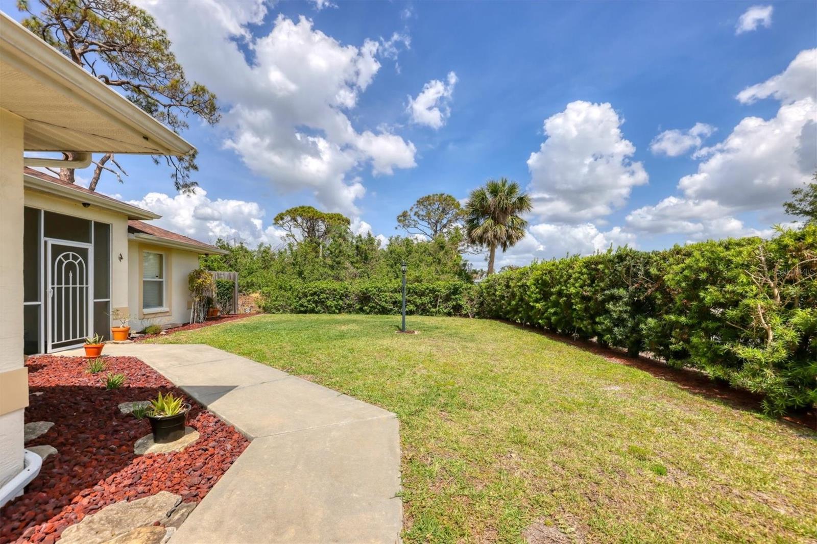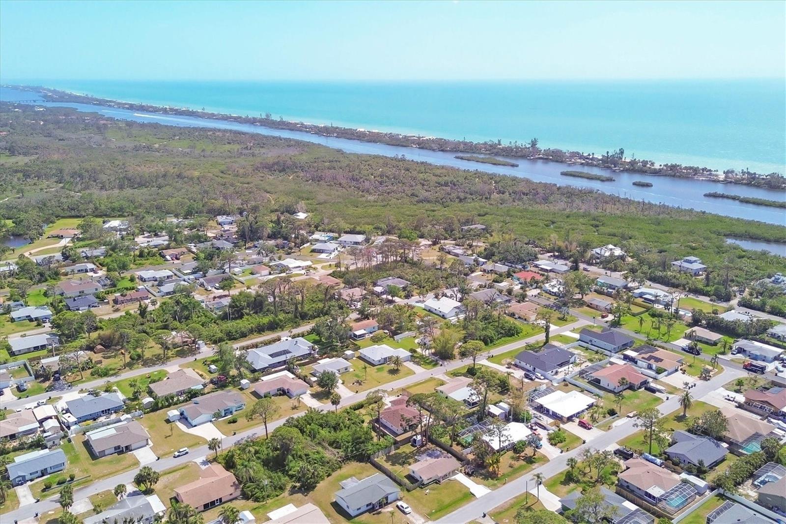 LOCATION, LOCATION, LOCATION!! Located just half a mile from the South Venice Ferry and private beach, this well-maintained 2 bedroom, 2-bathroom home WITH A FLEX ROOM, offers both comfort and convenience. This home sits on a quiet street in a neighborhood NOT IN A FLOOD ZONE with NO HOA OR CDD FEES! Step inside to find cathedral ceilings, a spacious kitchen with a breakfast bar, and an inside laundry room for added convenience. The home features a welcoming screened foyer entry, a walk-in closet in the primary bedroom, and a screened lanai in the rear—perfect for enjoying Florida's outdoor lifestyle. The fenced backyard and the front landscaping provides privacy. Additional highlights include a shingle ROOF REPLACED in 2023, AC in 2024 and new WATER HEATER 2023 so all the big ticket items have been taken care of. There is a full culvert pipe in the front (no swale), and a 2-car attached garage. Don't miss this fantastic opportunity to own a beautiful home in a prime location close to the South Venice Ferry!