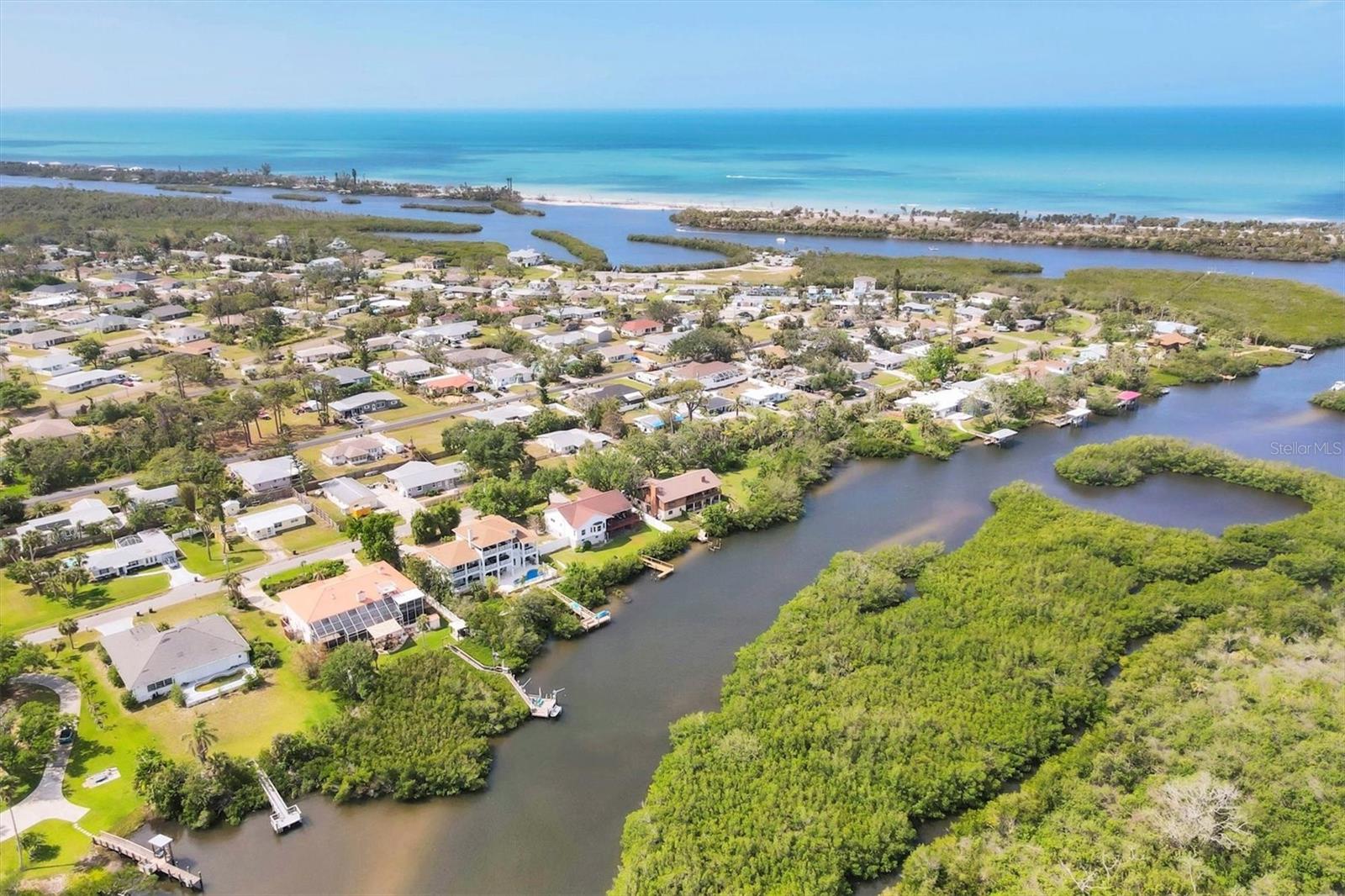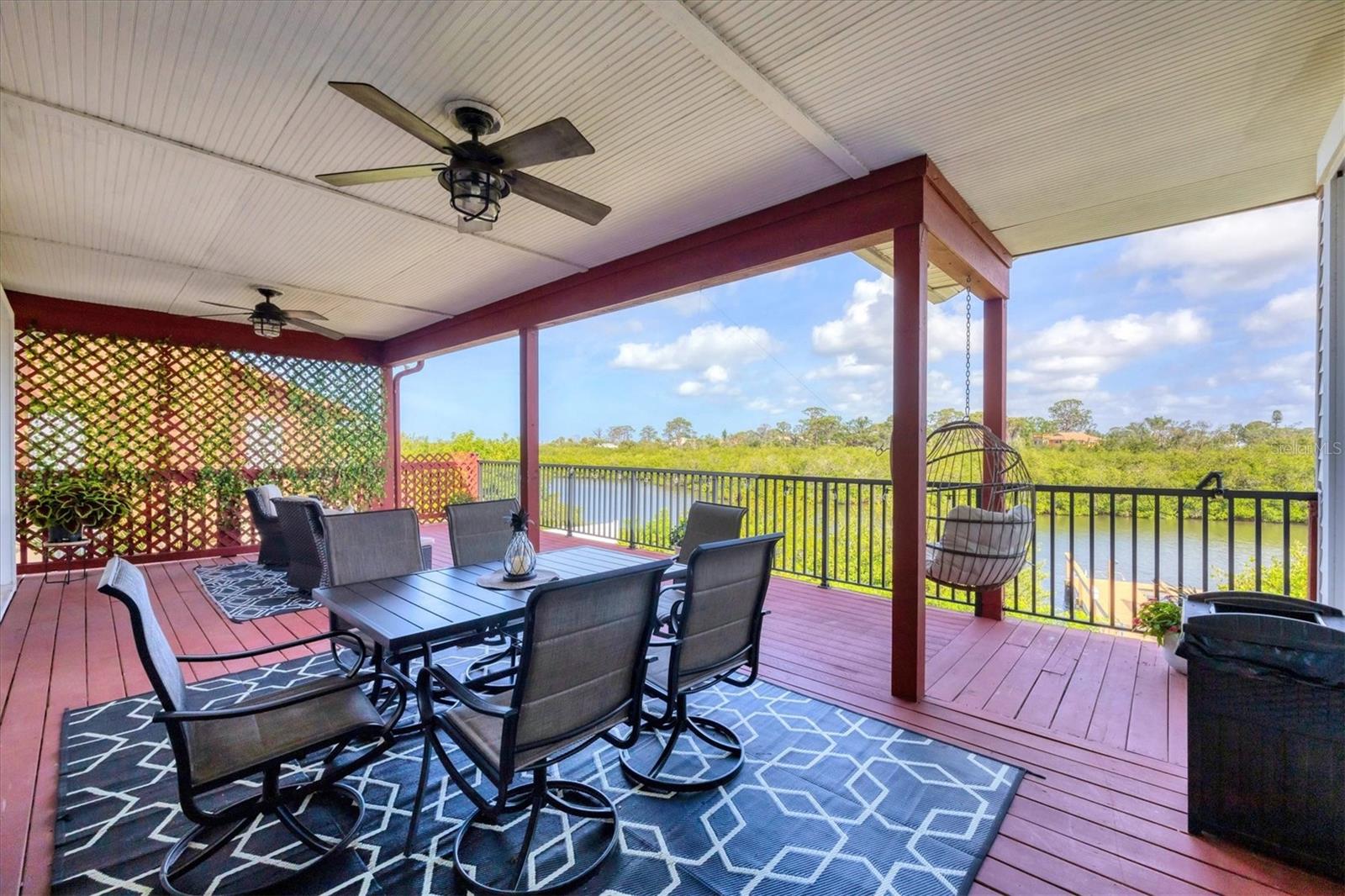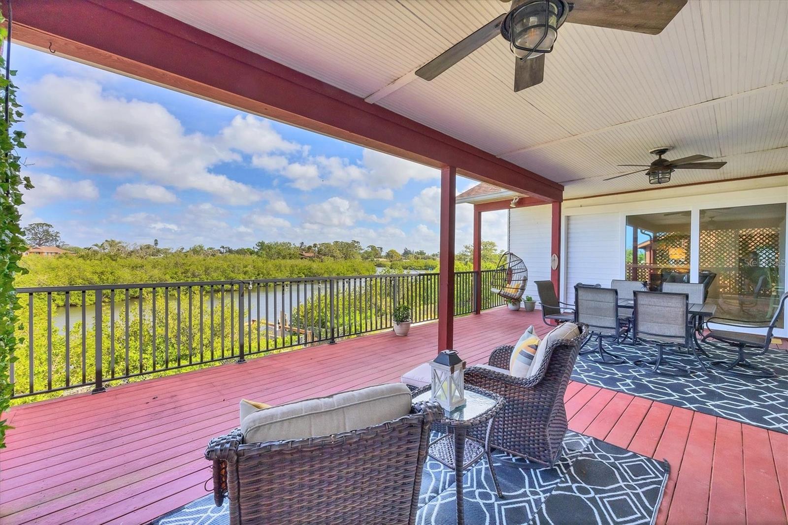 Welcome to this beautifully updated waterfront home that boasts some of the best views on Alligator Creek where you can enjoy breathtaking sunrises and spectacular sunsets from your enormous elevated balcony porch! Step inside to the oversized eat-in-kitchen/family room combo that also offers panoramic water views. This property has been appointed with many designer features including solid wood cabinetry, stone surface countertops, vaulted ceilings, freshly painted interior, custom closets and more. The primary bedroom and bath is a sanctuary with picturesque views as well as an updated, enormous bathroom with dual closets. On the opposite side of the home, two spacious secondary bedrooms with custom built in closets share another modern full bathroom. The ground level offers incredible storage as well as many possibilities for future use as it has been updated with Enduraflood waterproof drywall. This home is completely move in ready and to put your mind at ease, has been improved with the addition of ALL IMPACT windows and glass sliders. Additionally, the A/C 5 ton gas furnace, washing machine, refrigerator, 8 foot composite privacy fence and gorgeous woodlook aluminum impact garage doors have been added. The location of this property cannot be beat! Kayak or canoe from this home to the Intercoastal Waterway straight to the Gulf of Mexico. Living in this thriving neighborhood also allows you to join the South Venice Civic Association where you will enjoy the use the boat ramp and ferry services to a stunning private beach. Additionally, the property is located just a few short miles from historic downtown Venice where residents can explore a vibrant array of shops, restaurants, parks, and beaches. The central location of this home ensures easy access to I75, hospitals, shopping centers, emergency services, downtown WELLEN PARK and the CoolToday stadium, home of the Braves’ spring training. A short drive takes you to the South Venice Beach Ferry, Lemon Bay Preserve, Venice Fishing Pier, Caspersen Beach, Manasota Key Beach and Blind Pass Beach. Schedule your private tour today and envision the lifestyle that awaits you in this meticulously crafted residence.