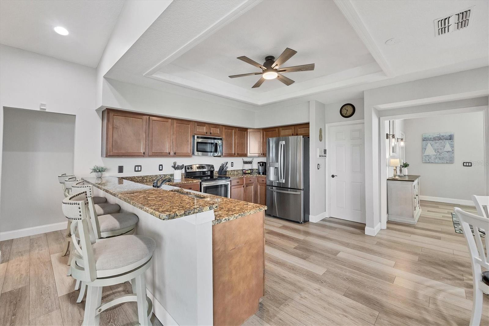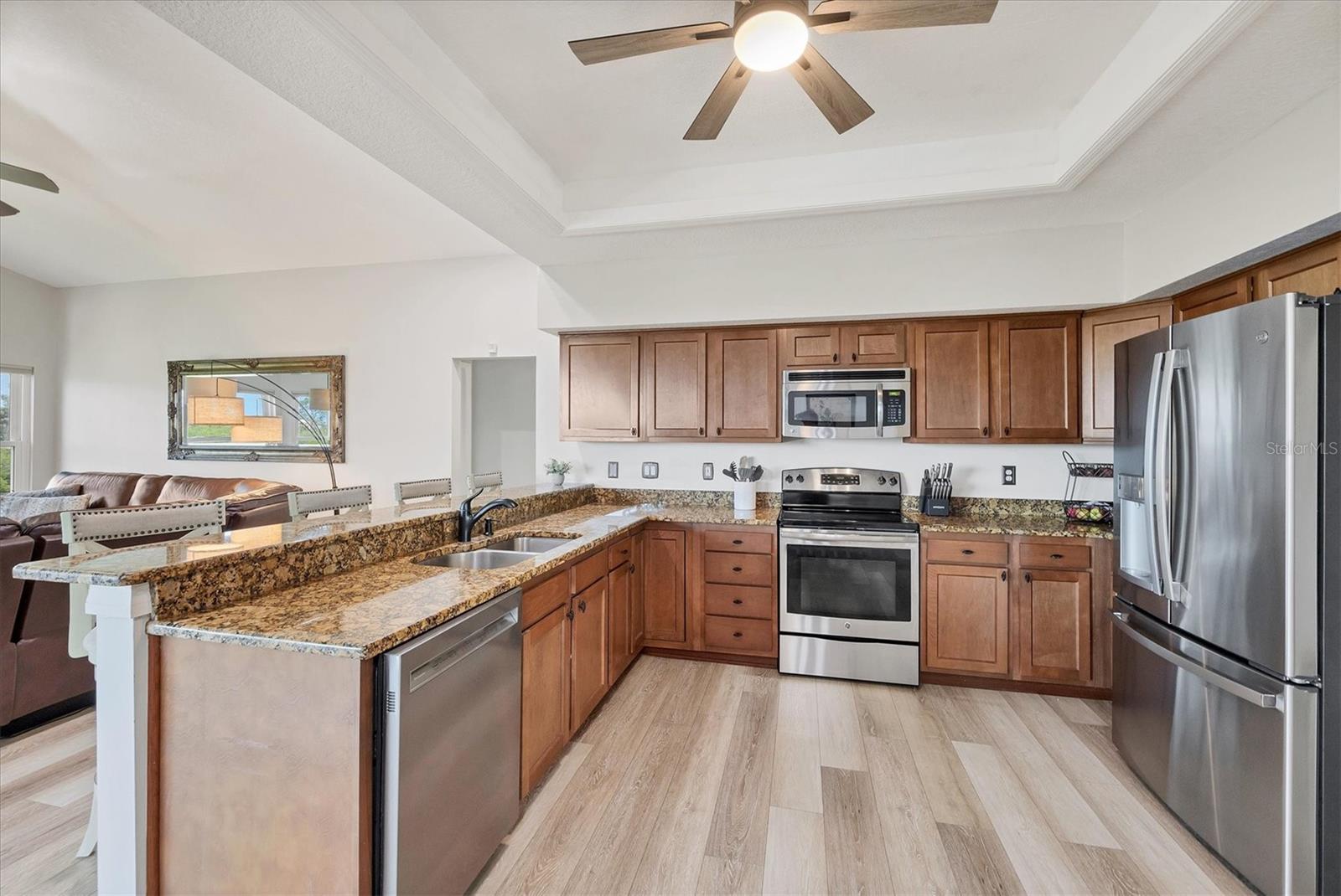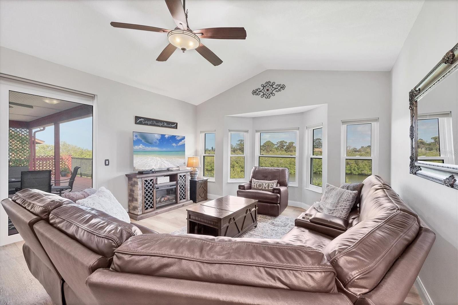 Welcome to this beautifully updated waterfront home that boasts some of the best views on Alligator Creek where you can enjoy breathtaking sunrises and spectacular sunsets from your enormous elevated balcony porch! Step inside to the oversized eat-in-kitchen/family room combo that also offers panoramic water views. This property has been appointed with many designer features including solid wood cabinetry, stone surface countertops, vaulted ceilings, freshly painted interior, custom closets and more. The primary bedroom and bath is a sanctuary with picturesque views as well as an updated, enormous bathroom with dual closets. On the opposite side of the home, two spacious secondary bedrooms with custom built in closets share another modern full bathroom. The ground level offers incredible storage as well as many possibilities for future use as it has been updated with Enduraflood waterproof drywall. This home is completely move in ready and to put your mind at ease, has been improved with the addition of ALL IMPACT windows and glass sliders. Additionally, the A/C 5 ton gas furnace, washing machine, refrigerator, 8 foot composite privacy fence and gorgeous woodlook aluminum impact garage doors have been added. The location of this property cannot be beat! Kayak or canoe from this home to the Intercoastal Waterway straight to the Gulf of Mexico. Living in this thriving neighborhood also allows you to join the South Venice Civic Association where you will enjoy the use the boat ramp and ferry services to a stunning private beach. Additionally, the property is located just a few short miles from historic downtown Venice where residents can explore a vibrant array of shops, restaurants, parks, and beaches. The central location of this home ensures easy access to I75, hospitals, shopping centers, emergency services, downtown WELLEN PARK and the CoolToday stadium, home of the Braves’ spring training. A short drive takes you to the South Venice Beach Ferry, Lemon Bay Preserve, Venice Fishing Pier, Caspersen Beach, Manasota Key Beach and Blind Pass Beach. Schedule your private tour today and envision the lifestyle that awaits you in this meticulously crafted residence.
