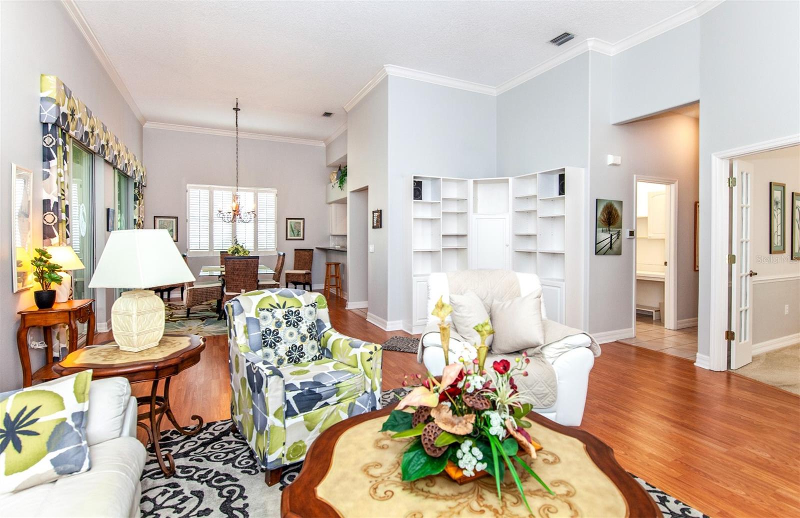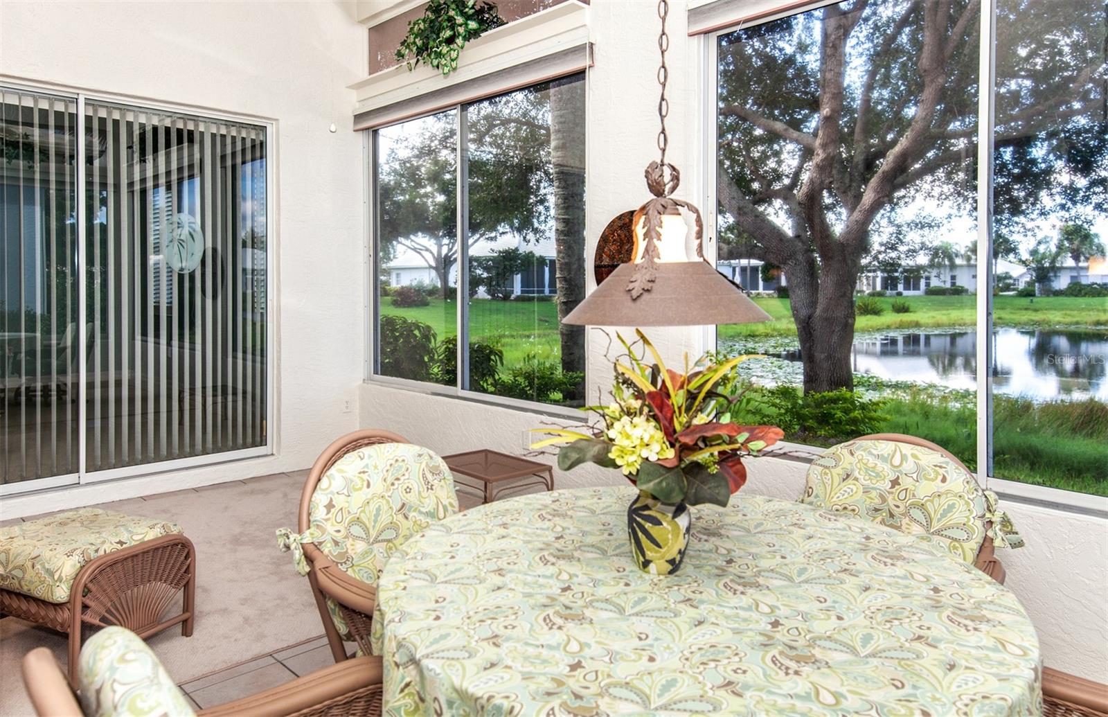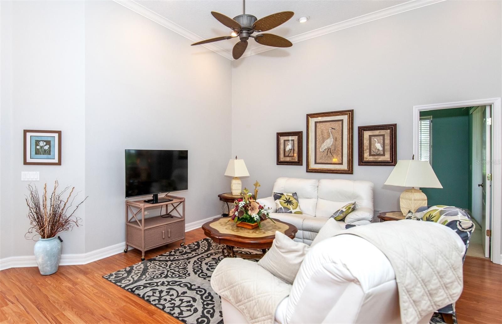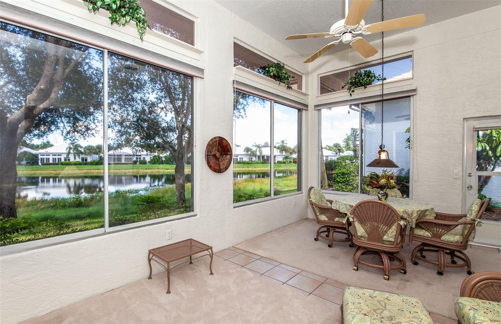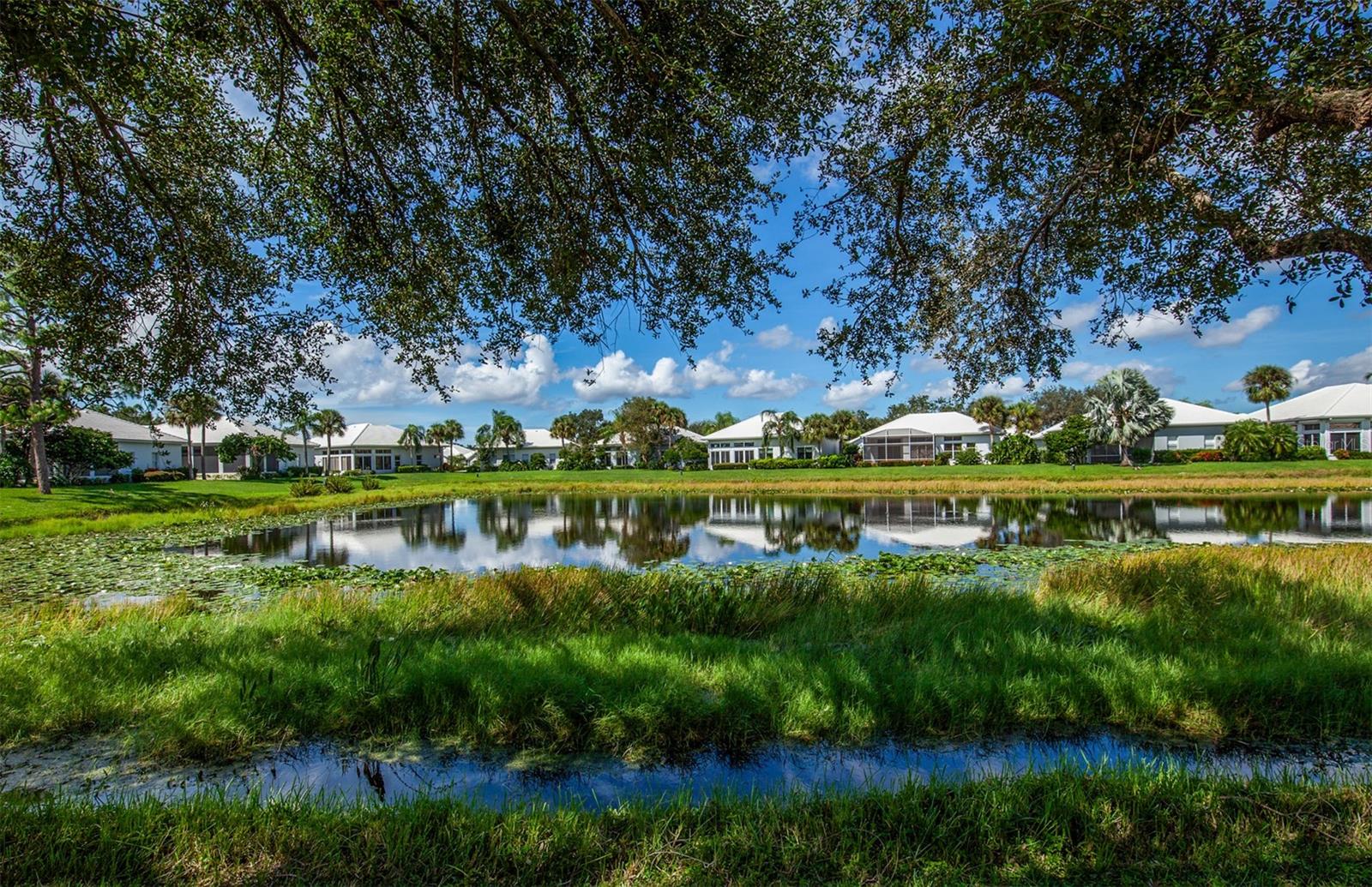 Beautiful pond views that are enhanced by western exposure to enjoy the fabulous Florida Sunsets from your amply spaced air conditioned Florida room /Lanai! This wonderful completely furnished home features a perfect layout for friends and family to visit to enjoy the ample living space. with 2 Bedrooms, 2 Bathrooms, a Den AND an office. When entering this home note the updates and Crown Molding, volume ceilings throughout the living area. The enclosed lanai/Florida room is air conditioned as well. The Tile Roof was installed in 2020! AC installed 2021. The updated kitchen with all newer appliances as of 2021, and with an eat-in space, is flooded with natural light and plenty of space to make any chef happy. The spa-like master bedroom and bathroom offers a large walk-in closet, a double vanity, soaking tub, and walk-in shower. The den has ample space for a sofa bed. A tremendous BONUS to this property is it is located in the gated Lynnwood Glen neighborhood of the Plantation Golf and Country Club, which has it's own community pool and clubhouse. Your detached home with a 2 car garage has all of the benefits of condo living. The exterior maintenance includes lawn, shrub, irrigation, trash, and community. Lynnwood Glen has a lot of social activities to meet new friends and neighbors. Plantation Golf and Country Club membership is optional. There are multiple levels of membership that gives you access to two 18-hole championship golf courses, 13 tennis courts, 6 pickleball courts, fitness center, JR Olympic Pool, dining, and daily social activities. Located minutes to beaches, restaurants, shopping, theater, Atlanta Braves Spring Training and Downtown Wellen Park. Make this home your place in paradise!!! BONUS: Fully Furnished, Move In Ready!!! No CDD.