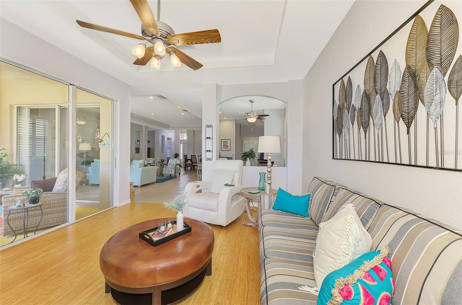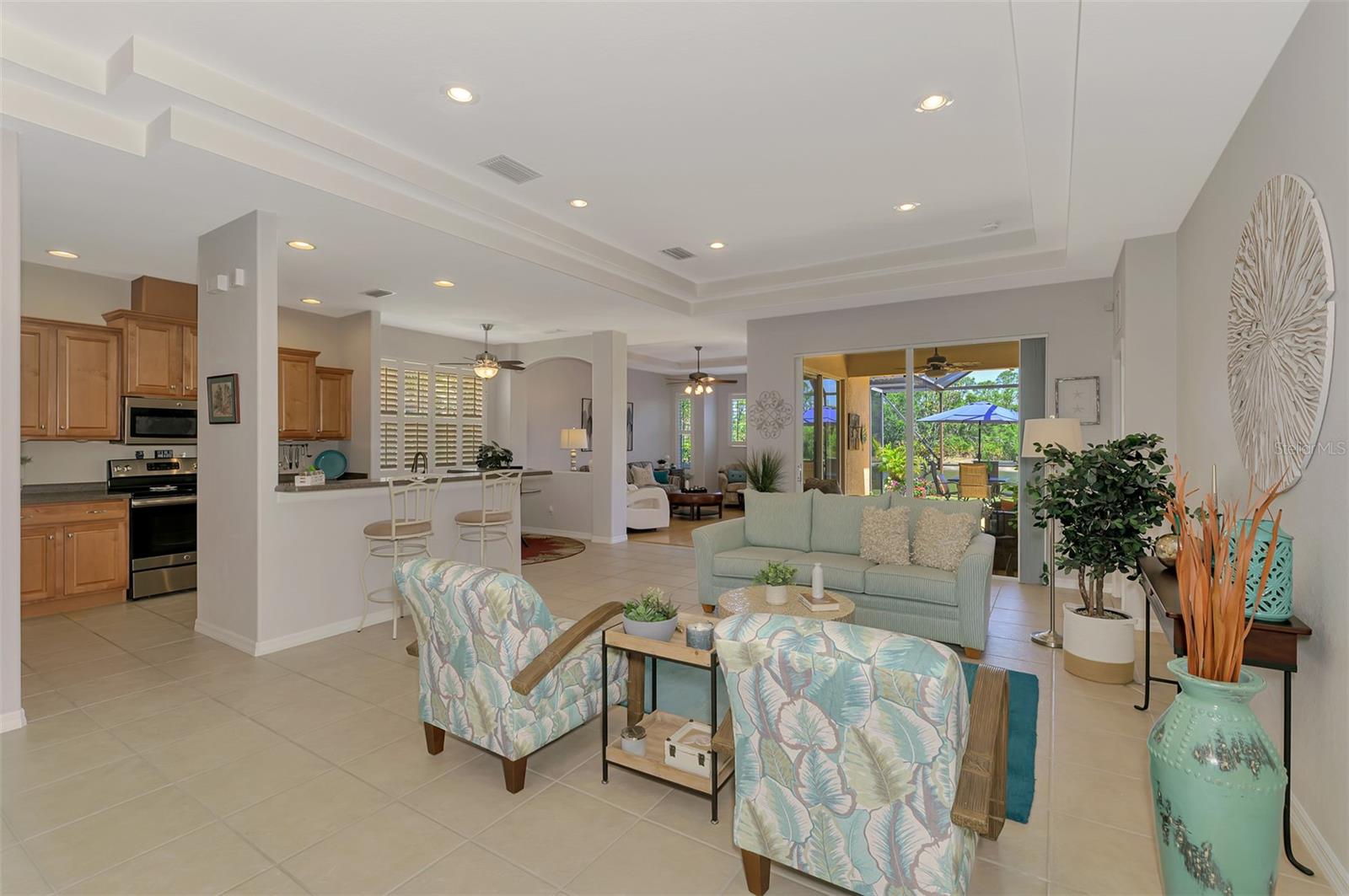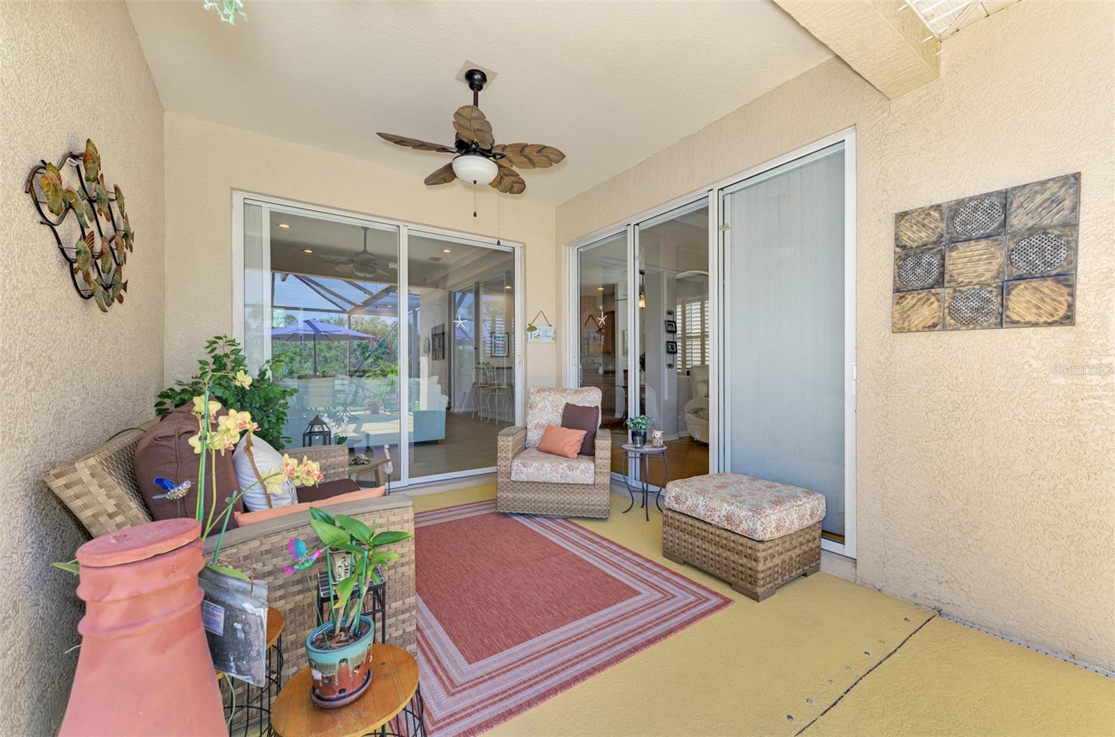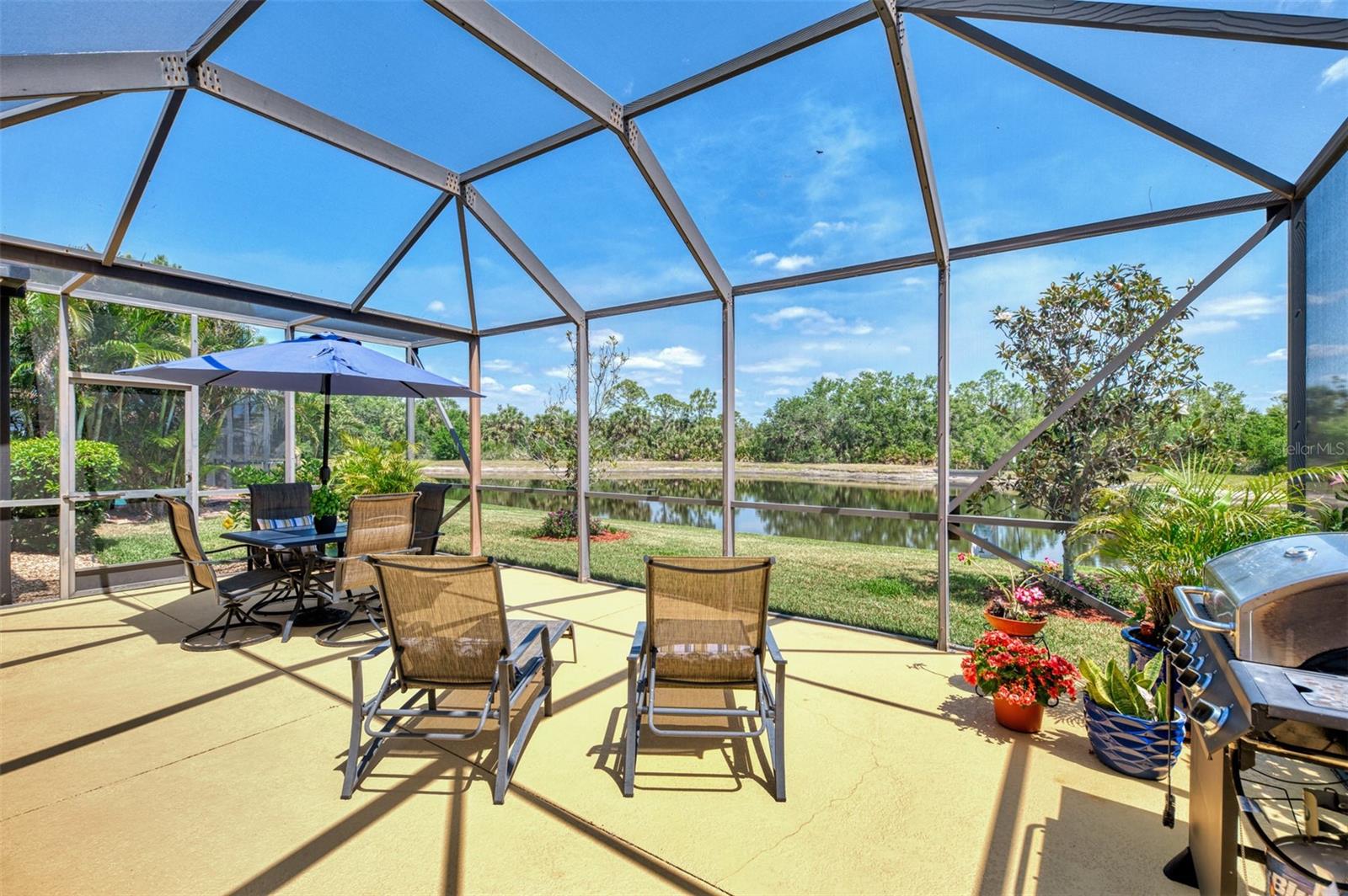One of the best locations in all of Stoneybrook of Venice with lake and preserve views in back and preserve views in front! BRAND NEW HVAC 2025! This spacious 1,878 sq. ft. home offers 2 bedrooms, 2 bathrooms, plus a large versatile den/office that can easily be converted into a third bedroom to suit your needs. Fully furnished and move-in-ready to make your move effortless and stress-free! The open and bright floor plan features a well-appointed kitchen with breakfast bar and cozy dinette. A formal dining area for larger occasions plus two distinct living spaces add additional flexibility. The primary bedroom suite features a walk-in closet and en-suite bath, complete with dual vanities, a luxurious soaker tub, and a walk-in shower. Plantation-style shutters throughout add elegance and convenience. Soak up the Florida sunshine on the extended screened lanai while taking in stunning lake and preserve views. Hurricane shutters included for peace of mind. Enjoy low HOA fees and a prime location in Venice with easy access to shopping, dining, Gulf Coast beaches, historic downtown Venice, and Wellen Park. Stoneybrook offers resort-style amenities, including a clubhouse, resort pool and spa, tennis and pickleball courts, basketball court, sand volleyball, baseball diamond, and soccer field. Everything you need for an active and vibrant lifestyle! Don’t miss out; schedule a tour today and experience this incredible home for yourself!