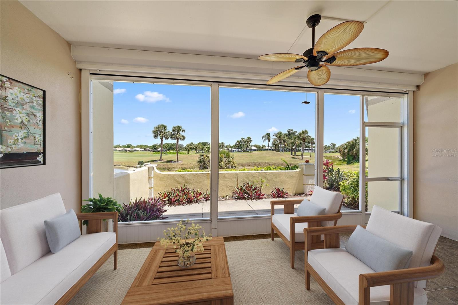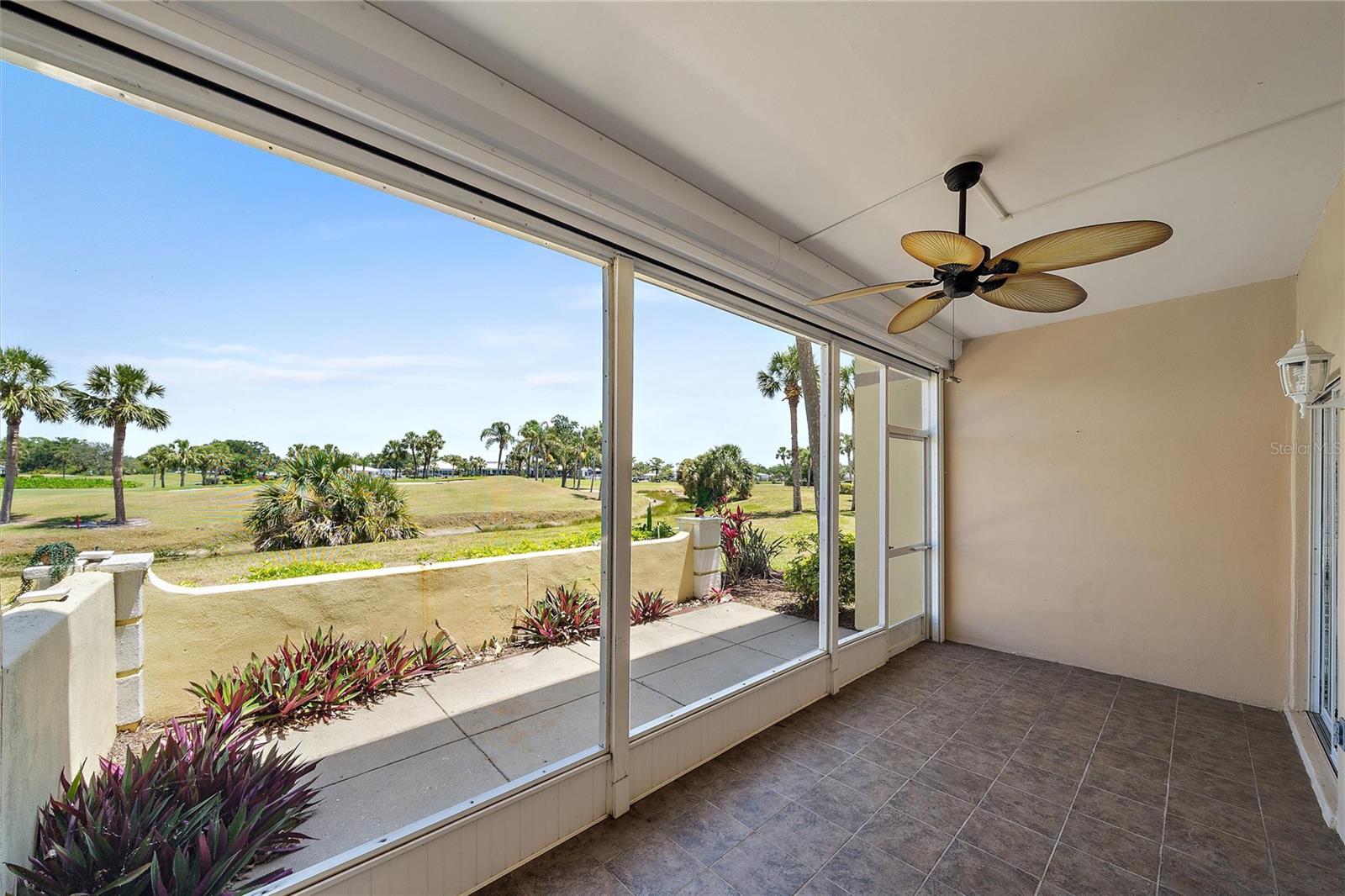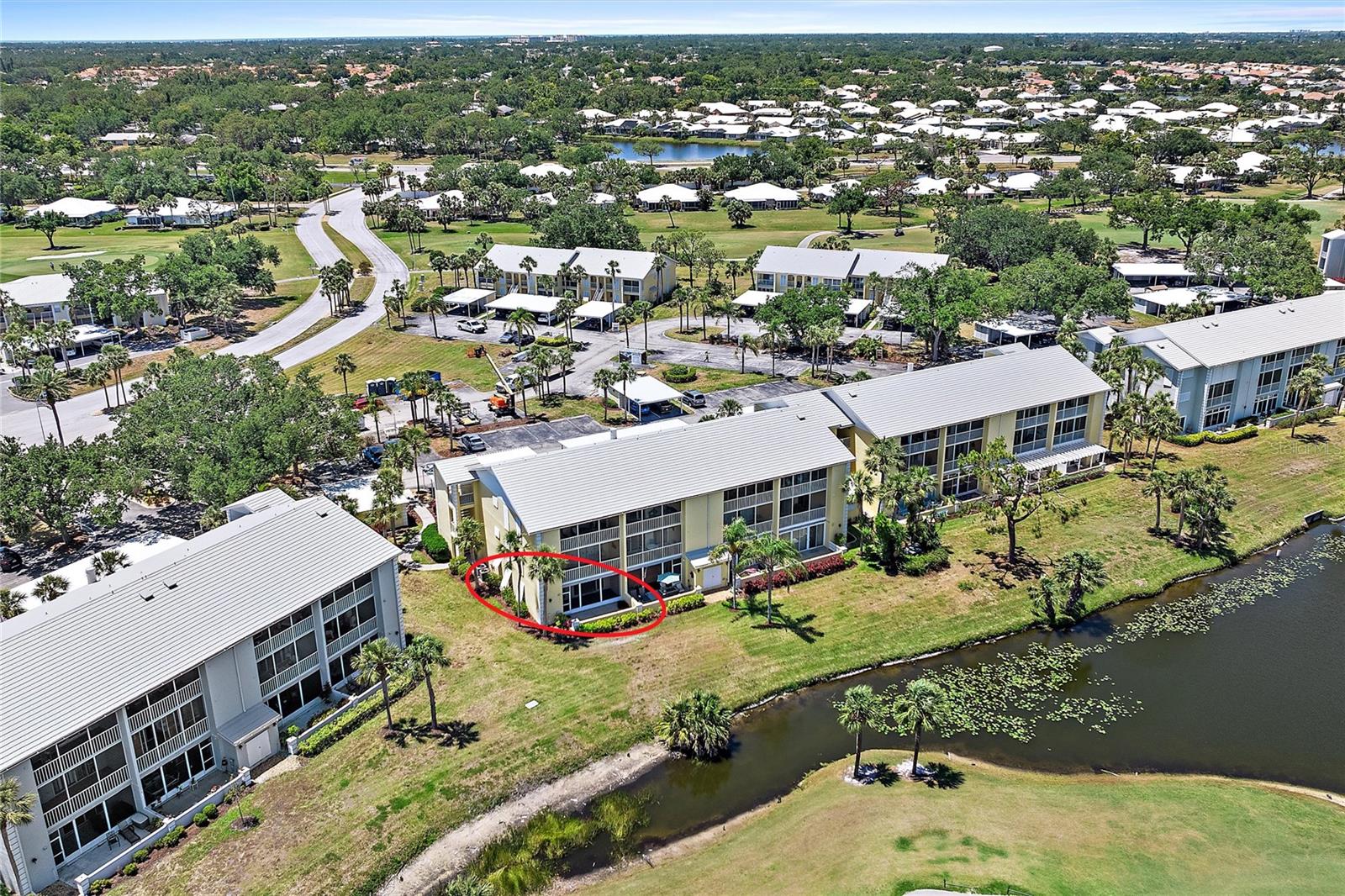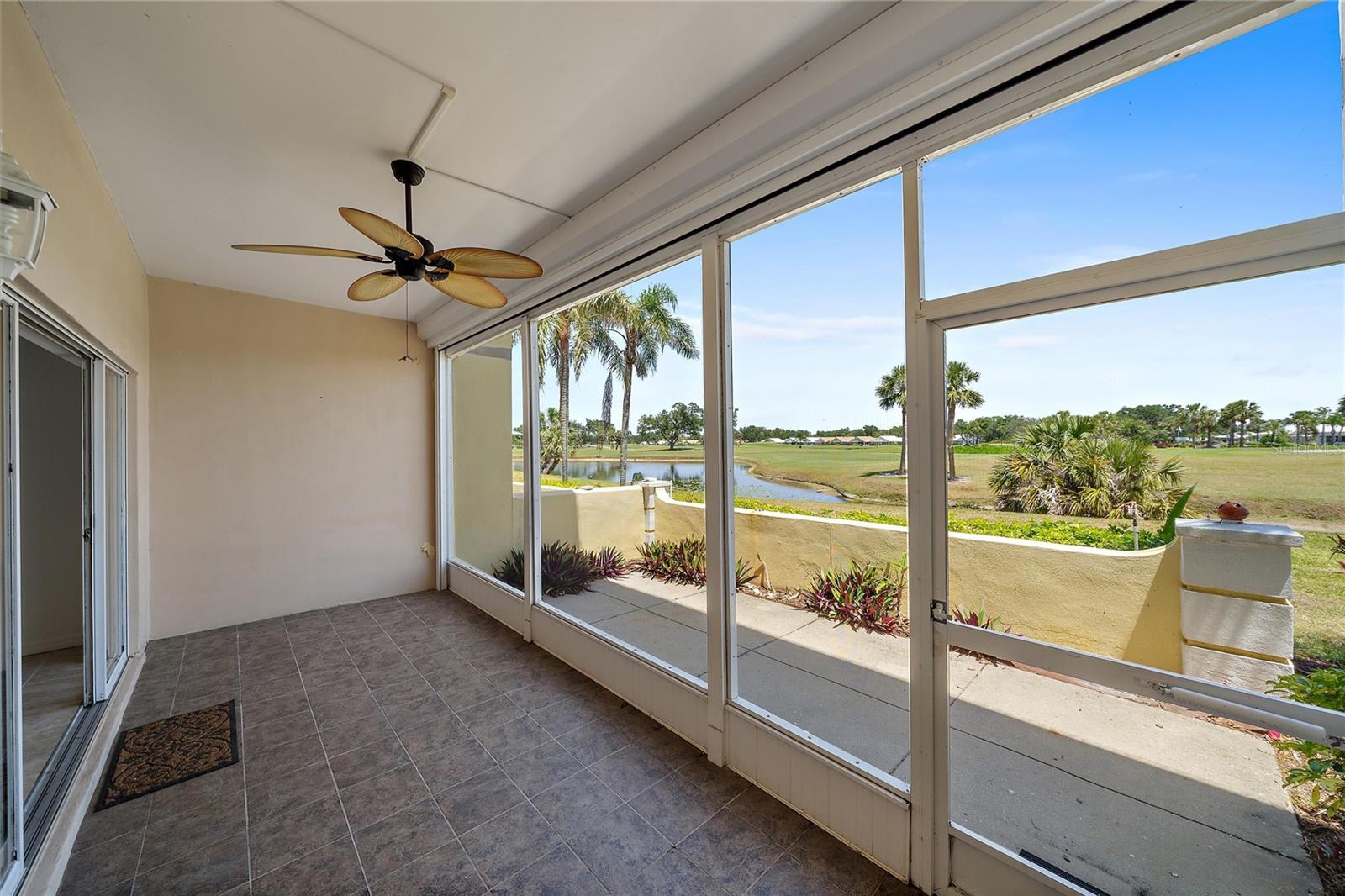 One or more photo(s) has been virtually staged. WOW! Price improved! FIRST-FLOOR End Unit with Golf Course Views in Westchester Gardens. Discover this beautifully updated 2-bedroom, 2-bath END UNIT condo. The thoughtfully redesigned kitchen opens to the main living area and showcases soft-close cabinetry, quartz countertops, a lovely tile backsplash, all designed to enhance functionality. The pantry cabinet features wood pull-out drawers for easy organization. Natural light fills the spacious living and dining area. Enjoy the extra windows in the primary suite and en-suite bath. The ensuite has been tastefully renovated with a coastal contemporary design, featuring tile floors & shower, new vanities, & mirrors with built-in lighting. Tile flooring flows throughout the home—there’s no carpet here—offering both style and ease of maintenance. Enjoy the screened lanai overlooking the golf course & ponds with the addition of the "sun patio". Your PETS are welcome here! There is peace of mind thanks to a Storm Smart Hurricane Screen across the lanai, which provides storm protection at the push of a button. Take note there is a pocket-door creating privacy for your "guest suite". A convenient covered carport and generously sized storage unit are located just beyond your front door. The community pool is just around the corner, and while membership to Plantation Golf & Country Club is optional, you’ll appreciate the beautifully maintained surroundings regardless. Located just minutes from the vibrant shops and dining in Downtown Wellen Park—without being in the midst of the ongoing construction—and under 10 miles to Venice Beach and charming downtown Venice, this home offers both serenity and accessibility. With recent upgrades including a newer HVAC system in 2021, water heater new in 2023, kitchen & entry updates also completed in 2021. Designed for comfort and ease of living, this home combines timeless design with thoughtful updates—perfect for those seeking a relaxed, maintenance-free lifestyle in the heart of Venice and Wellen Park.