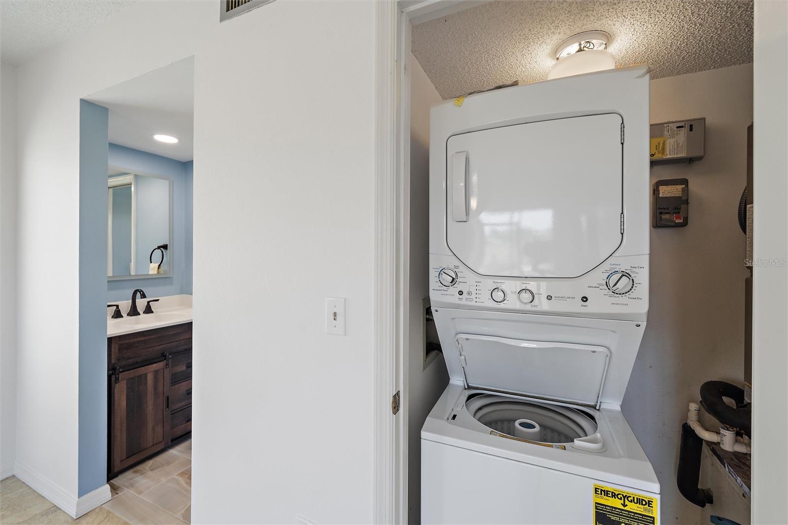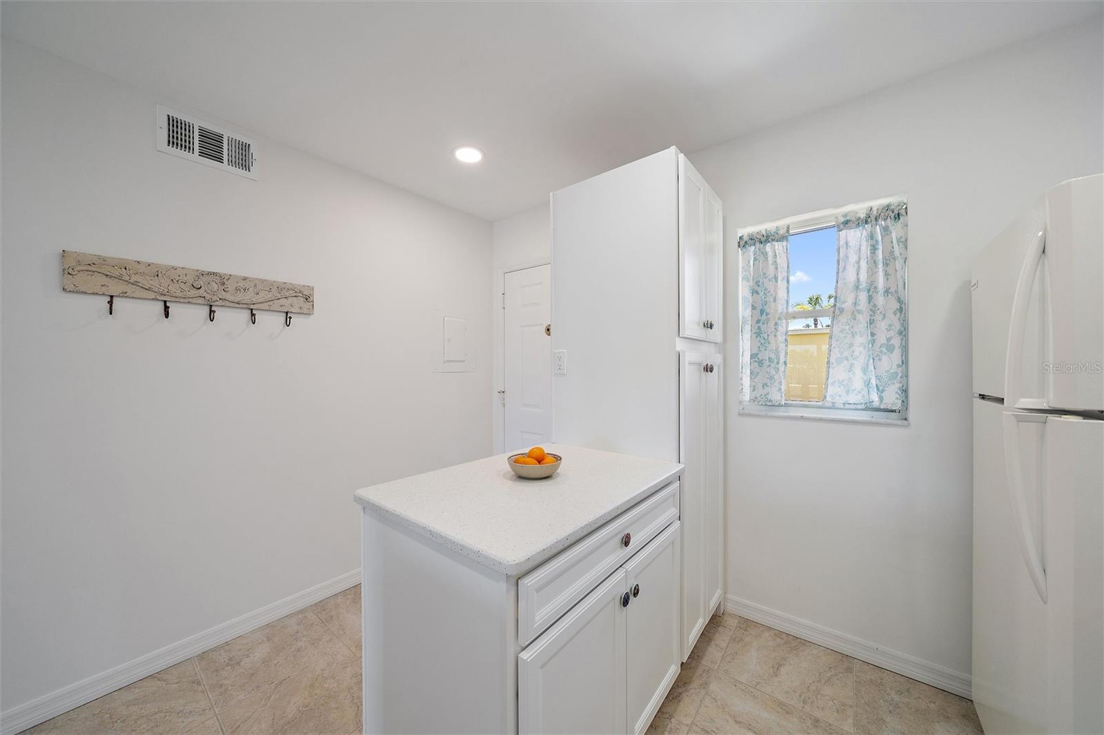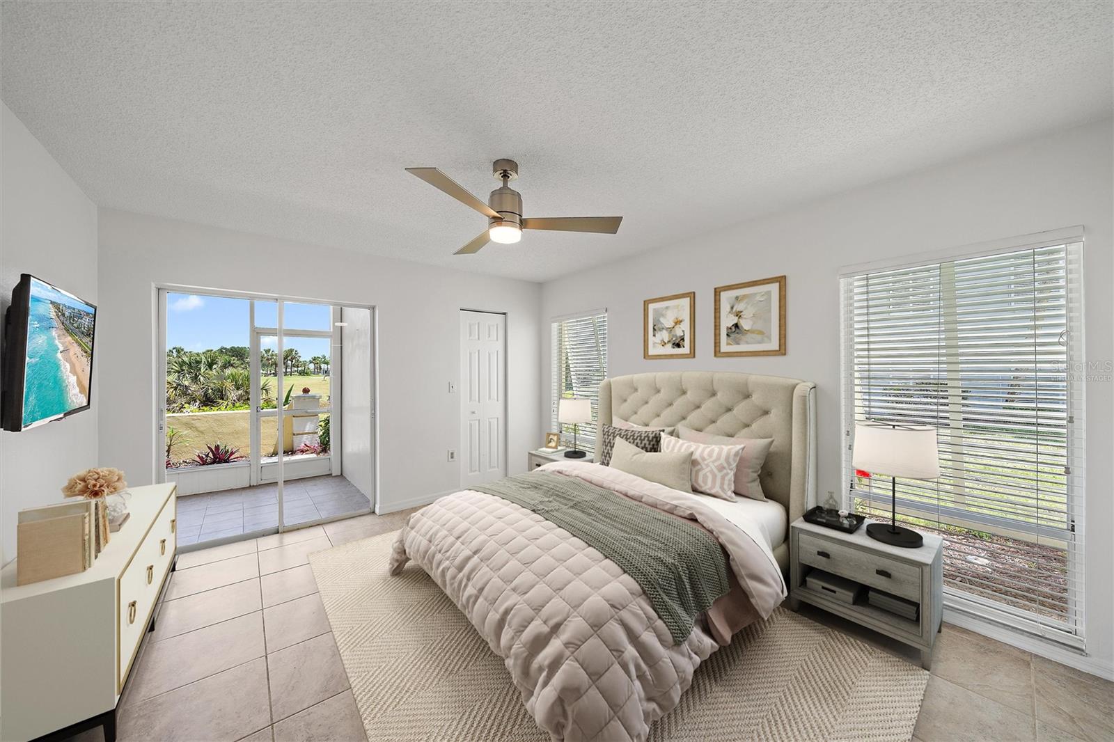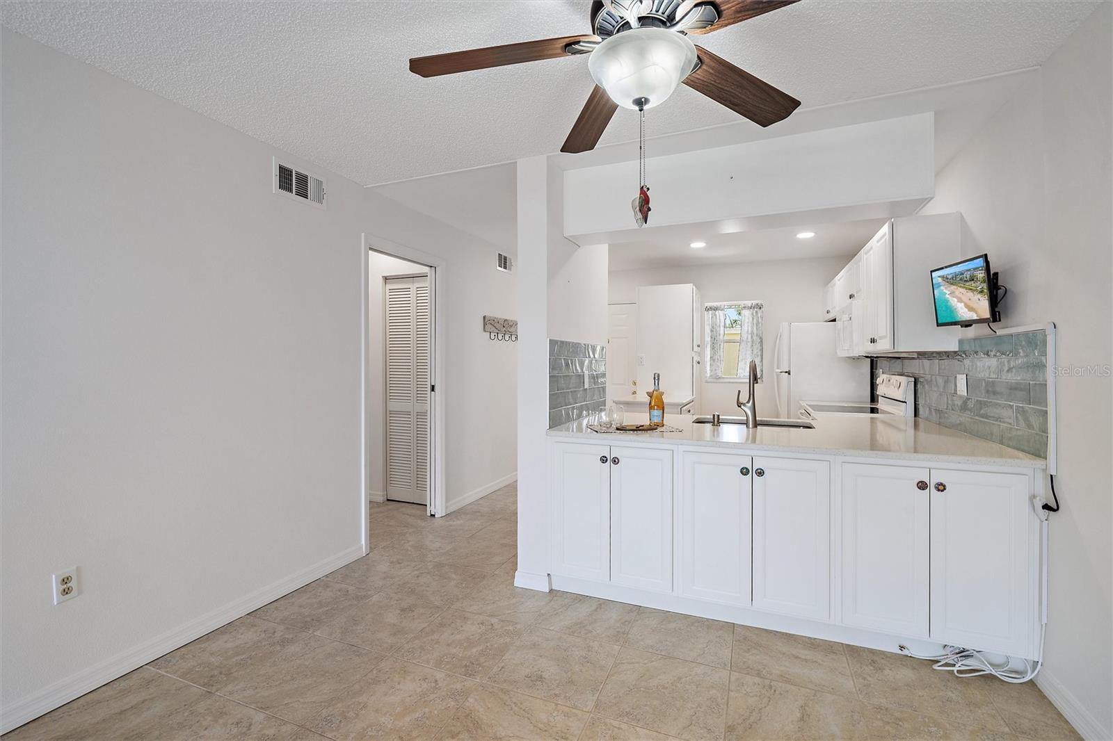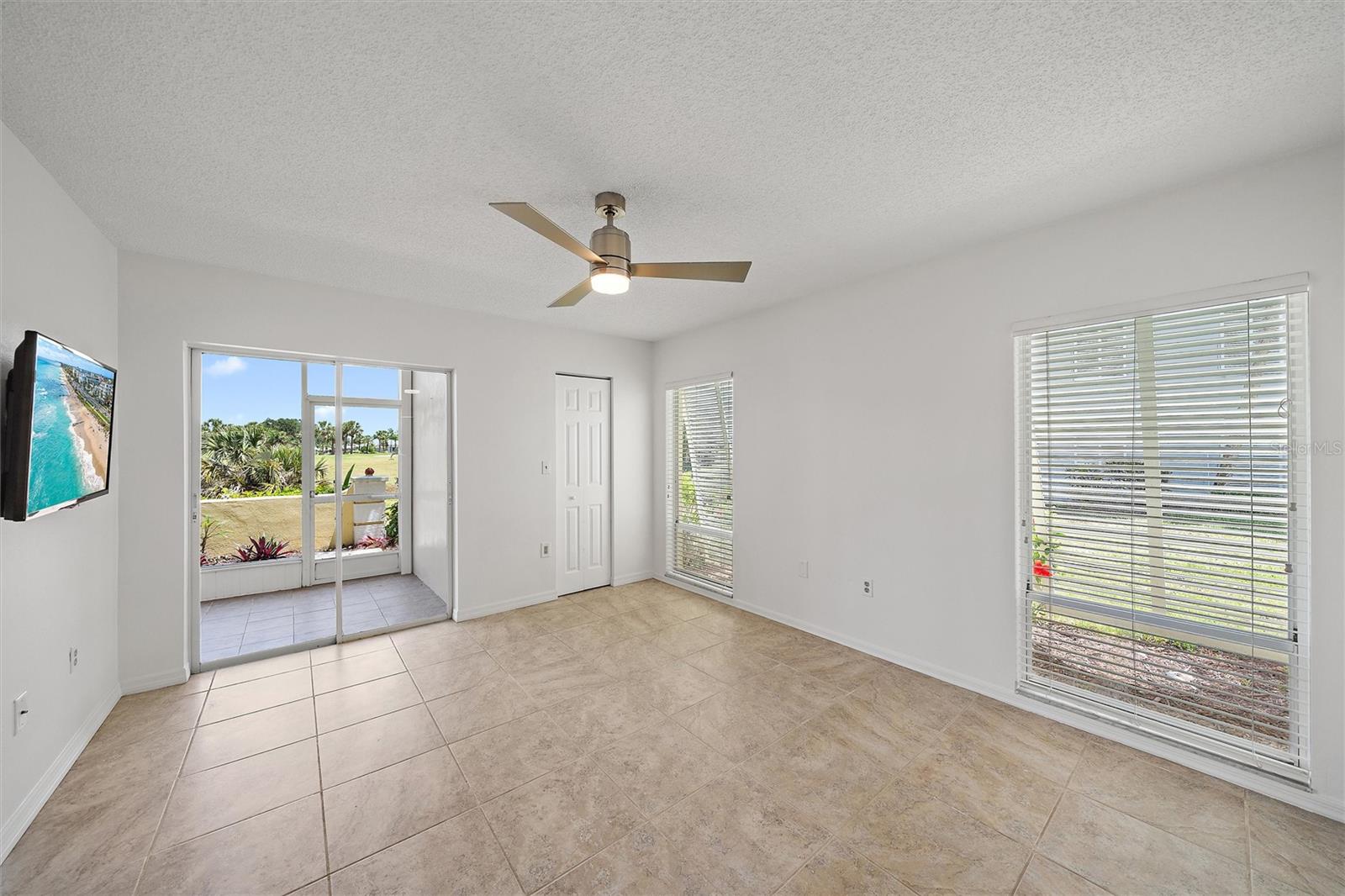 One or more photo(s) has been virtually staged. WOW! Price improved! FIRST-FLOOR End Unit with Golf Course Views in Westchester Gardens. Discover this beautifully updated 2-bedroom, 2-bath END UNIT condo. The thoughtfully redesigned kitchen opens to the main living area and showcases soft-close cabinetry, quartz countertops, a lovely tile backsplash, all designed to enhance functionality. The pantry cabinet features wood pull-out drawers for easy organization. Natural light fills the spacious living and dining area. Enjoy the extra windows in the primary suite and en-suite bath. The ensuite has been tastefully renovated with a coastal contemporary design, featuring tile floors & shower, new vanities, & mirrors with built-in lighting. Tile flooring flows throughout the home—there’s no carpet here—offering both style and ease of maintenance. Enjoy the screened lanai overlooking the golf course & ponds with the addition of the "sun patio". Your PETS are welcome here! There is peace of mind thanks to a Storm Smart Hurricane Screen across the lanai, which provides storm protection at the push of a button. Take note there is a pocket-door creating privacy for your "guest suite". A convenient covered carport and generously sized storage unit are located just beyond your front door. The community pool is just around the corner, and while membership to Plantation Golf & Country Club is optional, you’ll appreciate the beautifully maintained surroundings regardless. Located just minutes from the vibrant shops and dining in Downtown Wellen Park—without being in the midst of the ongoing construction—and under 10 miles to Venice Beach and charming downtown Venice, this home offers both serenity and accessibility. With recent upgrades including a newer HVAC system in 2021, water heater new in 2023, kitchen & entry updates also completed in 2021. Designed for comfort and ease of living, this home combines timeless design with thoughtful updates—perfect for those seeking a relaxed, maintenance-free lifestyle in the heart of Venice and Wellen Park.