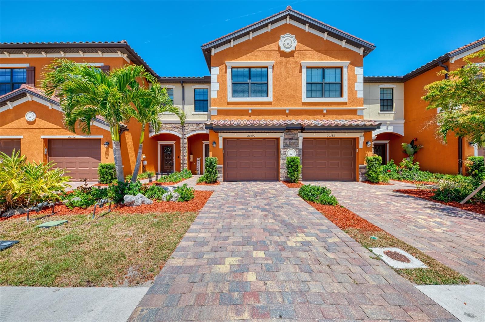LOCATED IN PREFERRED FLOOD ZONE X. The lifestyle of a community like Gran Paradiso is one of relaxed elegance and abundant leisure, set within a vibrant, active environment. As you enter through the gated archway, the first impression is of old-world charm seamlessly blended with modern luxury, thanks to the Tuscan-inspired architecture. The lush, manicured grounds create a sense of serenity, while every aspect of the community is designed to cater to the needs of its residents. At the heart of the community is the beautifully designed clubhouse, which serves as the gathering place for both social and recreational activities. Whether you're enjoying a quiet afternoon in the library, having a friendly game of cards in the card room, or relaxing with friends in the billiards room, there’s always an opportunity for social connection. For fitness enthusiasts, the state-of-the-art fitness center offers the latest equipment, while the resort-style pool and spa provide the perfect setting for unwinding after a workout or simply soaking in the sun. Whether you’re swimming laps or lounging by the pool with a good book, there’s an easy blend of activity and relaxation. The community is designed for those who enjoy an active, outdoor lifestyle. Tennis and pickleball courts are always ready for friendly competition, while the walking and fitness trails encourage leisurely strolls or more rigorous exercise. Nestled in the community are the townhomes offering affordable elegance with a focus on everyday comfort. This beautifully maintained 3-bedroom, 2.5-bathroom townhouse boasts spacious living areas and modern finishes, perfect for both relaxation and entertaining. The open-concept design features a large living room with a dining area and a bright, airy kitchen with granite countertops, stainless steel appliances, and ample cabinetry. The three generously-sized bedrooms are located on the second floor, offering privacy and tranquility. The owner's bedroom features a view of the water, a walk-in closet and an ensuite bathroom with dual sinks and a glassed enclosed shower. The guest bedrooms are split from the owner's location with a second bathroom, The half bath is located on the first floor providing convenience to your guests. From the screened lanai, enjoy the serene water views setting the stage for unforgettable moments whether savoring an alfresco meal, or simply watching the wildlife enjoy their habitat. Gran Paradiso’s lifestyle isn’t just about individual leisure; it’s about creating a sense of community. The blend of luxury, convenience, and leisure creates a place where neighbors become friends, and activities like fitness classes, social events, or book clubs foster connections. In short, life in Gran Paradiso is about enjoying the good things in life. It’s a place where every day feels like a vacation, and the lifestyle is as comfortable. Don't miss out on the opportunity to make this stunning townhouse your own! Schedule a tour today!