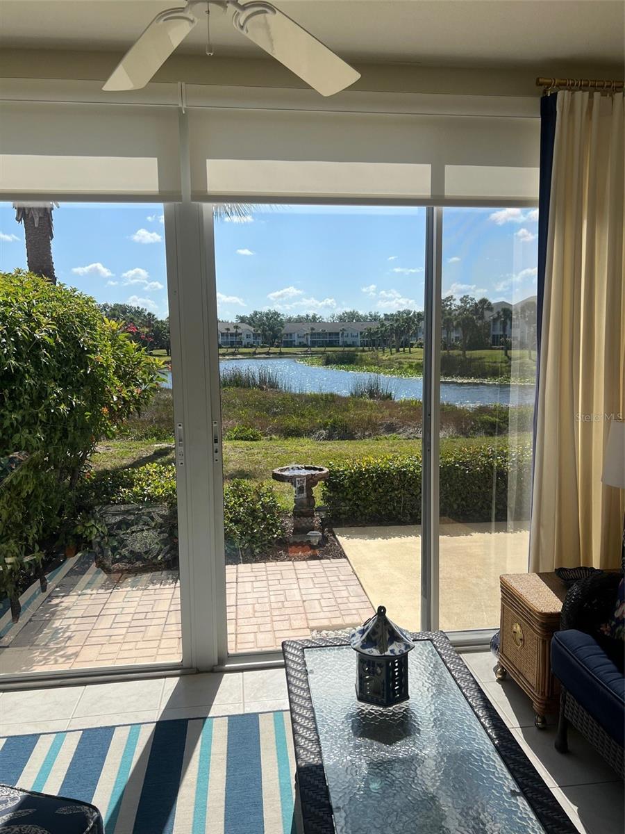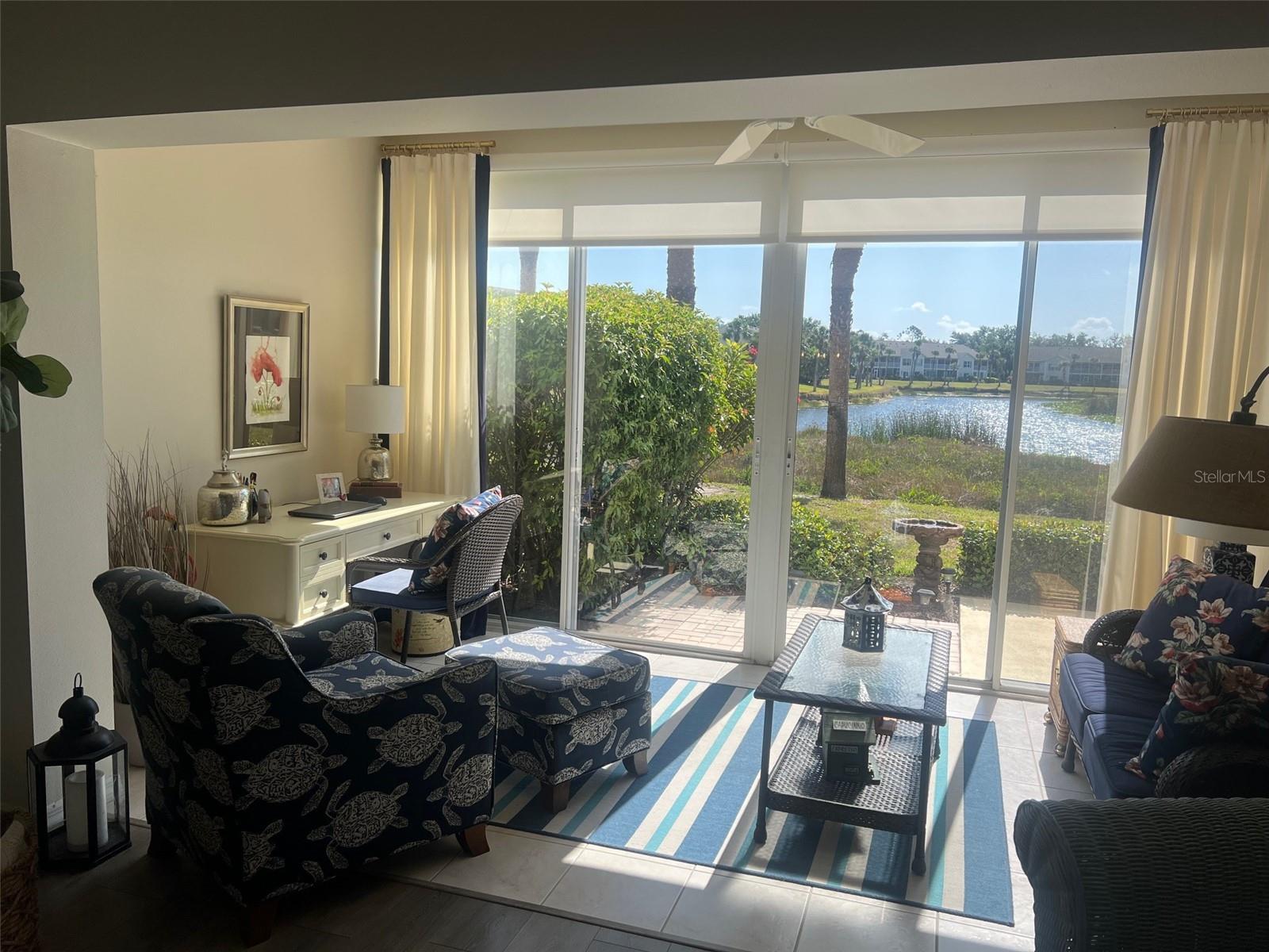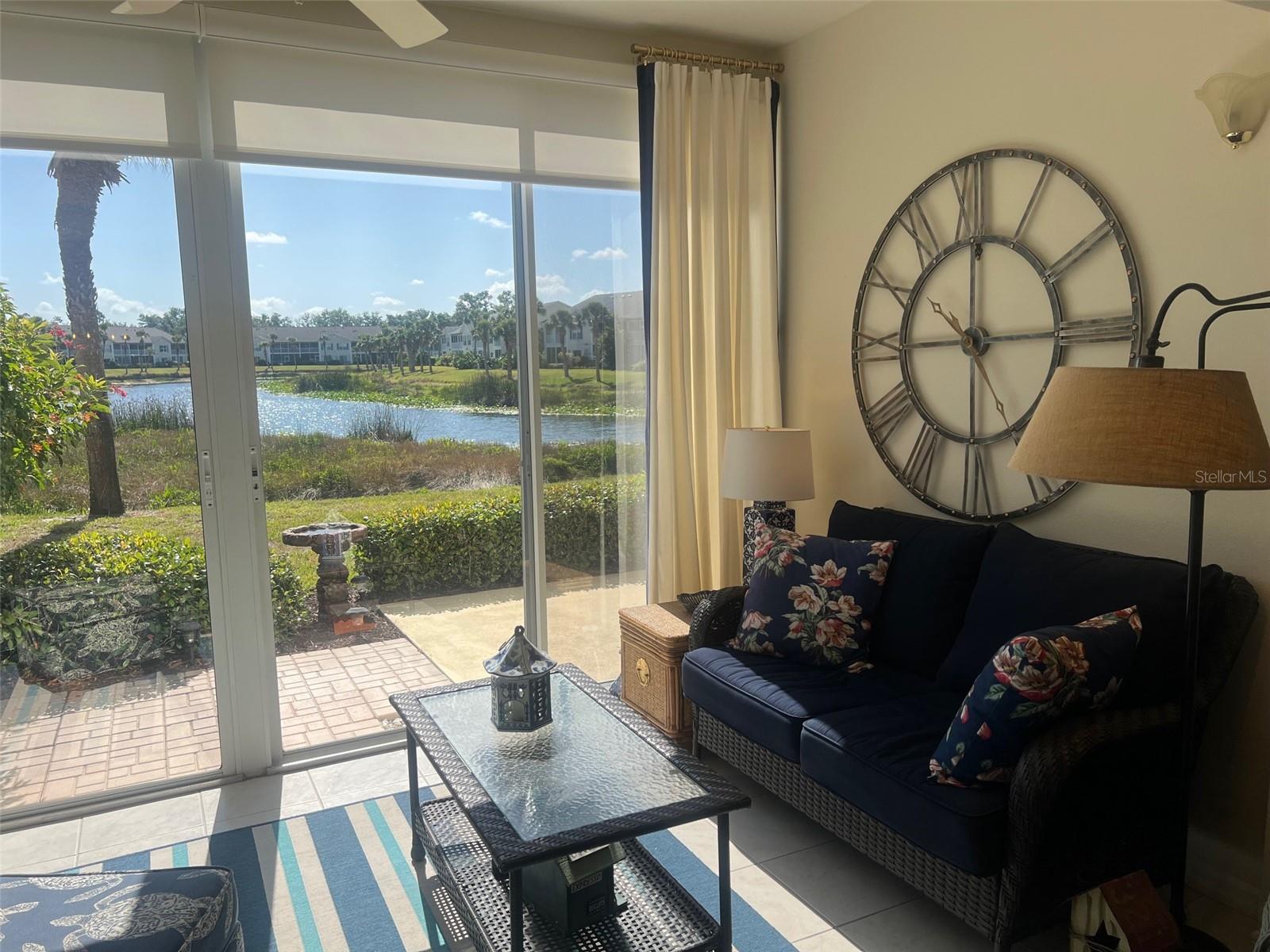 HIGHLY MOTIVATED SELLER is willing to give you her 34,000 loss plus a new refrigerator, water heater and fresh paint throughout. Now is your chance to call this FIRST FLOOR, delightful Waterside Village condo with spectacular, long lake water views your new Venice home! This maintenance free condo is in the highly desirable, friendly and very social Waterside Village community in the heart of Venice. Inviting and immaculate, it offers 2 roomy bedrooms, 2 baths. You will spend all of your time in the Florida room, which you can enjoy year-round, savoring the peaceful water views - so tranquil and a wonderful place to entertain, relax or bird watch. The spacious great room is light and bright and leads to the patio, extending your living area and is another place to enjoy the tranquil lake view and the fabulous weather. The well laid out kitchen has plenty of counter space and cabinets, a large breakfast bar, 2 pantries, a built-in desk and a cheerful breakfast nook. Drift off to sleep in the primary suite which overlooks the shimmering lake, has a walk-in closet and an ensuite bathroom with dual sinks and walk-in shower. Guests will feel right at home in the 2nd bedroom, which is sunny, private and roomy. There is lots to love: engineered hardwood floors (no carpet makes cleaning a breeze), professional interior paint in neutral colors, new window treatments, hard wired surge protection system and annual AC service checks. There is also plenty of storage space thanks to the extra storage area, great for your beach toys and bikes and the condo has an interior laundry room which is a plus. Condo has a newer roof (2016), a designated car port, there are many guest parking spots and rest easy knowing the condo had no damage from Ian. Waterside Village is a very popular community, thanks to its ideal location, many social activities and amazing amenities to include 3 heated, community pools, clubhouse, pickleball/tennis courts, bocce ball, shuffleboard, poker/Euchre/Mexican Train, book club, fitness classes and luncheons. The low condo fee covers so much: roof replacement, exterior painting, all landscaping, water, sewer, trash, cable, pest control and building insurance and the electric bill is very reasonable (average $75 monthly). Waterside Village is in the perfect location - less than 4 miles to historic Venice Island with its stunning Gulf beaches, many restaurants and shops and also close to grocery stores, banks, the new Sarasota Memorial hospital and I-75. Schedule a private showing today and make this fabulous condo your new Venice home!