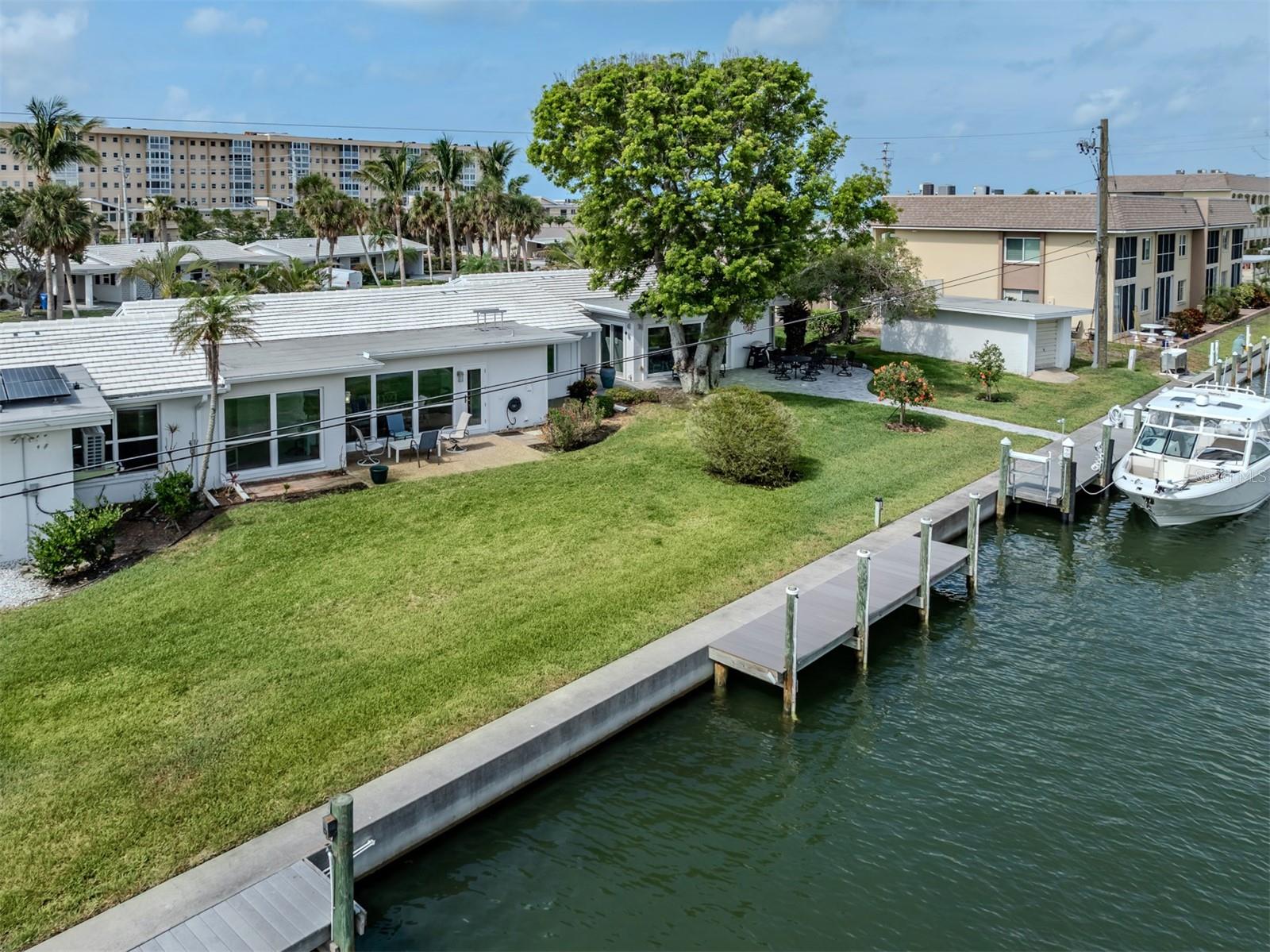 Wow! Imagine walking into your condo everyday and seeing your boat sitting right outside your patio doors! Welcome to 832 Whitecap Circle —an exceptional fully renovated, TURNKEY, 3-bedroom, 2-bath condo nestled in the highly sought-after Point Whitecap community on Venice Island. This rarely available canal-front unit offers stunning water views, a private 35 foot boat slip with direct access to the Intracoastal Waterway and Gulf of Mexico—perfect for boaters and water lovers alike. Step inside to an open and airy layout filled with natural light and porcelain tile flooring throughout. The spacious custom kitchen complete with stainless appliances with Quartz counter tops. The custom cabinetry with an expansive kitchen island with seating and a stunning Calcutta waterfall countertop, seamlessly flows into the living area and dining space. The oversized primary owner suite boasts, privacy and peaceful water views, with an en-suite bath, and walk-in closet. Two guest bedrooms provide privacy and flexibility for visitors or a home office, with a second full bath. Enjoy your morning coffee or evening cocktails while watching boats drift by from your private patio, framed by lush tropical landscaping. Additional features include, community pool, assigned carport parking, and in-unit laundry. Point Whitecap is a pet-friendly community, offering a sparkling community pool, dog park, and is just a short stroll or bike ride to Venice Beach, Sharky’s on the Pier, Downtown Venice, Legacy Trail, airport, and golf course! Whether you're seeking a seasonal getaway or full-time waterfront lifestyle, this charming coastal condo checks all the boxes. With a 3-month minimum lease, excellent rental potential, and low-maintenance living, it’s time to make your move to paradise!