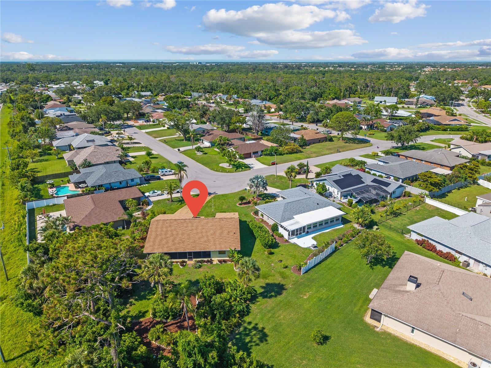 OPEN PLAN, OVERSIZED LOT, AND LOW HOA!! Set on nearly half an acre, the property features lush tropical landscaping that adds beauty and privacy. Inside, you'll find soaring cathedral ceilings, a bright open layout, and a spacious split floor plan. The eat-in kitchen is filled with natural light and includes a center island, while the great room features a wood-burning fireplace and sliding doors that open to the lanai. The spacious covered lanai is made for morning coffee, afternoon breezes, and tropical views. With plenty of privacy and room to garden, unwind, or entertain, it’s a dream spot for outdoor lovers of all kinds. The primary suite includes direct lanai access, an enormous walk-in closet, and a large bath. Two spacious guest bedrooms and a full bath with a laundry closet are tucked on the opposite side of the home for added privacy. NEW ROOF 2024. This home is the perfect canvas to make your own—featuring solid bones, a thoughtful layout, and an unbeatable location. Pinebrook South is a deed-restricted neighborhood with a community clubhouse, pool, and a low annual HOA of just $501/year. Conveniently located close to beaches, dining, and everything Venice has to offer.