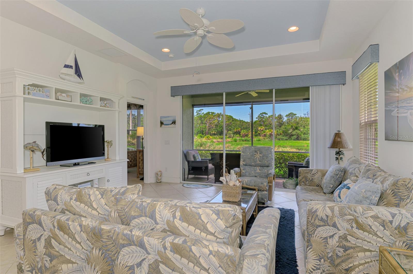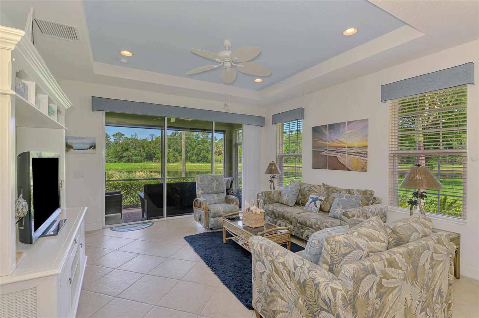 This villa is offered TURNKEY FURNISHED—ideal for moving right in or as an investment rental. PLUS, Peace of Mind Included-HOME WARRANTY with purchase! Simply bring your personal items and start enjoying life in your new home! Positioned on a premium lot with one-of-a-kind views of both the water and the peaceful preserve, this home provides a serene setting where you can relax and watch local wildlife from your private lanai. The home is situated on a widened lot with a private walkway—an exclusive feature, only enjoyed by a few villas. All furniture and most décor are provided, offering a stress-free path to immediately enjoy your Florida paradise. This charming villa offers 2 Bedrooms, 2 Bathrooms, and a Study/Den, all nestled within the highly desirable, gated, all-ages community of Verona Reserve. The airy, open-concept layout showcases a generous kitchen equipped with 42-inch cabinetry, a spacious breakfast bar, and stainless steel appliances, including a Refrigerator and Microwave purchased in 2024. The dining space seamlessly connects to the generous great room, where triple sliding glass doors lead to the screened lanai overlooking peaceful pond scenery. The primary suite features a walk-in shower, dual vanities, and an expansive 10-foot walk-in closet. Positioned on the opposite side of the home, the guest bedroom provides extra privacy and is accompanied by a full guest bathroom nearby. For added convenience, the home also includes a laundry room equipped with a Washer, Dryer purchased in 2024 and Utility Sink. Just off the kitchen, you'll find a generous Study/Den with double doors—perfect for a home office or a versatile bonus room. The property also includes a private driveway and an ample sized two-car garage. Verona Reserve amenities include a refreshing Community Pool, a fenced Dog Park for your furry friends and Sidewalks for strolling and staying active. NO CDD Fee, $425 monthly HOA fee offers professional management, roof repair or replacement, exterior painting, master insurance, landscaping, pest control, reserves, community pool, and the dog park. Excellent location, less than 5 miles to Downtown Venice, Dining, Shopping, Beaches, Legacy Trail and Venice Theater. Walking distance to Publix Grocery/Pharmacy. Close proximity to Medical Offices and Sarasota Memorial Hospital in North Venice. Schedule your showing today and prepare to fall in love with your new home!