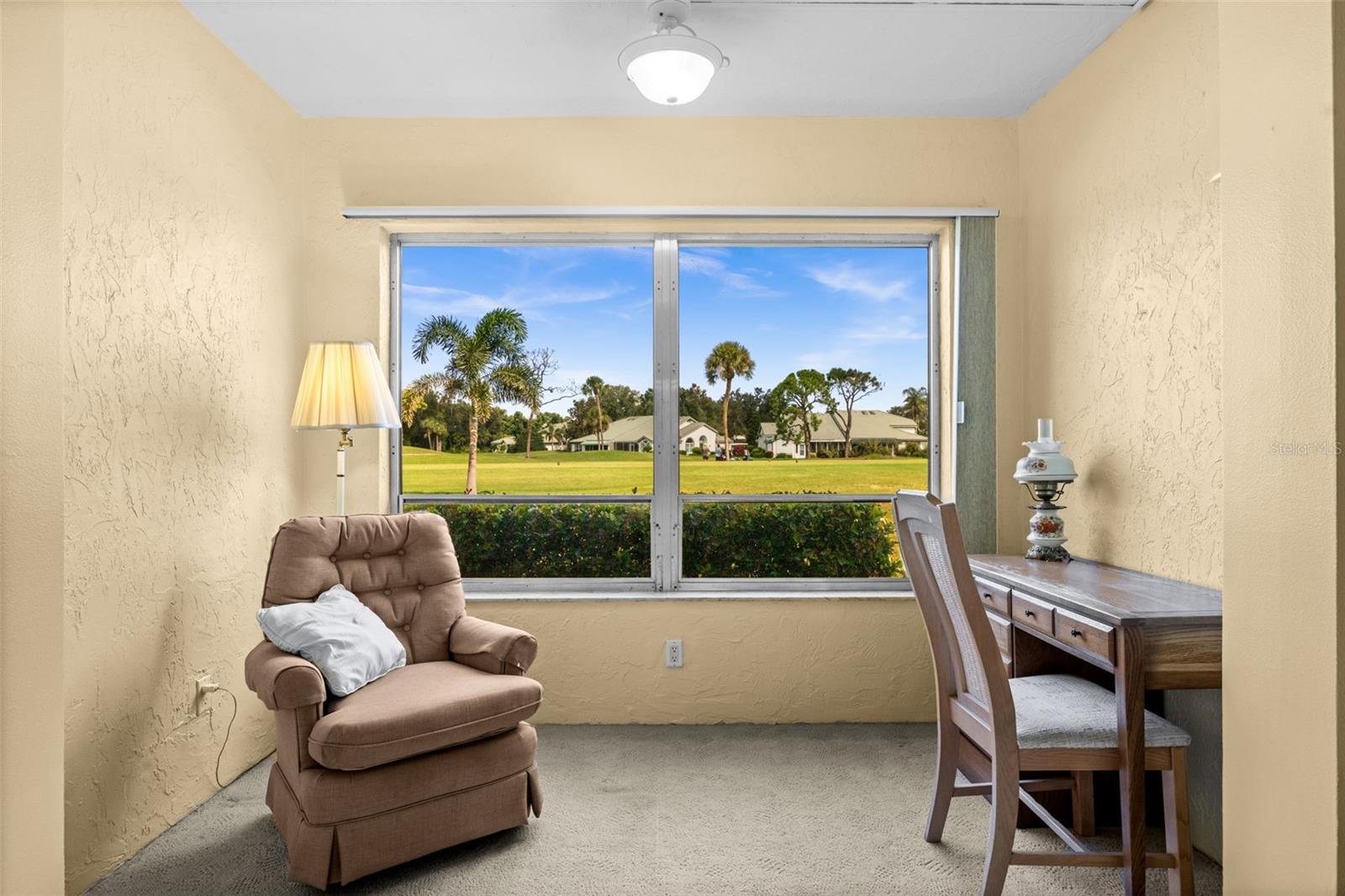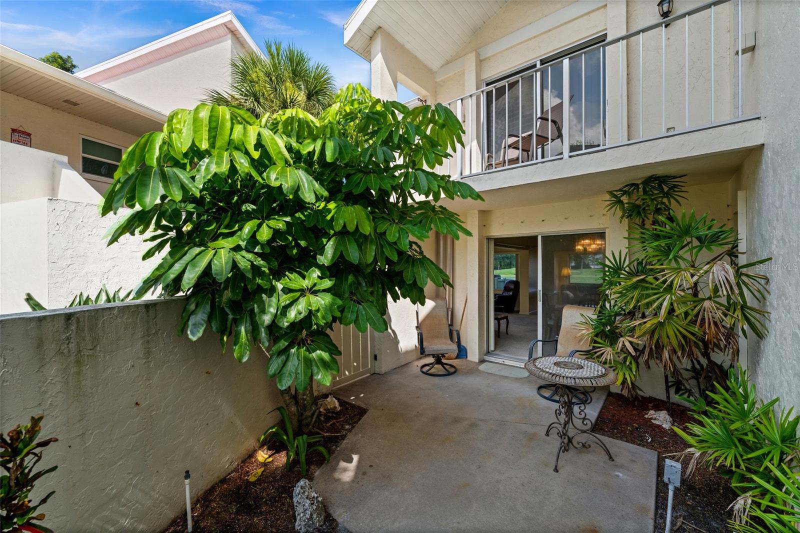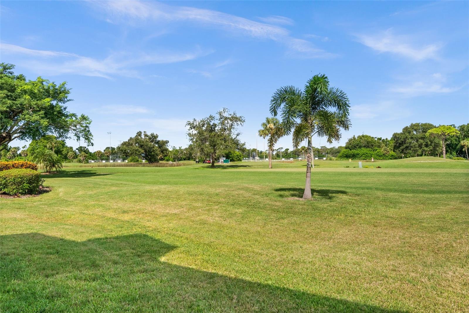 This spacious 2-bedroom, 2-bath first-floor end unit condo offers 1,607 square feet under air and stunning views of the 9th tee of the golf course! The interior features fresh paint, kitchen with stainless steel appliances as well as an in-unit washer and dryer included in the price. A gas fireplace fueled by propane adds warmth and charm, while the generous layout provides both comfort and functionality. Additional highlights include accordion shutters, a designated outdoor storage closet and a carport space conveniently located second from the left in front of the building. The unit also includes a small courtyard-style common area at the entrance and is offered partially furnished if desired by the buyer. The A/C was replaced in 2019 and the water heater in 2017. The well-maintained community offers a variety of amenities, including two pools, a clubhouse and ample parking. HOA fees cover water, sewer, cable, trash, monthly pest control and exterior maintenance/grounds —making for easy, low-maintenance living. Ideally located conveniently down the road from Publix / Mobil and a short distance to SMH Venice and Venice downtown. It also offer an easy access to Sarasota, Wellen Park and local airports. This condo combines comfort, convenience and beautiful golf course views—an excellent opportunity for full-time or seasonal Florida living.