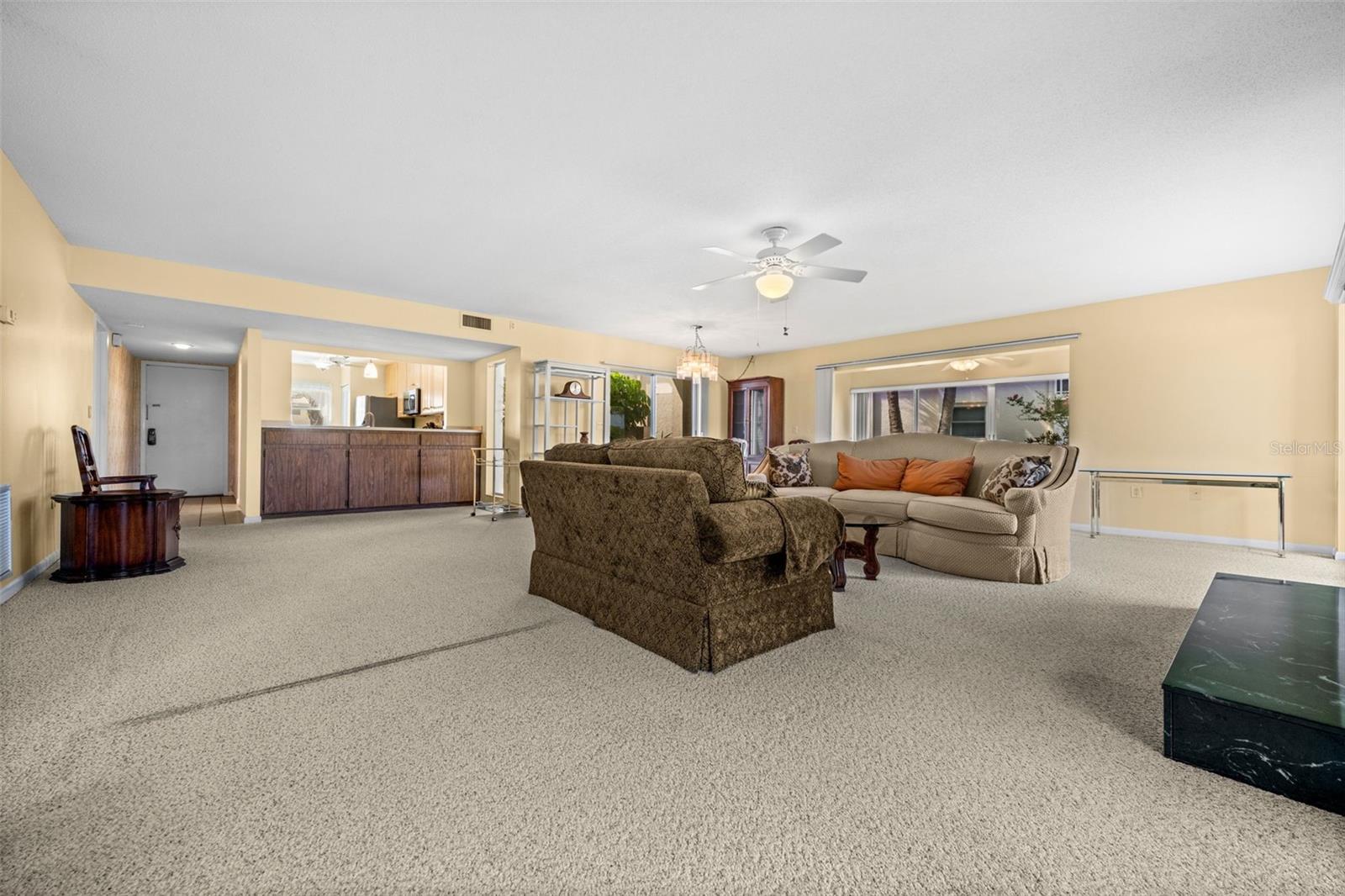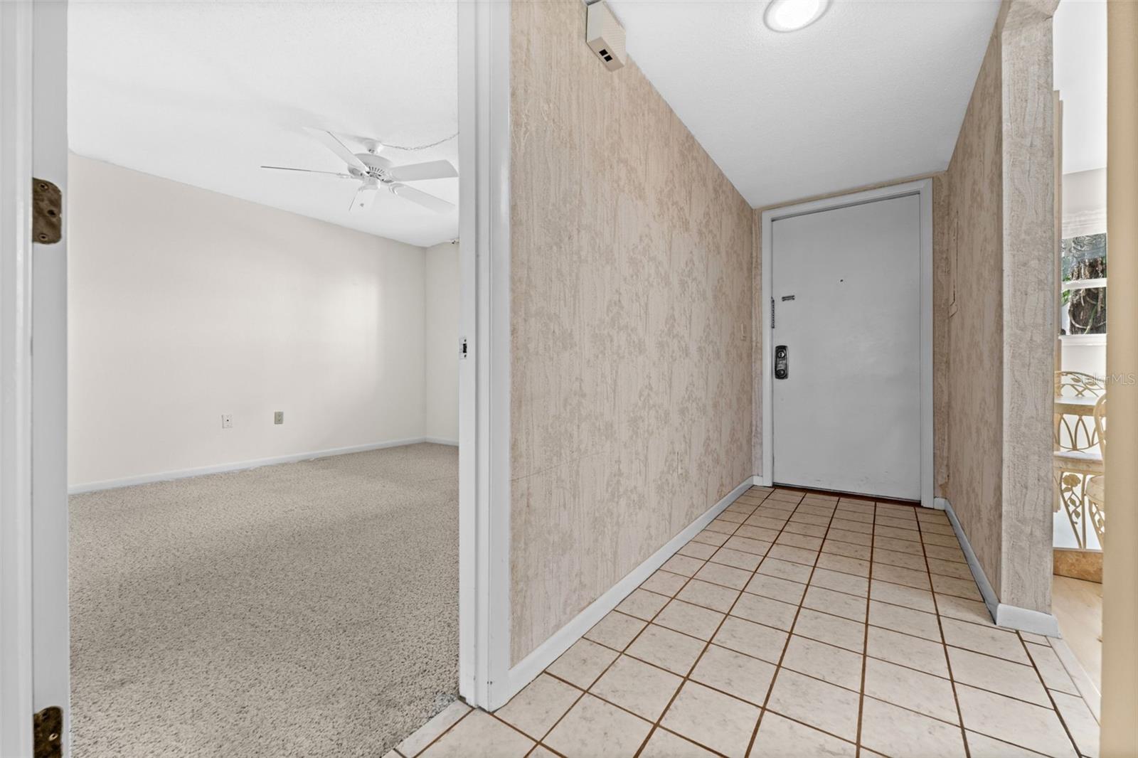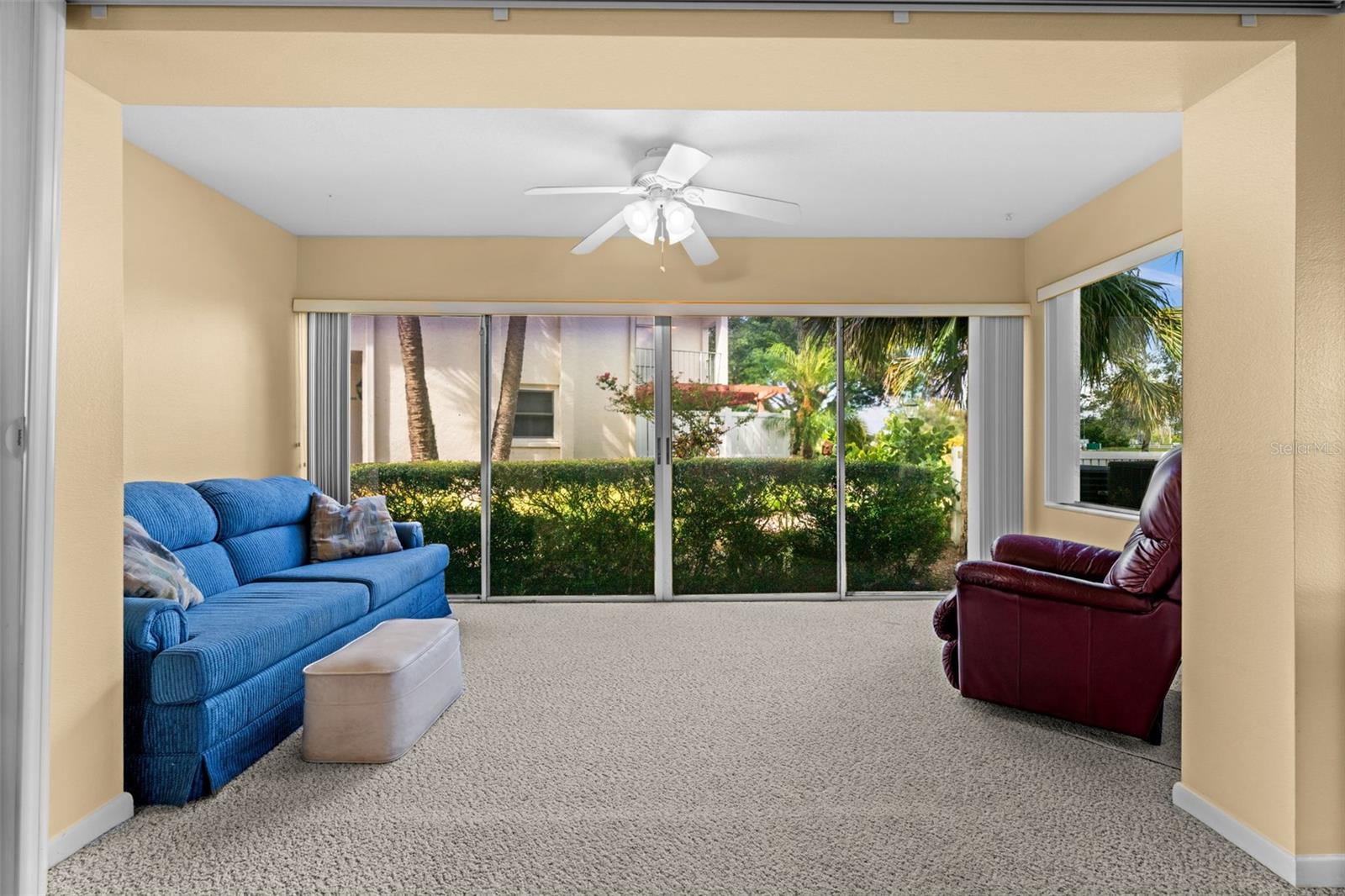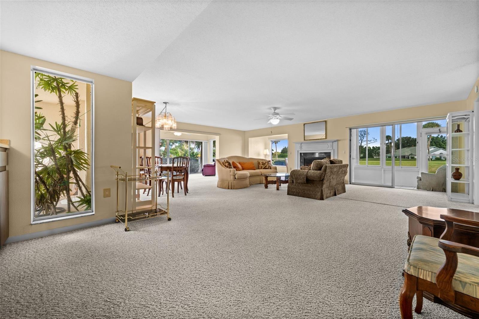 This spacious 2-bedroom, 2-bath first-floor end unit condo offers 1,607 square feet under air and stunning views of the 9th tee of the golf course! The interior features fresh paint, kitchen with stainless steel appliances as well as an in-unit washer and dryer included in the price. A gas fireplace fueled by propane adds warmth and charm, while the generous layout provides both comfort and functionality. Additional highlights include accordion shutters, a designated outdoor storage closet and a carport space conveniently located second from the left in front of the building. The unit also includes a small courtyard-style common area at the entrance and is offered partially furnished if desired by the buyer. The A/C was replaced in 2019 and the water heater in 2017. The well-maintained community offers a variety of amenities, including two pools, a clubhouse and ample parking. HOA fees cover water, sewer, cable, trash, monthly pest control and exterior maintenance/grounds —making for easy, low-maintenance living. Ideally located conveniently down the road from Publix / Mobil and a short distance to SMH Venice and Venice downtown. It also offer an easy access to Sarasota, Wellen Park and local airports. This condo combines comfort, convenience and beautiful golf course views—an excellent opportunity for full-time or seasonal Florida living.