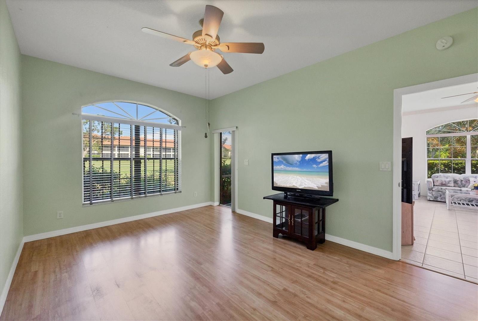 One 007..(That's secret code for this is a real find!) Don't see this as a sales pitch, understand this one is REALLY all about location location and location, with hidden secrets all your neighbors WON'T enjoy. Located in the wildly popular amenities packed, gorgeous Gondola Park Community on the Capri Isles Golf. Watch the golfers approach the 2nd fairway and fabulous sunsets from your 9x18 screened lanai with full size sliders pocketing out of sight from the living and your own private slider from the primary suite. This 2 BR, 2 Bath condo has loads of updates and is tastefully done in neutral tones and lasting finishes, granite, tile and easy to clean floors with a split floor plan. Closets are plentiful and allow for a large pantry off the kitchen or storage of whatever you need. Speaking of storage. Don't not miss the fact your single car garage has direct and COVERED access to the front door. Nary a drop of summer rain will muss your hair in this place. Located at the far back corner of the Community, You'll appreciate the perks this provides. It's an END unit, GROUND LEVEL . You're at the end of the cul de sac and have additional parking spaces and plenty of space for scooters and sidewalk chalk. The living room hides a large walk-in storage closet that will really come in handy. Full size top loading Maytag washer dryer set, updated white appliances. Amazing open concept from kitchen to living area and the lanai. This Community has just, replaced the roof, remodeled the clubhouse where planned YEAR ROUND SOCIAL ACTIVITES are happening. Tennis and pickleball courts are close enough to stroll over but far enough to not hear them. You'll have access to a gorgeous pool with lake and fountain views, 2 exercise rooms, a CRAFT ROOM!! Sewing, cards, and pool. Location is everything, 1 turn off Capri Isles to the beach in Venice, minutes to the Venice SMH and I-75.