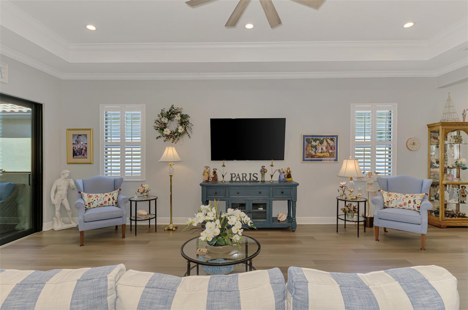 Why wait to build when you can have a newer home (Built 2023)? Come take a look at this sought-after Sea Mist Model with 3 BDRM 2.5 BA 3-car garage home with 2,427 SF of beautiful living space! This stunning home has Hurricane Impact Glass Windows and Doors along with pre-wiring for a generator! As you walk through the front door, you immediately feel the open floor plan and bright light coming through the double door sliders to the lanai and outdoor living space! The kitchen is a chef’s dream with a large island bar, upgraded kitchen appliances, quartz countertops, pull-out kitchen drawers with soft close – a perfect kitchen for entertaining guests! This outstanding home has vinyl plank flooring throughout, crown molding, plantation shutters and more than $161K in lot and option upgrades! As you walk onto the lanai, you feel peace and serenity with the private backyard and side lot that is preserve. Enjoy spending quiet evenings on this lanai watching the beautiful Venice sunsets! The lanai is also pre-plumbed for an outdoor kitchen, has electrical power installed for a pool and has outside cable for a TV along with sun/privacy shades. One of the many great selling features of this home is the large extended driveway that allows 6 cars to park in the driveway, so you don’t have to park on the street when entertaining guests! Grand Palm offers a plethora of amenities, including a full-time activities director, three pools with shaded cabanas, a fun slide, splash park, playgrounds, clubhouses, fitness center, pickle ball, and various sports courts. Nature enthusiasts will appreciate the fishing and kayak launch, 26+ miles of walking and biking trails, and Adventure Lake for water activities. Beyond the community’s borders, you’ll discover the vibrant development of Wellen Park, boasting shopping, dining, the Braves Spring Training facility, and easy access to major roadways and airports. And let’s not forget, Florida’s renowned beaches are just a short drive away, providing endless opportunities for relaxation and recreation. With its perfect blend of comfort, style, and recreational opportunities, this home in Grand Palm offers a truly unparalleled lifestyle experience. Come make it yours today!
