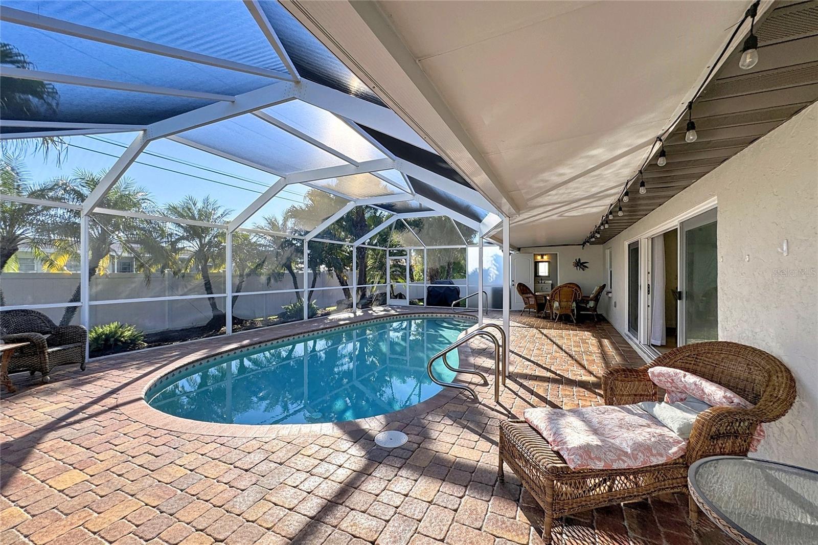 Welcome to Golden Beach, one of Venice Island’s most sought-after neighborhoods - the name truly says it all. This community offers its own private beach access and places you just moments from the heart of downtown Venice, giving you the perfect blend of coastal living and convenience. Before admiring the beauty of the home itself, take a look at the extensive list of updates: Paver Sealing (2025), Refrigerator (2019), Washer & Dryer (2021), Dishwasher (2022), Pool cage screening (2022), Fence (2023), Paver driveway (2021), 10 impact-rated windows, doors, and sliders (2022), Front paver porch (2021), HVAC – 4-ton system (2017), Water heater (2013), Plumbing (2013), 6 ft. vinyl fence (2013), New tile roof (2013) with a 2024 four-point inspection. The professionally landscaped and fully fenced yard creates a private, tropical retreat. Step through the front door and you’re greeted by an inviting, open layout filled with natural light—ideal for both quiet evenings at home and hosting guests. Tile floors throughout offer a clean look and effortless upkeep. The kitchen, dining area, and family room all overlook the heated, screened-in pool. The lanai features an insulated roof, making the space enjoyable year-round, rain or shine. Lush landscaping around the pool adds a true resort feel, and the convenient pool bath with shower is an added bonus. The split floor plan places the spacious primary suite on one side of the home and the guest bedrooms on the other, giving everyone privacy. The home also includes a two-car garage and paver walkways that lead to the front entrance and mailbox. You’re about a mile from the Venice Fishing Pier, Sharky’s, the dog beach, and the charming shops, restaurants, and entertainment options in downtown Venice. Simply move in and start enjoying the Florida lifestyle the way it was meant to be. This is a home you’ll want to see in person—don’t miss it.