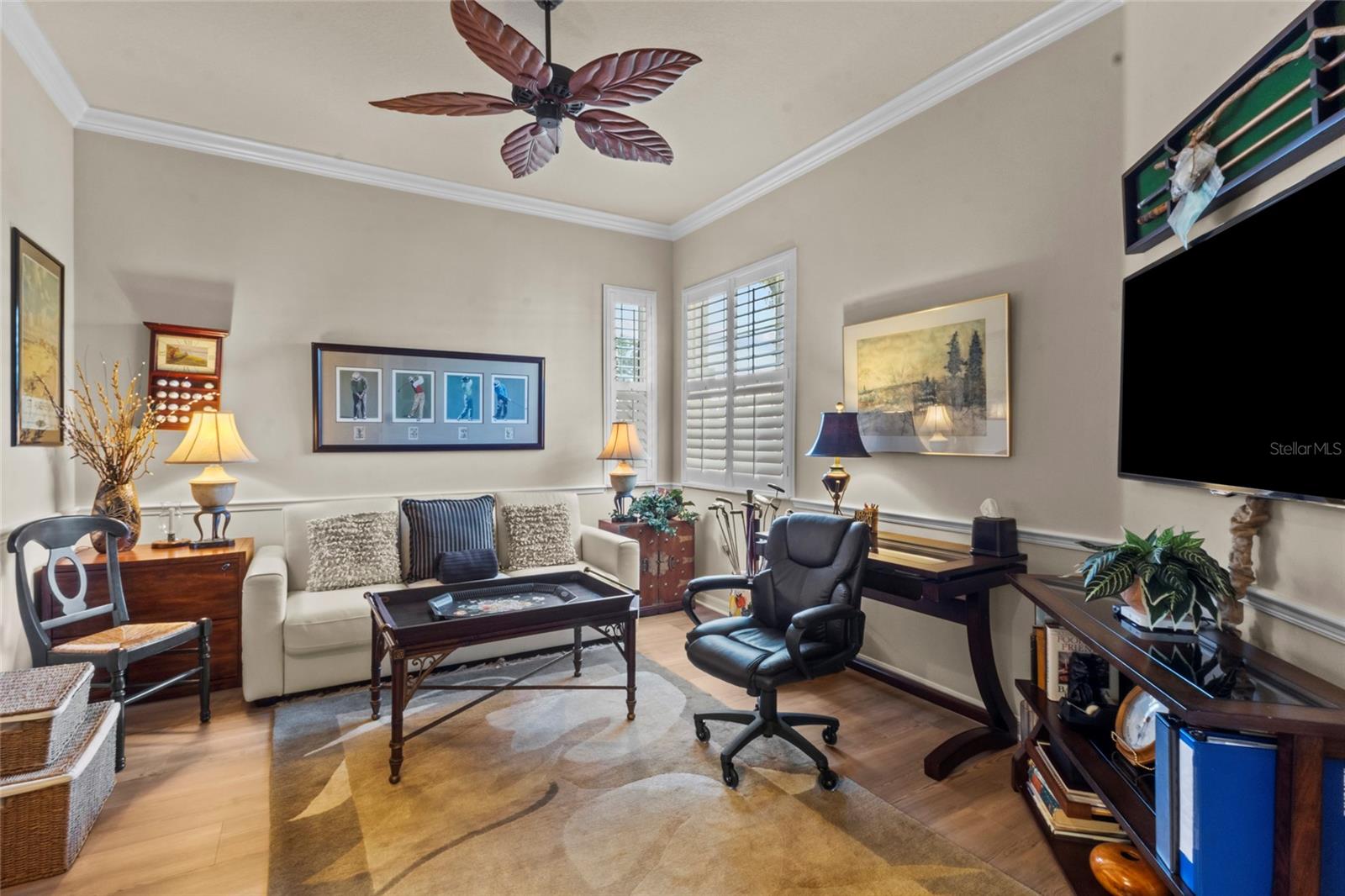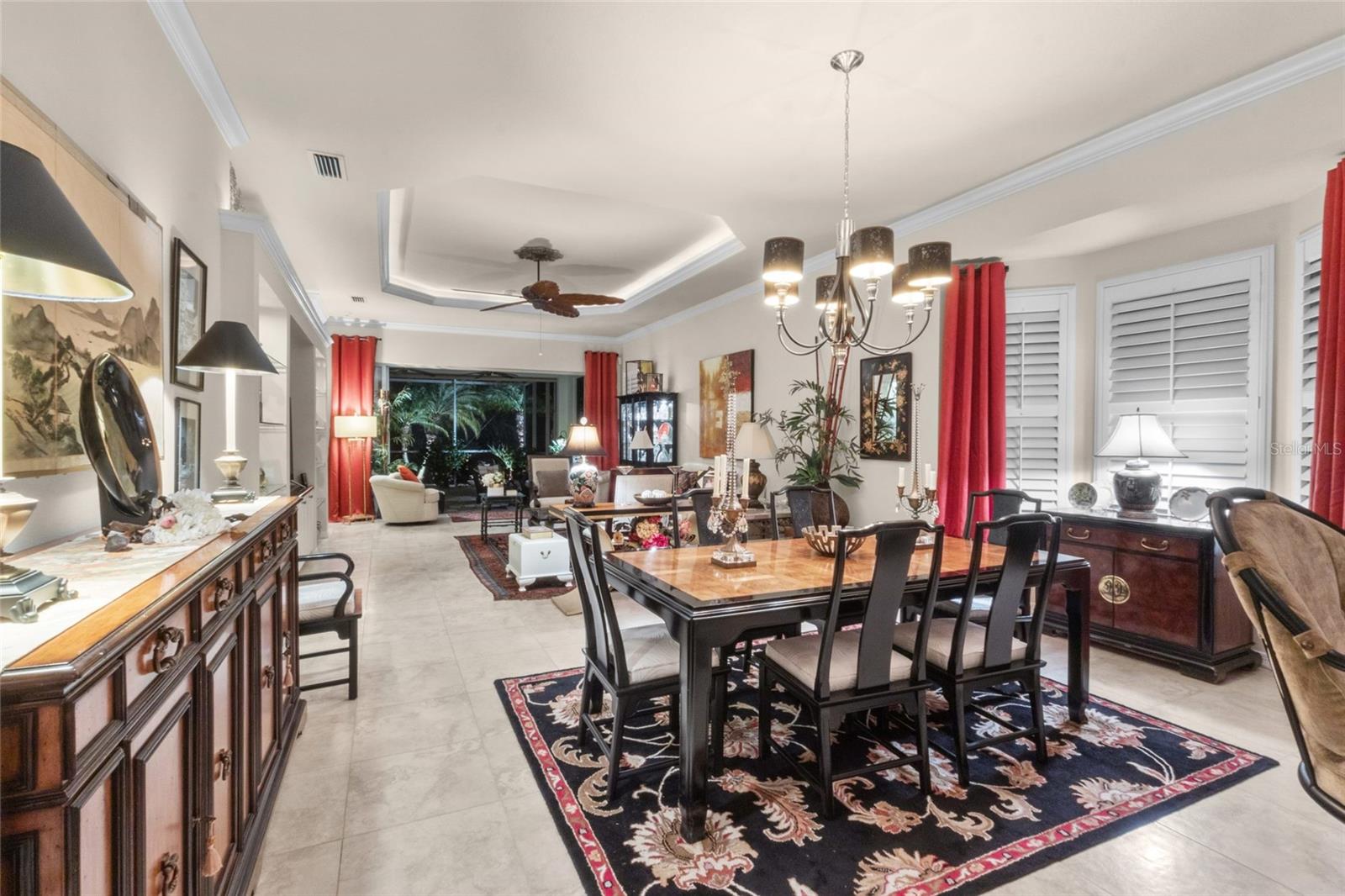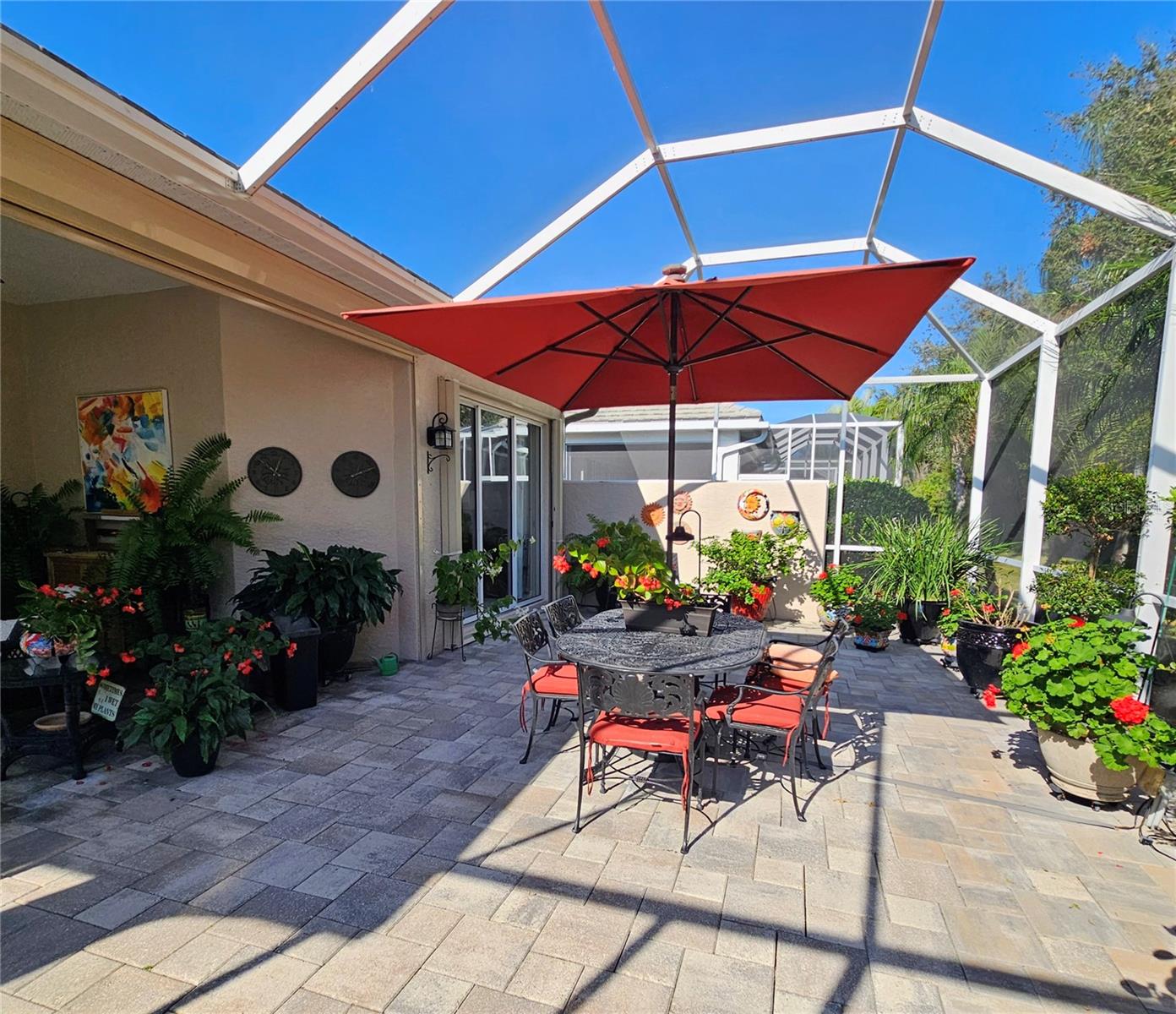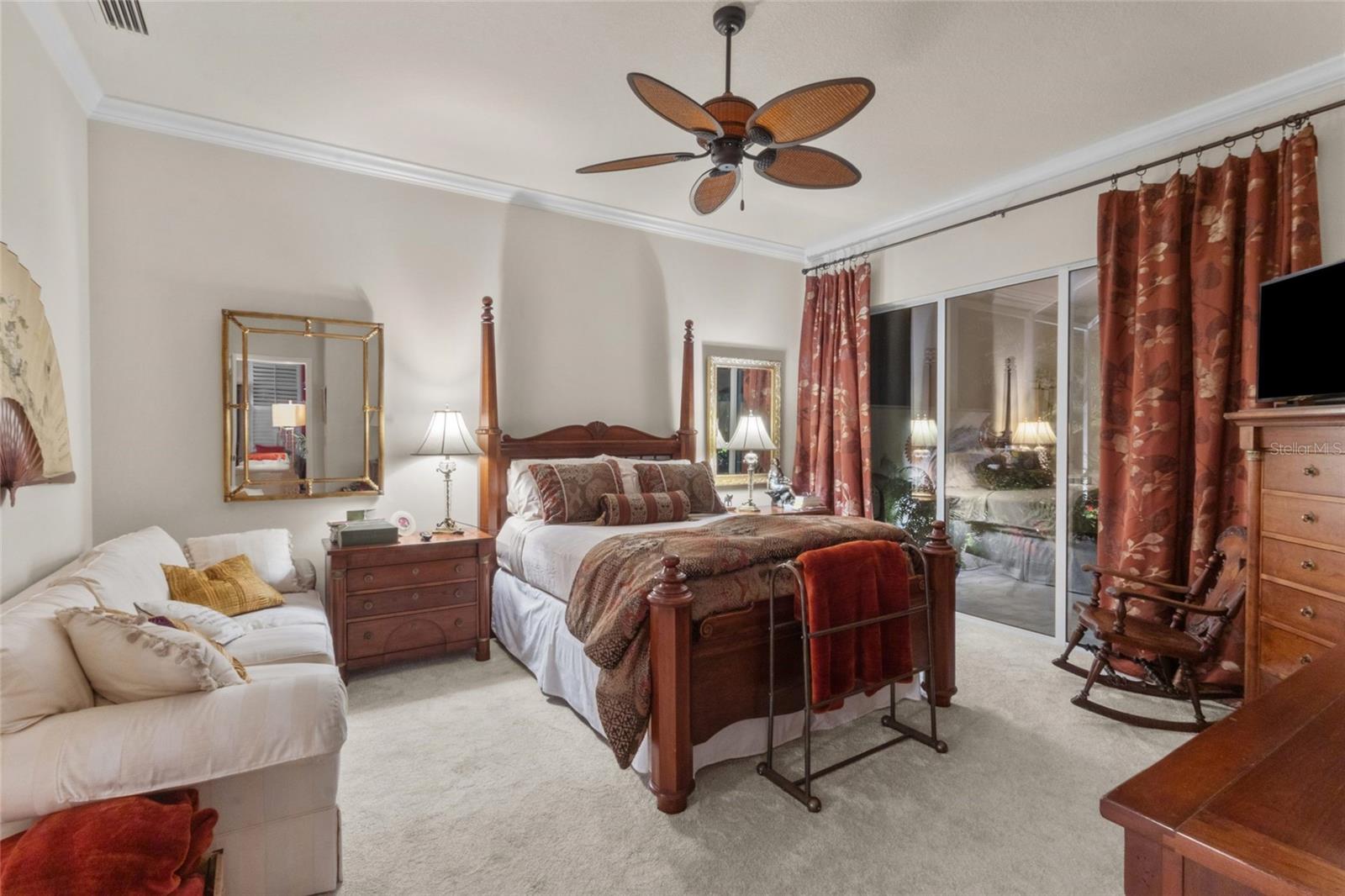 Discover easy, maintenance-free living where everything is handled for you, giving you more time to enjoy the Florida lifestyle. Exterior insurance, roof reserves, lawn care, pest and termite protection, exterior painting, and discounted high-speed internet are included in the quarterly fees. The community offers two pools, a resident-run clubhouse, no CDD fees, and optional membership at Plantation Golf & Country Club for golf, tennis, pickleball, fitness, dining, and social activities. This patio home stands out for its exceptional storage. The primary suite includes two walk-in closets, and the guest suite features another large walk-in closet plus pull-down attic stairs leading to a finished storage room—a rare and valuable feature in Florida homes. Inside, the home is bright and welcoming with neutral tile floors, plantation shutters, crown molding, and tray ceilings. The kitchen has crisp white cabinets, granite countertops, double ovens (2023), induction cooktop with hood vented to outside, Bosch dishwasher (2023), a walk-in pantry, breakfast bar, and an eat-in area framed by a bay window and additional cabinetry. The oversized screened lanai feels like a private tropical oasis, surrounded by lush landscape that creates complete privacy. A bubbling fountain and low-voltage lighting make this space perfect for relaxing or entertaining. Additional highlights include an inside laundry with utility sink, extra cabinetry and counter space, an epoxy-coated garage floor (2025), interior paint (2024), and a new HVAC system with blue light technology (2020). The home is fully storm-ready with impact glass windows, motorized roll-down Kevlar hurricane screen on the covered lanai, and accordion shutters at the primary bedroom slider—allowing quick and complete protection. A third bedroom currently serves as a den/office, offering flexible space for work or hobbies. Immaculately maintained and thoughtfully upgraded, this home offers the rare combination of maintenance-free living, privacy, and exceptional storage in a highly desirable Venice community.