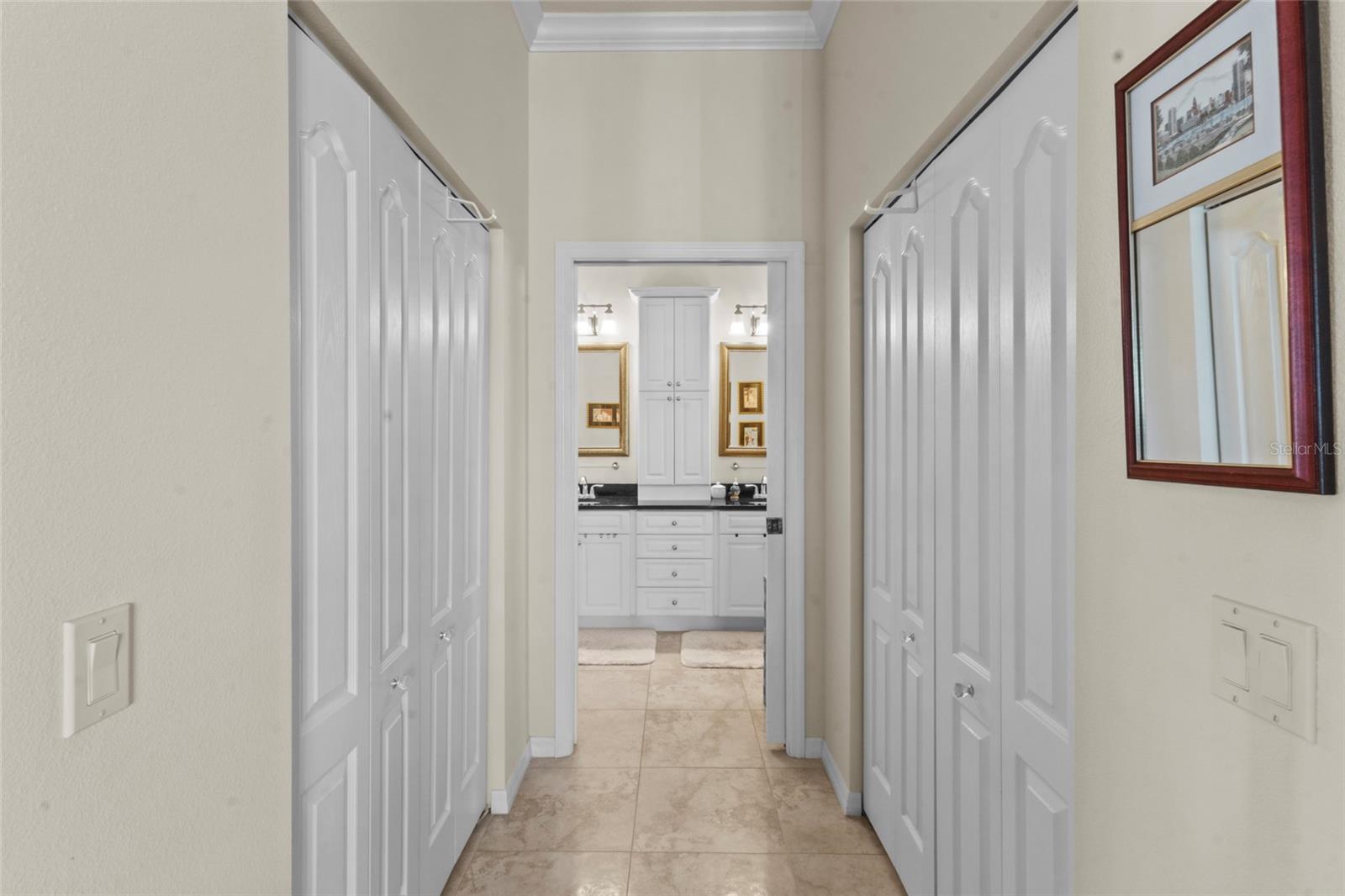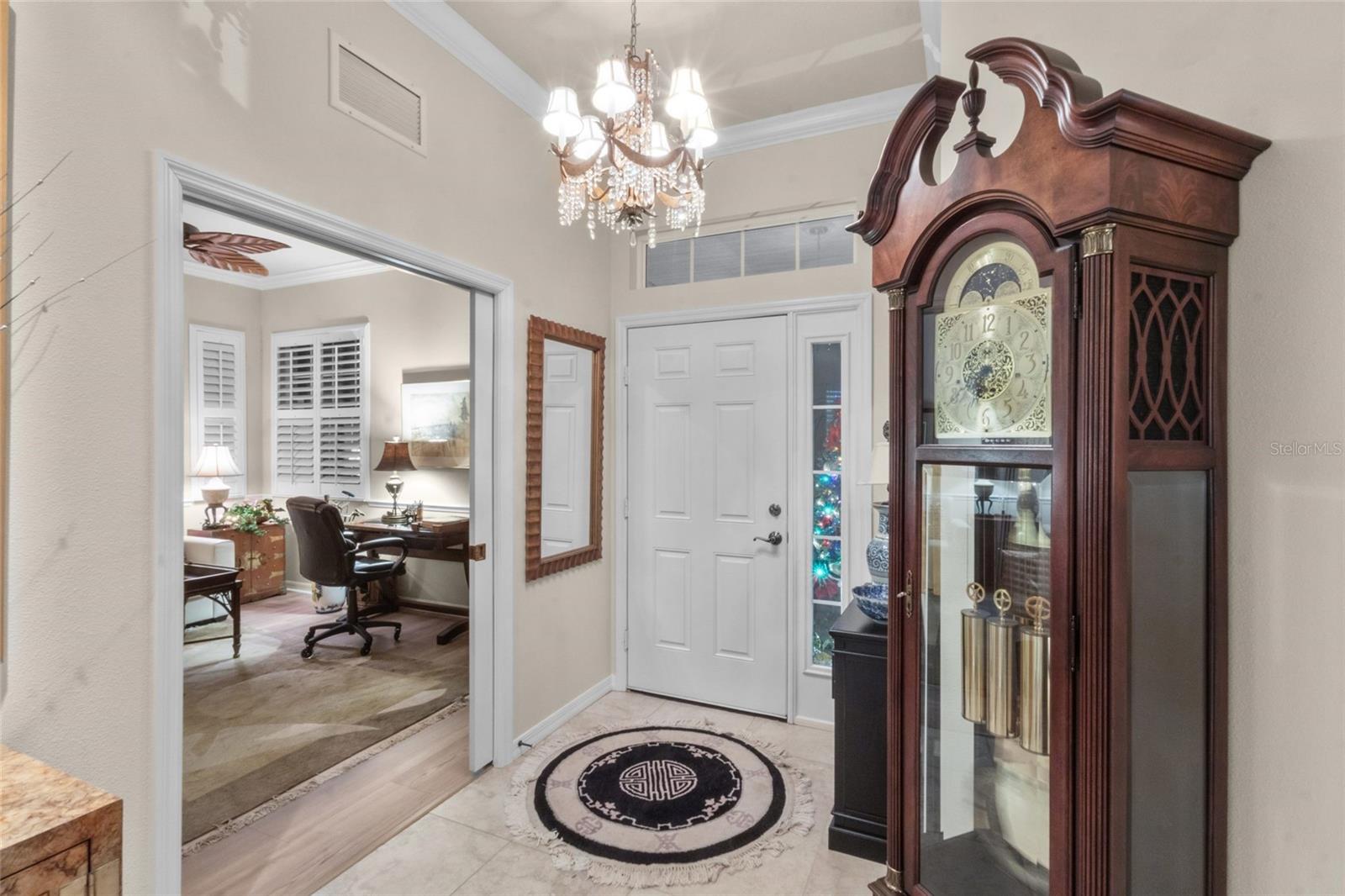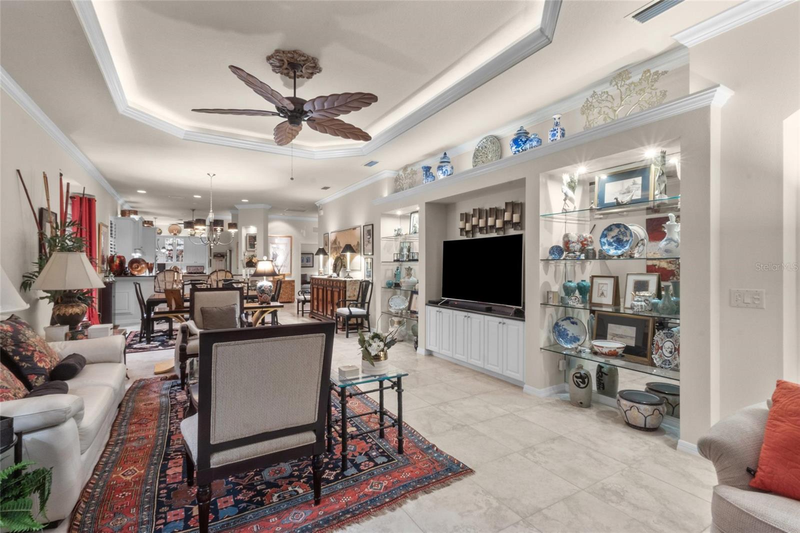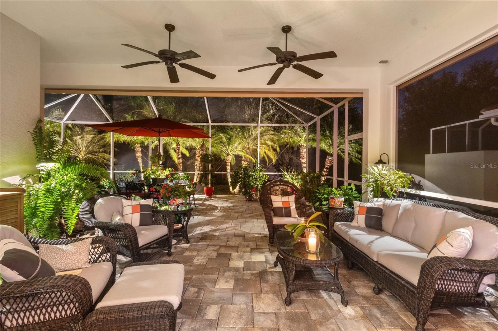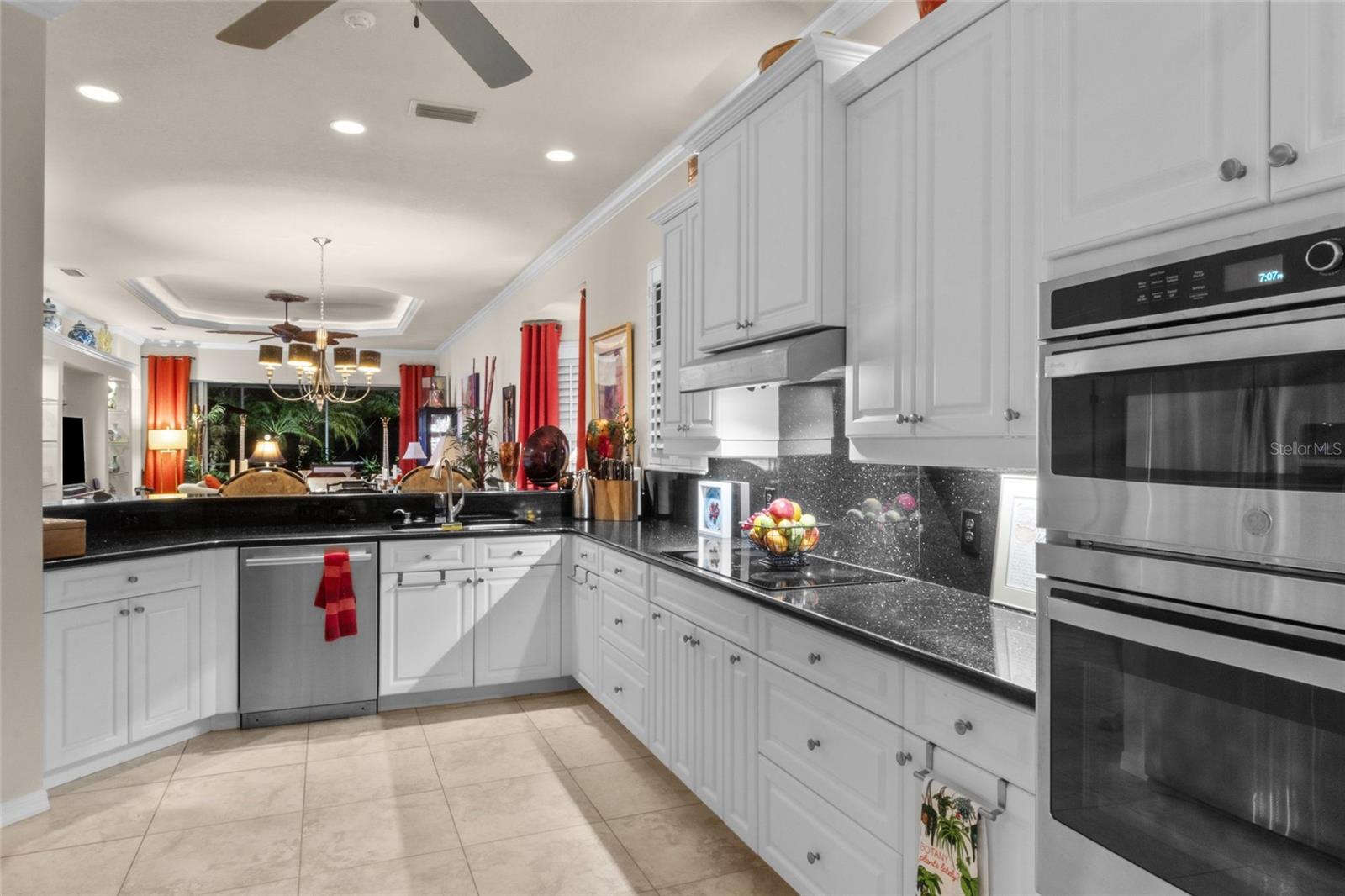 Discover easy, maintenance-free living where everything is handled for you, giving you more time to enjoy the Florida lifestyle. Exterior insurance, roof reserves, lawn care, pest and termite protection, exterior painting, and discounted high-speed internet are included in the quarterly fees. The community offers two pools, a resident-run clubhouse, no CDD fees, and optional membership at Plantation Golf & Country Club for golf, tennis, pickleball, fitness, dining, and social activities. This patio home stands out for its exceptional storage. The primary suite includes two walk-in closets, and the guest suite features another large walk-in closet plus pull-down attic stairs leading to a finished storage room—a rare and valuable feature in Florida homes. Inside, the home is bright and welcoming with neutral tile floors, plantation shutters, crown molding, and tray ceilings. The kitchen has crisp white cabinets, granite countertops, double ovens (2023), induction cooktop with hood vented to outside, Bosch dishwasher (2023), a walk-in pantry, breakfast bar, and an eat-in area framed by a bay window and additional cabinetry. The oversized screened lanai feels like a private tropical oasis, surrounded by lush landscape that creates complete privacy. A bubbling fountain and low-voltage lighting make this space perfect for relaxing or entertaining. Additional highlights include an inside laundry with utility sink, extra cabinetry and counter space, an epoxy-coated garage floor (2025), interior paint (2024), and a new HVAC system with blue light technology (2020). The home is fully storm-ready with impact glass windows, motorized roll-down Kevlar hurricane screen on the covered lanai, and accordion shutters at the primary bedroom slider—allowing quick and complete protection. A third bedroom currently serves as a den/office, offering flexible space for work or hobbies. Immaculately maintained and thoughtfully upgraded, this home offers the rare combination of maintenance-free living, privacy, and exceptional storage in a highly desirable Venice community.