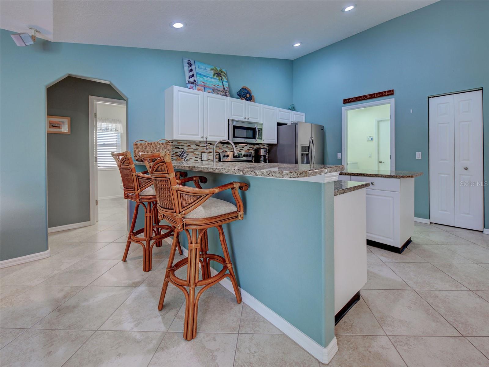 Finally a home that is perfectly placed! Located within 10 minutes of the Sandy Beaches of Venice and I-75 . It's here that you'll find a place to call home. From the moment you walk through the front door you're overcome by a feeling of tranquility. This 3 bedroom home opens up to an expansive pool area from the bedroom, kitchen, living & family rooms. Pool area is private with scenic lake and wooded views. Caged pool area is 26 x29with a newer Clearview Pool Cage! The home is perfectly equipped for the part timer with a heated pool, security system and hurricane shutters. Home has cathedral ceilings in the living room, tray ceilings in both the family room & master bedroom, with rounded drywall corners throughout the interior. Kitchen has an aquarium window, all stainless-steel appliances, raised panel cabinetry, granite counters and spot lighting. Master Bath features a walk-in shower and dual sinks! Garage is hurricane reinforced, has built in work bench area and extra cabinetry. Home is wired for surround sound and comes with the speakers! Venice Palms offers a paved walk/bike path. Neighborhood has its owned filtered well system for irrigation - Save $$$. Don't pay the County to water your lawn. And no City taxes!