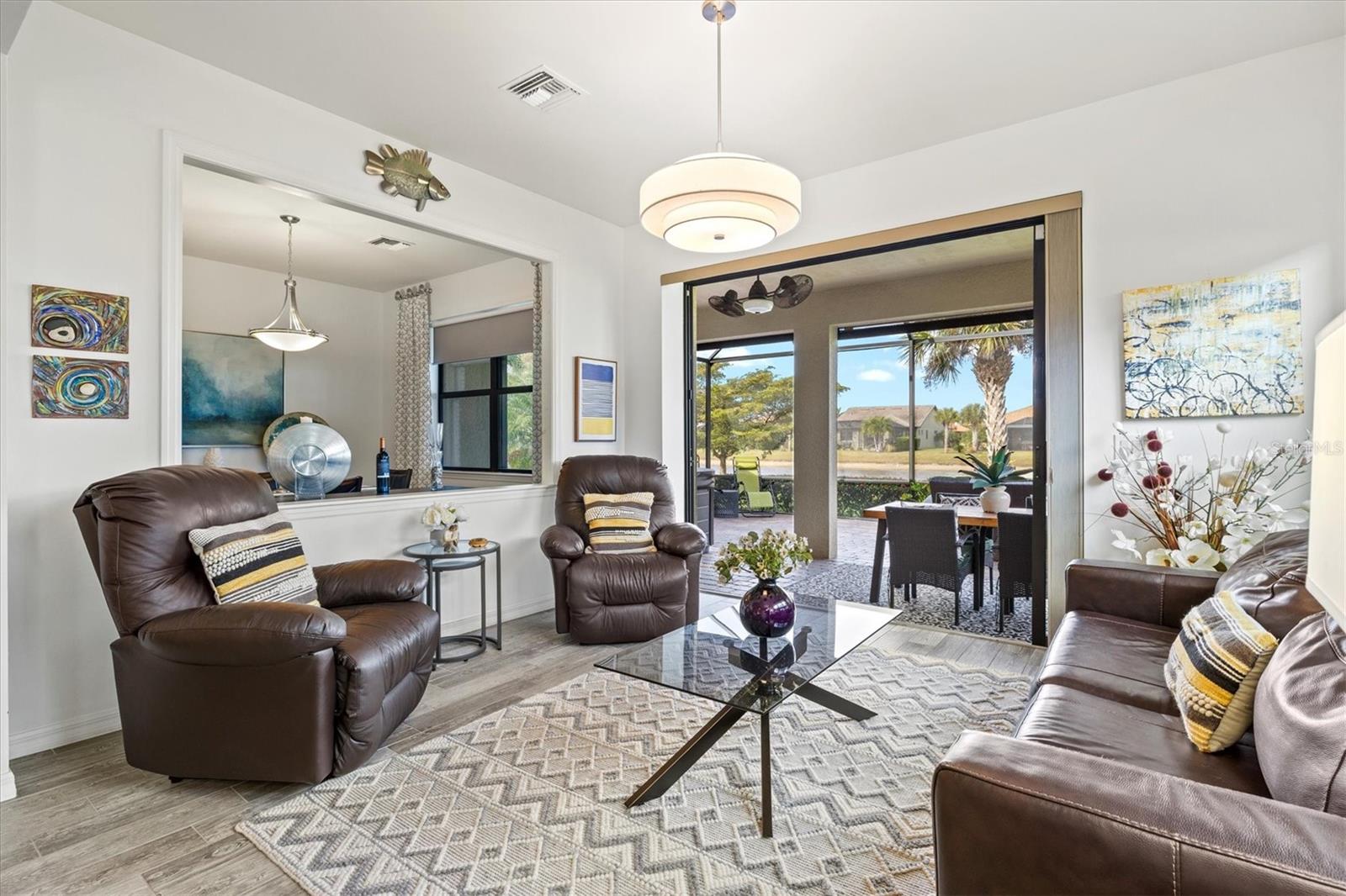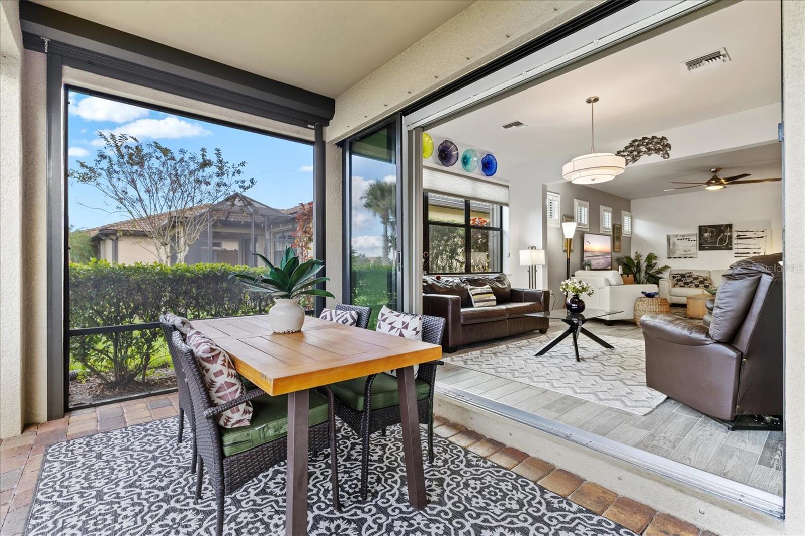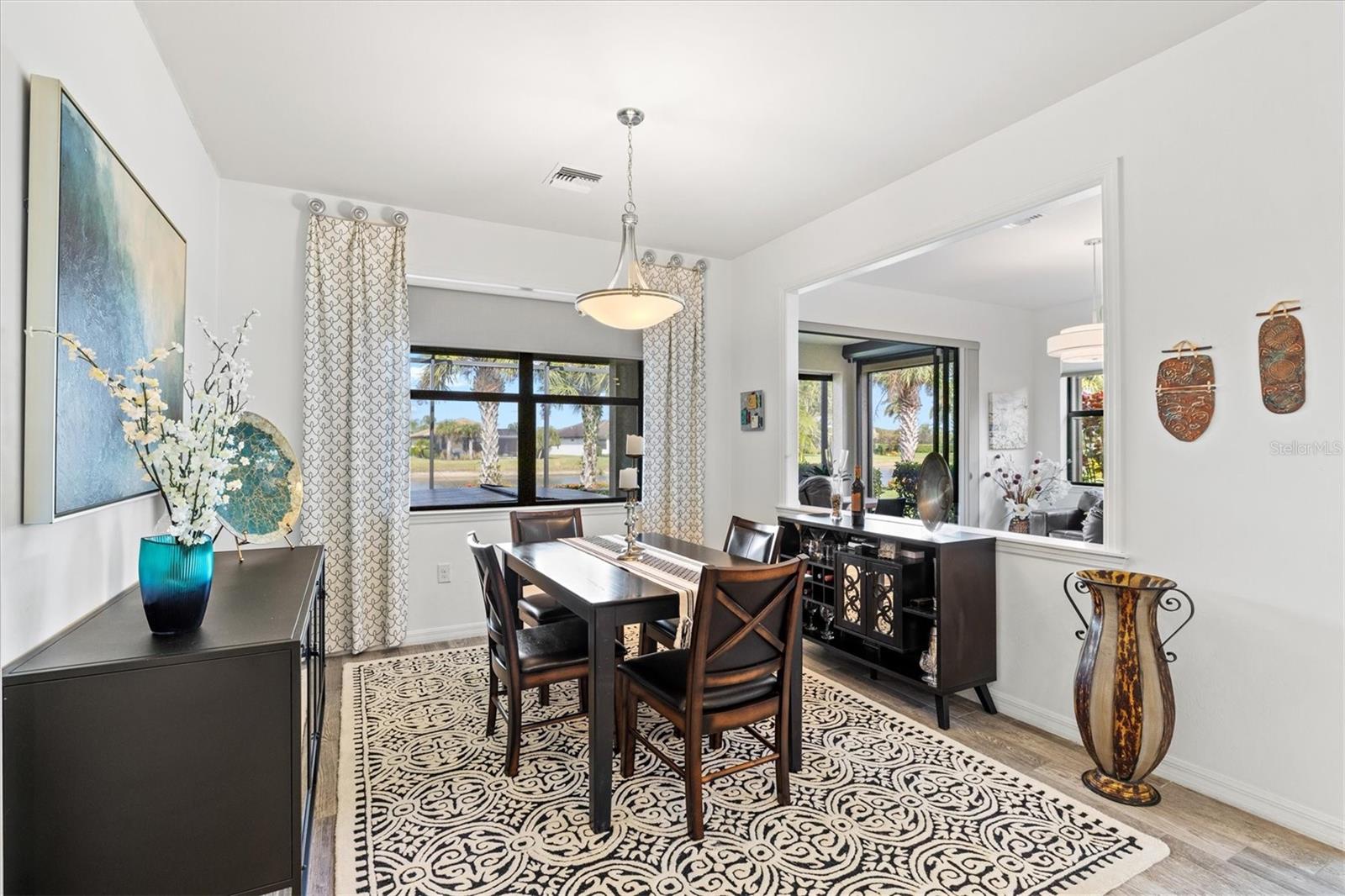 One of the most sought-after features in IslandWalk, and rarely available at this size and price point, this is a TRUE 4-bedroom home. Built on the popular DiVosta Summerwood floor plan, this upgraded residence offers 2,178 sq ft of living space and 2,838 sq ft total, combining flexibility, comfort, and value that is hard to find in the community. The home features four genuinely spacious bedrooms, not a den or flex room, making it ideal for families, guests, or those needing dedicated office space. Two full bathrooms complete the functional layout. A premium structural upgrade, the 10x13 sunroom, provides a peaceful space to relax or watch TV while taking in tranquil north-facing water views from the screened lanai. The kitchen is bright and modern with white cabinetry, quartz countertops, a custom contemporary tile backsplash, and a corner walk-in pantry with custom organization shelving. Additional upgrades include pendant and recessed lighting, ceiling fans throughout, a whole-home water softener, and seamless gutters. Hurricane protection is extensive with Storm Smart power screens on the lanai, a Kevlar roll-down screen at the front entry, and easy-pull accordion shutters for all windows. The garage is exceptionally upgraded with painted floors, ceiling-mounted storage shelving, an insulated garage door, and a mini-split AC unit to keep the space comfortable year-round. Exterior enhancements include a widened paver driveway and an extended paver walkway leading to the screened front lanai, a feature buyers truly appreciate. Outdoor living is enhanced with an upgraded hot tub and paver patio overlooking the serene lake, perfect for unwinding at the end of the day. Located on a quiet cul-de-sac street, the home offers added privacy and minimal traffic. IslandWalk is one of Venice’s most vibrant lifestyle communities, offering a full-time activities director, two clubhouses, resort-style pools, pickleball and tennis courts, miles of scenic walking, biking, and golf-cart paths, and a wide variety of clubs and social events. Just a short bike ride to the Atlanta Braves Stadium, residents also enjoy easy access to the nearby marketplace with Publix, dining, and shopping, as well as Downtown Wellen Park featuring an 80-acre lake, waterfront dining, retail, and live entertainment. A brand-new Costco is only minutes away. The IslandWalk HOA includes ground maintenance, cable, internet, amenities, and 24-hour guard-gated security. This home is NOT in a flood zone and has a low CDD fee. Don’t miss this rare true 4-bedroom opportunity, be sure to view the 3D Matterport and drone tours.