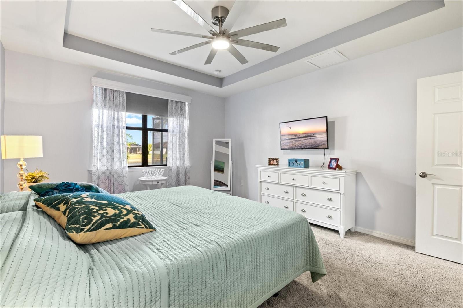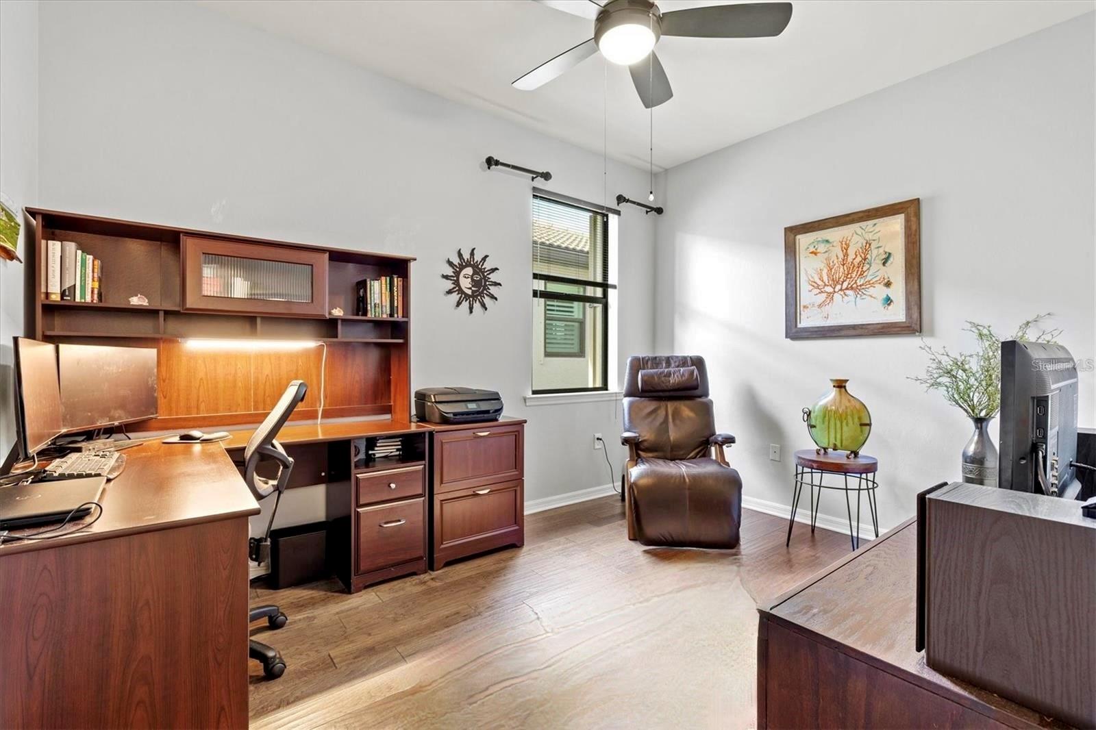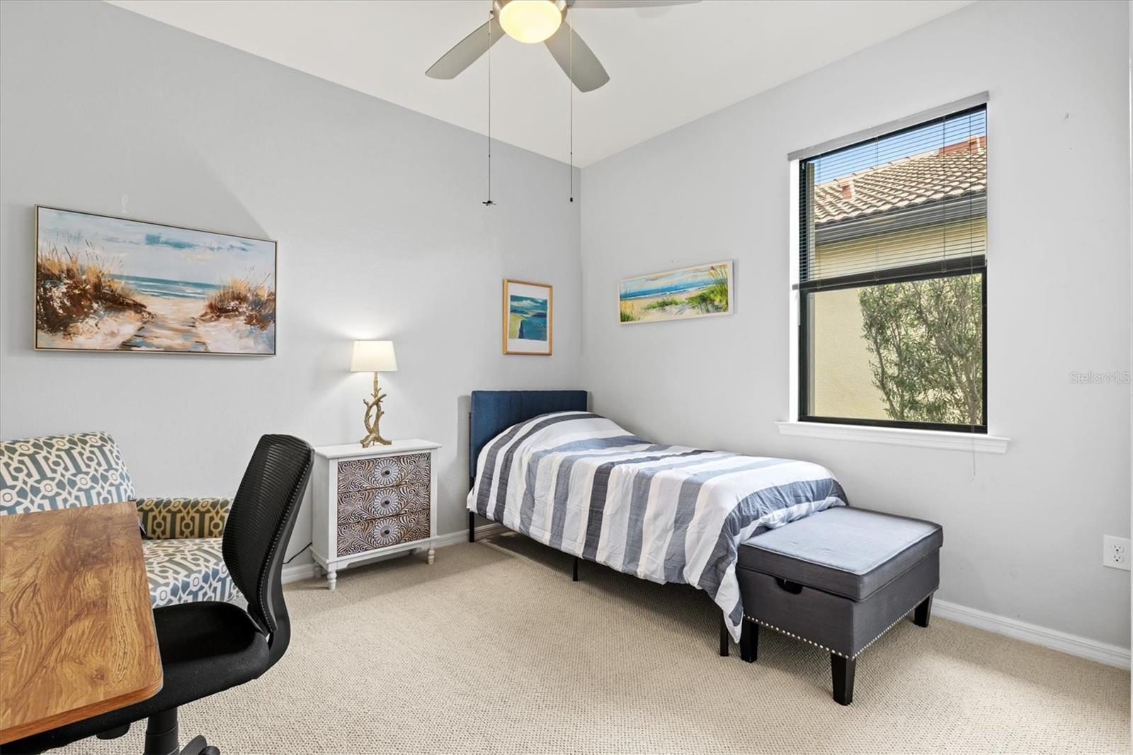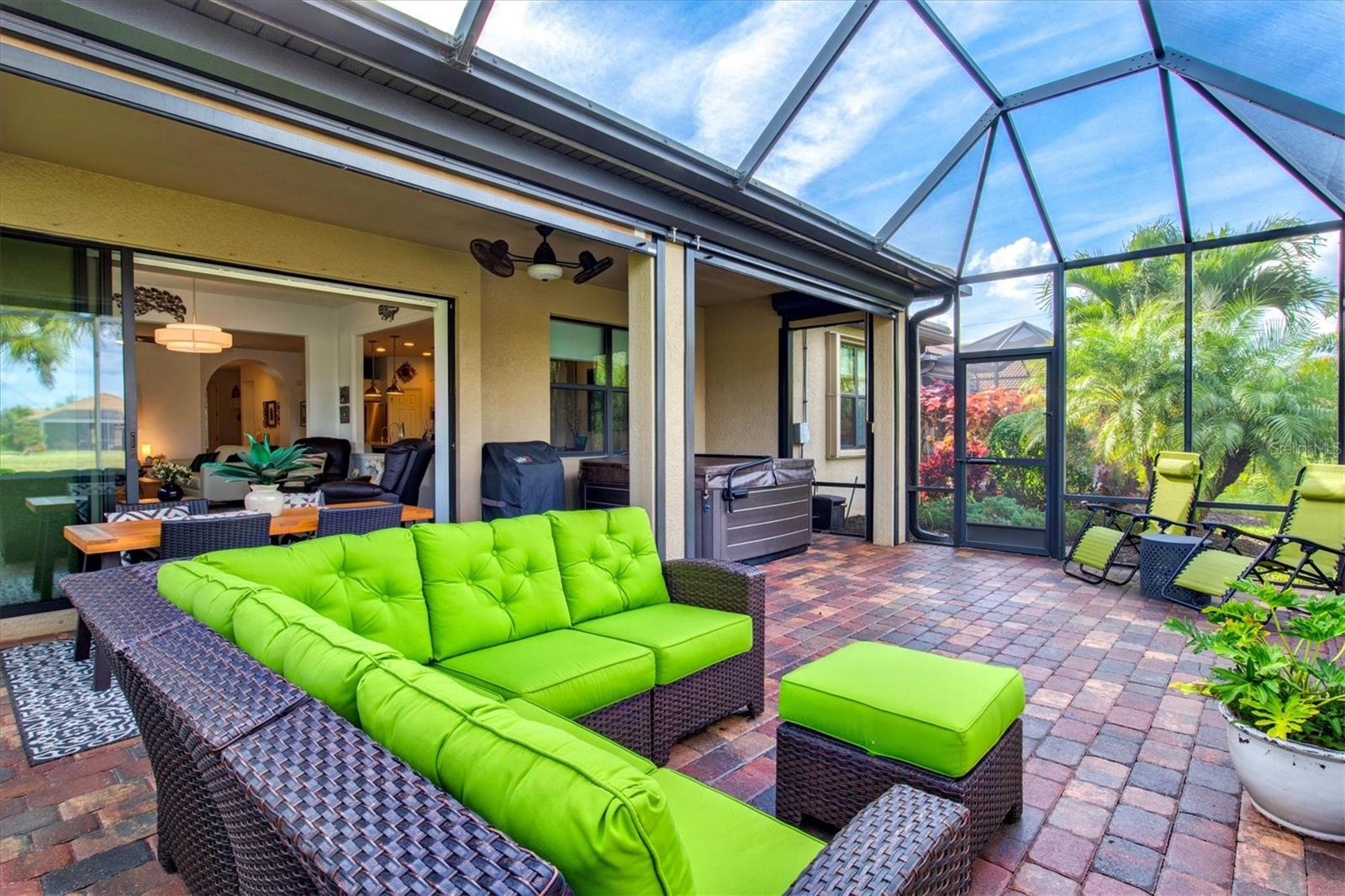 One of the most sought-after features in IslandWalk, and rarely available at this size and price point, this is a TRUE 4-bedroom home. Built on the popular DiVosta Summerwood floor plan, this upgraded residence offers 2,178 sq ft of living space and 2,838 sq ft total, combining flexibility, comfort, and value that is hard to find in the community. The home features four genuinely spacious bedrooms, not a den or flex room, making it ideal for families, guests, or those needing dedicated office space. Two full bathrooms complete the functional layout. A premium structural upgrade, the 10x13 sunroom, provides a peaceful space to relax or watch TV while taking in tranquil north-facing water views from the screened lanai. The kitchen is bright and modern with white cabinetry, quartz countertops, a custom contemporary tile backsplash, and a corner walk-in pantry with custom organization shelving. Additional upgrades include pendant and recessed lighting, ceiling fans throughout, a whole-home water softener, and seamless gutters. Hurricane protection is extensive with Storm Smart power screens on the lanai, a Kevlar roll-down screen at the front entry, and easy-pull accordion shutters for all windows. The garage is exceptionally upgraded with painted floors, ceiling-mounted storage shelving, an insulated garage door, and a mini-split AC unit to keep the space comfortable year-round. Exterior enhancements include a widened paver driveway and an extended paver walkway leading to the screened front lanai, a feature buyers truly appreciate. Outdoor living is enhanced with an upgraded hot tub and paver patio overlooking the serene lake, perfect for unwinding at the end of the day. Located on a quiet cul-de-sac street, the home offers added privacy and minimal traffic. IslandWalk is one of Venice’s most vibrant lifestyle communities, offering a full-time activities director, two clubhouses, resort-style pools, pickleball and tennis courts, miles of scenic walking, biking, and golf-cart paths, and a wide variety of clubs and social events. Just a short bike ride to the Atlanta Braves Stadium, residents also enjoy easy access to the nearby marketplace with Publix, dining, and shopping, as well as Downtown Wellen Park featuring an 80-acre lake, waterfront dining, retail, and live entertainment. A brand-new Costco is only minutes away. The IslandWalk HOA includes ground maintenance, cable, internet, amenities, and 24-hour guard-gated security. This home is NOT in a flood zone and has a low CDD fee. Don’t miss this rare true 4-bedroom opportunity, be sure to view the 3D Matterport and drone tours.