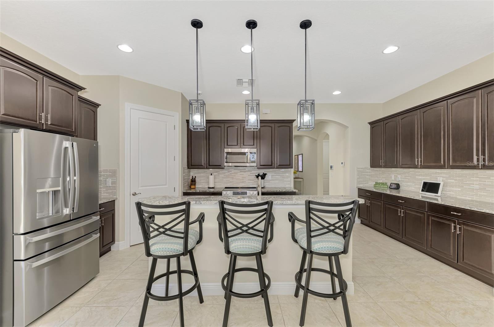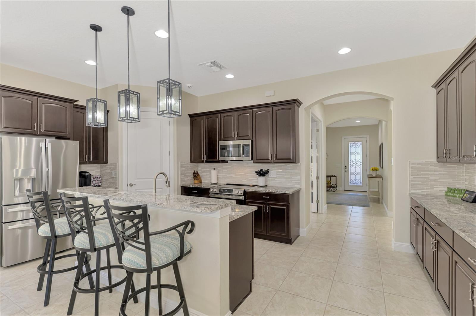 Discover the epitome of luxurious, low-maintenance living in this stunning 2017 WCI-built Islamorada model in Sarasota National! This 3-bedroom, 3-bathroom gem boasts a versatile den/office with elegant French doors, impact-resistant windows and doors throughout, and superior insulation on all interior walls for ultimate comfort and quiet. Enjoy upgraded 8-foot interior doors, enhanced baseboards, and a state-of-the-art home security and control system refreshed in 2025—complete with 6 cameras, DVR recorder, garage door control, main living area lighting, thermostat, and music integration. Step inside to find brand-new 2025 appliances including a stove, microwave, dishwasher, refrigerator, washer, and dryer, all complemented by espresso cabinetry, granite countertops, and custom lighting. The spacious primary suite enjoys lovely water views while featuring a custom-built closet. The epoxy-finished garage includes light-switch-controlled holiday electrical outlets for effortless seasonal cheer. Outdoors, unwind in your private 14x28-foot pool and spa (built in 2020, with lights and control panel upgraded in 2025), a complete outdoor kitchen installed in 2020, and a spacious lanai with travertine tile, Clearview screens, and remote-controlled awning—overlooking a serene pond and preserved land for unmatched privacy. As part of the certified Audubon community, Sarasota National dedicates over 1,300 acres to wildlife preservation, blending nature with resort-style amenities: a large zero-entry pool, lap pool, hot tub, 7,000 sq ft fitness center, coffee lounge/library, pickleball, tennis, bocce ball and toddler play area. Time to Relax.... enjoy the Palm Dining Room, Palm Lounge, and Tiki Bar—all on-site! Furniture available separately. Don’t miss this perfect harmony of elegance and tranquility—schedule your viewing today!