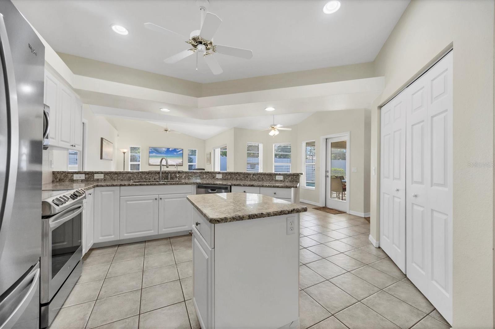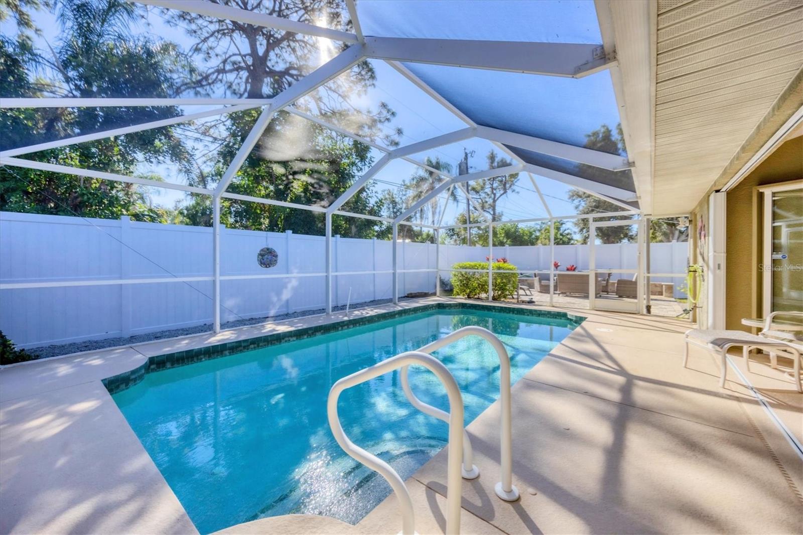 Welcome to this Sun-filled, spacious POOL home with mature landscaping on OVERSIZED LOT, NOT IN FLOOD ZONE.Outstanding curb appeal home tucked away on a quiet street in desirable Venice. Well maintained and thoughtfully upgraded, this home presents an exceptional opportunity to enjoy the best of Venice living. This very unique 3-bedroom, 2-bath residence features a 3 car attached garage, a heated pool, and a large paver patio with seating wall offering comfort, flexibility, and true Florida living on a 12,000 square-foot lot. Inside, the home offers a highly desirable split-bedroom floor plan with high ceilings, providing privacy and comfort for owners and guests alike. The guest bath is conveniently located between the two secondary bedrooms. Southeastern exposure fills the living areas and Pool with natural light, creating a bright and welcoming atmosphere year-round. The kitchen flows seamlessly into the adjoining family room, ideal for everyday living and entertaining. Sliding glass doors open to the screened lanai from 3 rooms including the master bedroom extending your living space outdoors. The Oversized, Fully Fenced backyard includes a double gate entry with enclosed gravel drive perfect for securely Parking a Boat or RV. Enjoy the freedom of NO HOA or CDD fees with optional access to the South Venice boat ramp available for a small annual membership. Notable UPGRADES include: New roof June 2020 New Rheem 50 gallon water heater Dec. 2021 LG front loader washer/dryer 2021 LG Induction/convection stove with matching over range Deluxe Microwave Dec. 2021 Kinetico water treatment system with softener, sulfur treatment, and large capacity pressure tank Dec. 2022. Fully fenced with new 8 foot vinyl fencing Dec. 2024 High-gauge aluminum accordion Hurricane Shutters on all windows and doors and completely across the lanai. Tracks recessed into concrete installed Mar. 2023. New Kinetico reverse osmosis under sink water filtration system installed Oct. 2019 HVAC system replaced in 2019. Rerouteand upgrade sprinkler system for new patio installed 12/2021. Please see all upgrades list in Realtor Remarks. Ideally, located near Wellen Park, the home is just minutes from the South Venice boat ramp and South Venice Beach ferry and 3 blocks from Shamrock Park making it perfect for boating, beach days, and outdoor recreation. The surrounding park amenities include docks, kayak launch, water access where dogs can swim, playground, tennis, and basketball courts, plus miles of biking and hiking along the 20 mile Venetian Waterway/Legacy Trail. Venice Island dining, shopping, and local events are just minutes away. The city’s welcoming community and strong sense of belonging make it an ideal place to establish roots and create lasting memories. Experience the best of Florida living with nearby beaches, golf courses, and outdoor recreational activities just a short drive away. Don’t miss out on the chance to own this extraordinary home. Schedule your private showing today. Furniture and artwork are available as an option.