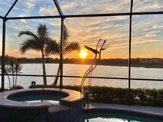 Discover the epitome of luxury living in this stunning Key Largo II model home, boasting over 3,000 square feet of meticulously designed space in the sought after Sarasota National community. Nestled on the golf side overlooking one of the largest lakes, this entertainer’s dream home offers breathtaking water views and spectacular sunsets every evening. The layout features 3 spacious bedrooms, each with access to its own full bathroom, plus a versatile carpeted loft configured as an additional bedroom with a full bath while also providing a relaxing seating area. A dedicated den/office and guest half-bathroom add to the functionality. The heart of the home is the expansive great room, seamlessly integrating dining and living spaces that flow openly into the gourmet kitchen, complete with a walk-in pantries, new slide-in range, and no carpeting on the first floor for easy maintenance. Elegant upgrades abound, including custom window treatments, crown molding, 8-foot doors, upgraded baseboards, hurricane-impact windows and doors, and a recent AC system. The primary suite is a true retreat, with a custom closet and luxurious spa-like bathroom. Step outside to your private oasis: an oversized undercover lanai with an outdoor kitchen, hurricane storm shade, and a free-form pool and spa enclosed in a clear-view screen cage (replaced in 2022), all framing those mesmerizing lake vistas. As part of Sarasota National—a community dedicated to over 1,300 acres of wildlife preservation—enjoy resort-style amenities like a zero-entry pool, lap lanes, hot tub, 7,000-square-foot fitness center, coffee/library lounge, pickleball, tennis, bocce, and four dining experiences including the Palm Dining Room, Palm Lounge, Tiki Bar, and 19th Hole. Plus, two golf memberships are included! This is more than a home—it’s a lifestyle. Schedule your private tour today!