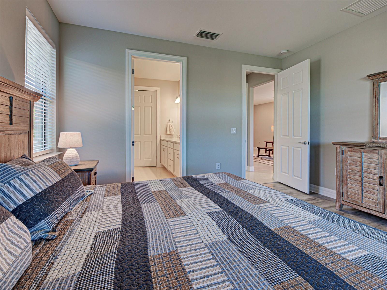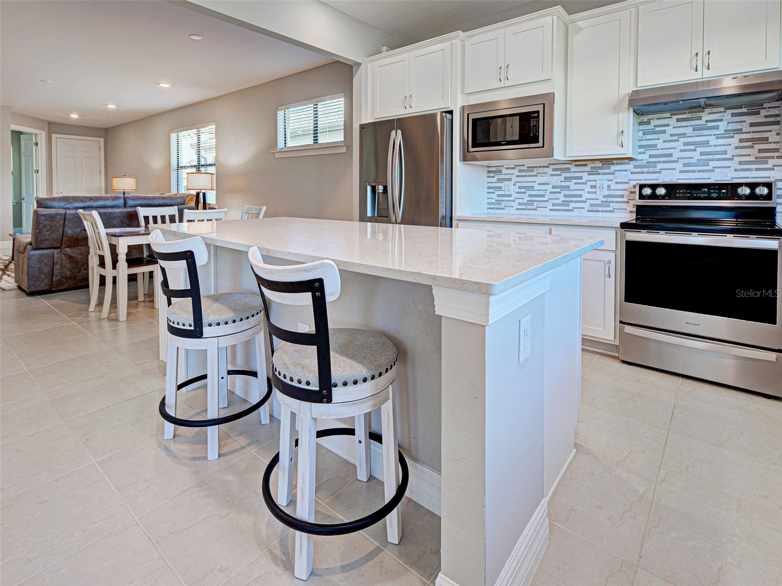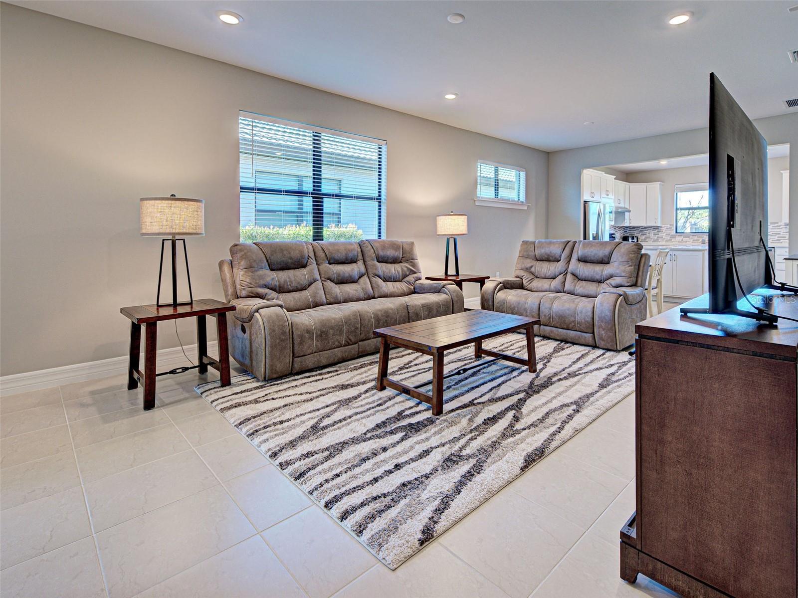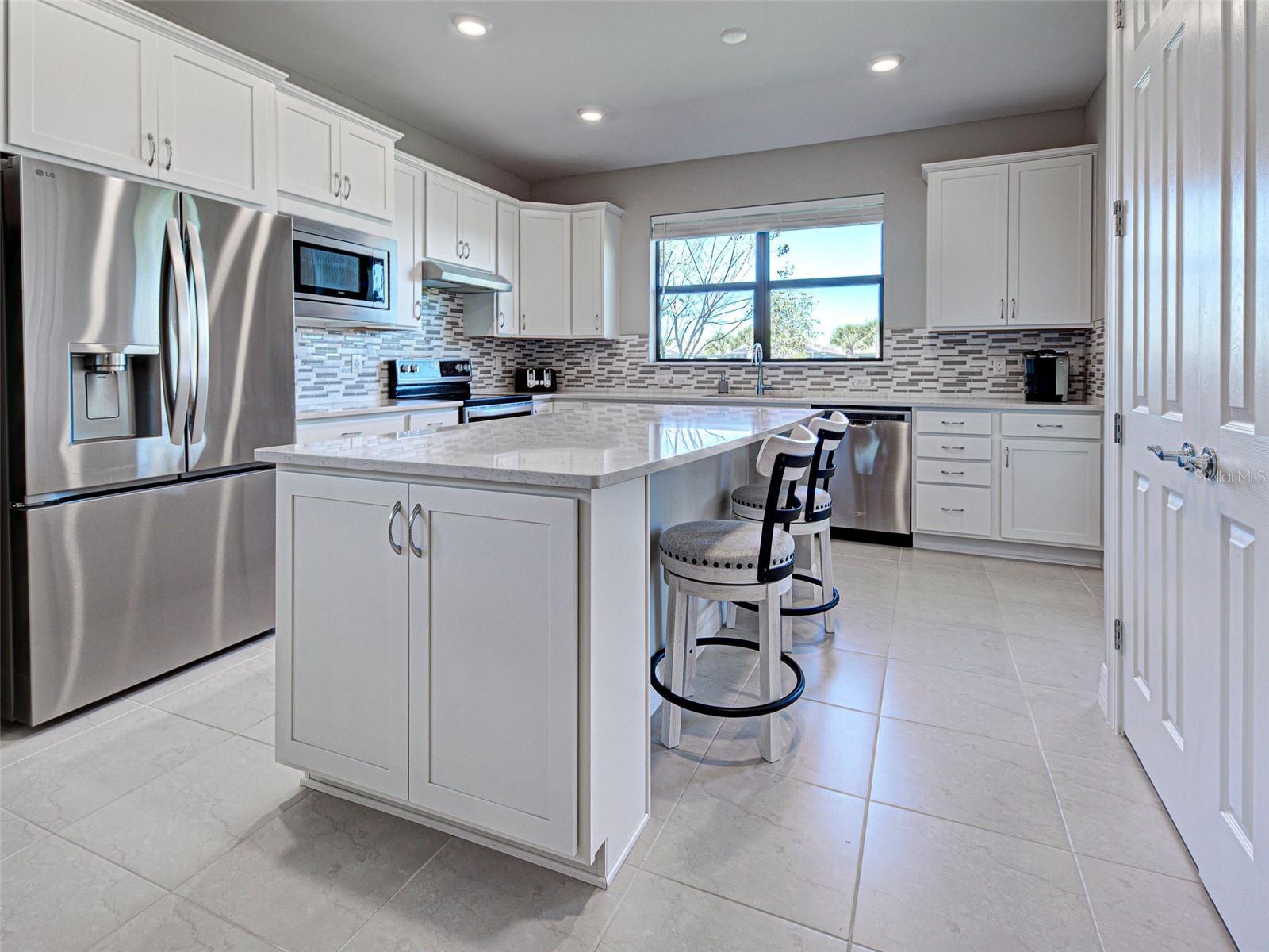 This gorgeous, like-new Taft home offers serene water views and has been visited very minimally during season. Impeccably maintained and truly move-in ready, this home features 2 bedrooms, 2 bathrooms, and a flex room that can easily be converted into a third bedroom, home office, fitness space, or hobby room. Even better, the home is being offered furnished, making your move effortless and allowing you to start enjoying the Florida lifestyle from day one. Located on quiet Vadini Street, the home sits just a few blocks from the clubhouse, providing quick access to community amenities. Step inside to find tile flooring throughout the main living areas and luxury vinyl in the bedrooms, with carpet only in the primary bedroom’s walk-in closet, paired with neutral tones that complement any style of decor. The open-concept Taft floor plan creates a seamless flow between the kitchen, dining area, and great room! The bright, comfortable kitchen features Whirlpool appliances, a newer LG high-quality refrigerator with a unique ice feature, perfect for cocktails, crisp white cabinetry, elegant backsplash, a large island, pantry storage, and plenty of convenient pull-out drawers. From here, you can enjoy water views and access the covered, screened lanai—perfect for indoor-outdoor living and year-round relaxation. The spacious primary bedroom includes luxury vinyl flooring, an en-suite bathroom with walk-in shower and glass doors, dual vanities, and a generous walk-in closet. It also offers lovely water views! The guest bedroom offers tile flooring and is thoughtfully positioned near the full guest bath. Additional features include a laundry room with Whirlpool washer and dryer, and a 2-car garage with clean epoxy flooring and a utility sink. With modern finishes, low-maintenance living, beautiful water views, and the convenience of being offered furnished, this home is an exceptional opportunity for seasonal or full-time living. This active community offers geothermal pools, Har-Tru tennis courts, pickleball and bocce ball, lap pools, spas, playground, basketball court, dog park, two state-of-the-art fitness centers, staffed 24-hour front gate, on-site HOA staff seven days a week, outdoor pavilions with BBQ grills, a library, and much more to keep you and your guests engaged. Golf carts are permitted throughout the community and can even be taken outside if registered. Residents also enjoy exclusive access through a resident-only back gate to Downtown Wellen Park, featuring a Marketplace anchored by Publix, the Atlanta Braves ballpark, restaurants, and entertainment. Conveniently located just 4 miles from I-75, Islandwalk offers easy access to multiple pristine Gulf beaches, airports, Historic Venice Island, and cultural events.