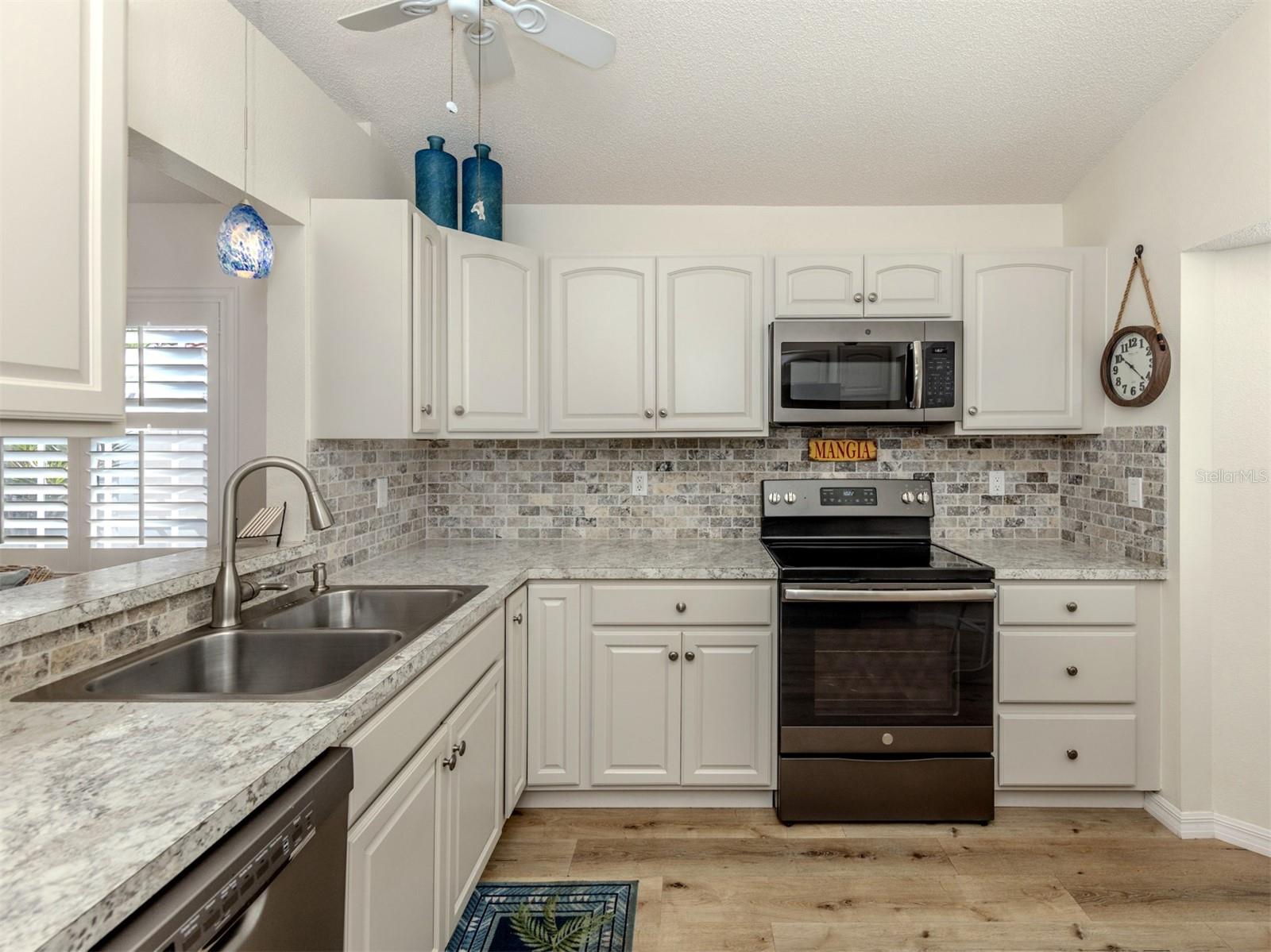 This beautifully appointed two-bedroom, two-bath furnished villa offers comfort, style and convenience in a serene setting. Designed with tasteful finishes throughout, the open plan creates a light and welcoming atmosphere, ideal for everyday living and entertaining. The spacious living area flows seamlessly to a peaceful private lanai, where you can relax and enjoy the lush landscaped surroundings. The well-equipped kitchen and baths reflect quality and thoughtful design. Some recent updates include a new roof, water heater, air-conditioning unit, hurricane windows/doors, and the list goes on. A two-car garage provides ample storage and convenience, while the villa's prime location places you just minutes from beautiful sandy beaches, as well as shopping, dining and top-tier medical facilities. This community has a refreshing pool where you can relax and unwind or go just a few minutes up the road and you can stick your toes in the sand. This is the best of both worlds. Whether you are looking for a day at the beach or to explore the vibrant local scene, this villa provides an ideal base for your lifestyle.