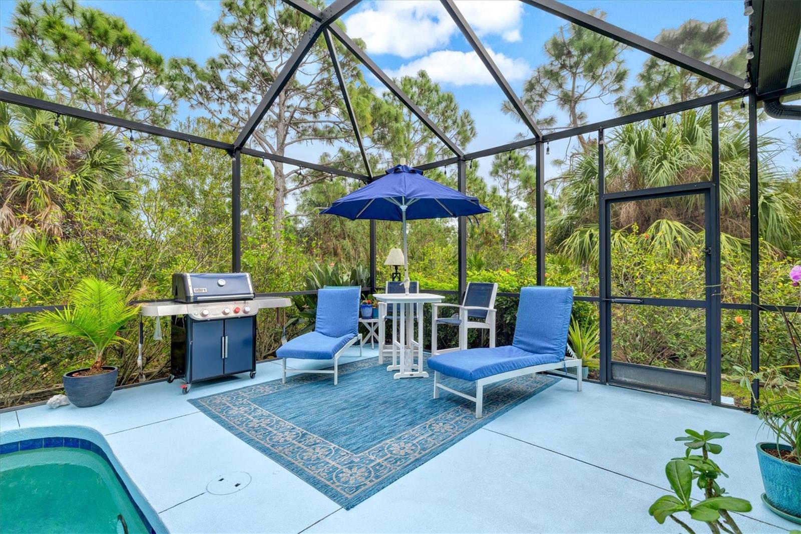 Welcome to Grand Palm, a highly desirable natural gas community, located in the Wellen Park area of Venice, Florida. This well-maintained Neal constructed home is situated on a private end lot and requires no flood insurance. Enjoy peaceful nature views and exceptional privacy — including tranquil mornings watching the sunrise over your pool, a serene setting ideal for relaxing or entertaining. This thoughtfully designed home features 3 bedrooms and 2.5 bathrooms with an open layout enhanced by a tray ceiling with crown molding in the living room, crown molding in the dining area, and crown molding in the primary bedroom. The kitchen is both functional and inviting, featuring 42” light shaker cabinets, tile backsplash, natural gas range, and stainless steel appliances and a walk-in pantry offering excellent storage and workspace. In the primary bedroom Dual walk-in closets provide ample storage, while the primary bathroom includes a spacious walk-in shower with build in ceramic shelves and separate toilet room. A convenient half bath off the pool is perfect for guests and outdoor living. The two-car garage includes a 2-foot extension for added storage. Inside you’ll find thoughtful upgrades including a whole-home generator, Rain Soft water softener, UV light system, pest tubes in the walls, hard-wired smoke detectors, and attic stairs. This home has been meticulously maintained. It has been freshly power washed, the roof professionally soft cleaned, and the pool deck recently painted. A front door screen adds comfort and airflow during cooler months. Enjoy your private, outdoor retreat featuring a fully screened lanai featuring a chlorine pool with a pool pump replaced in August 2025, set within a private, natural backdrop that enhances the peaceful ambiance. Residents of Grand Palm enjoy a robust resort-style lifestyle right at home, with extensive amenities including multiple clubhouses, a resort-style pool with waterslide, state-of-the-art fitness center, tennis, basketball, volleyball, pickleball and bocce courts, playgrounds, dog parks, and miles of scenic walking and biking trails through lakes and preserves. With a full time activity director community events and social spaces help foster connection and an active lifestyle. Located within the master-planned Wellen Park area, you’re also just minutes from downtown Wellen Park’s shops, dining and entertainment, and a short drive Venice Island and to the Gulf Coast’s beautiful beaches, combining outdoor beauty with everyday convenience.