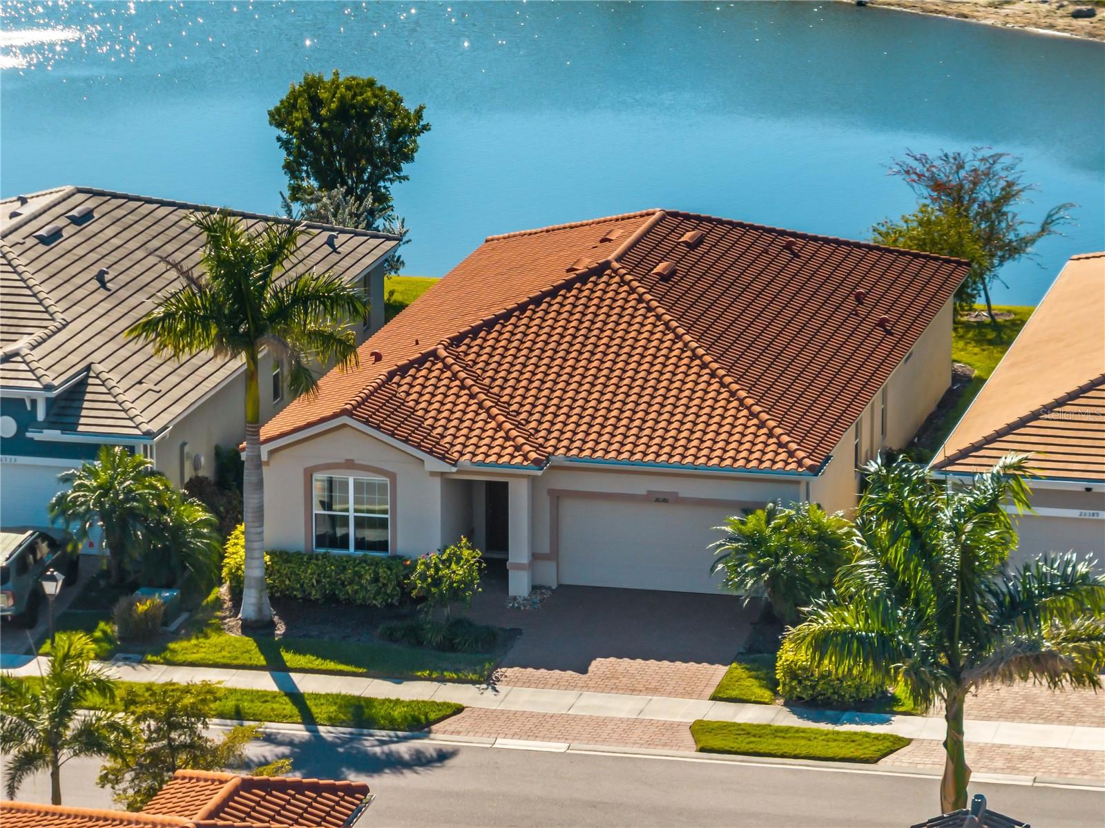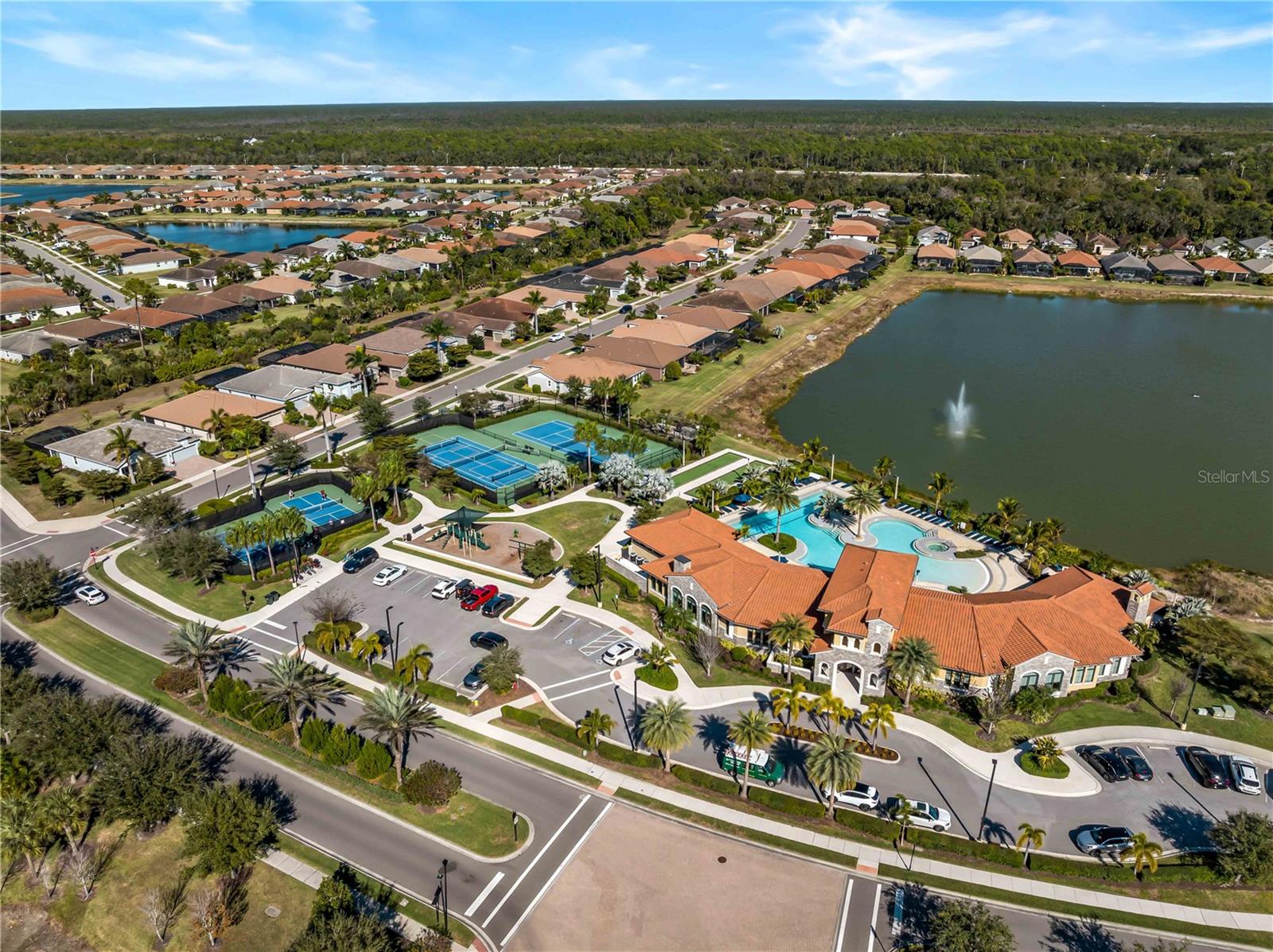 3 BEDROOM PLUS DEN. 2 BATHROOM. LAKE AND FOUNTAIN VIEW. This 3-bedroom plus den, 2-bath lake view home offers a welcoming layout that immediately feels open and easy to live in. A wide foyer guides you through the home, with two guest bedrooms thoughtfully positioned at the front for privacy. Both rooms are filled with natural light, and the guest bathroom sits conveniently between them, ideal for visitors or everyday use. Just off the main hallway, the den is set behind a single French door and works beautifully as a home office, bonus room, or additional bedroom depending on your needs. The kitchen, dining, and living areas flow together naturally, creating a space that feels connected without being overwhelming. The kitchen is bright and timeless with white shaker cabinetry, a large center island, an extended cabinetry wall for added storage, and a generous walk-in pantry. Tucked just behind the kitchen, the oversized laundry room offers plenty of space without interrupting the main living areas. Large windows in the dining area and a three-panel sliding glass door in the living room draw your attention to the pond beyond, bringing in soft natural light throughout the day. Step outside to the screened lanai, where there’s room to gather, unwind, or simply enjoy the peaceful backdrop of the water and fountain. The primary suite is comfortably sized and designed for everyday ease, featuring an impressively large walk-in closet and a well-appointed en-suite bath. Dual vanities, a spacious walk-in shower, and a separate water closet complete the space. With a thoughtful floor plan, inviting natural light, and calming lake views, this home offers a relaxed setting that’s easy to enjoy from the moment you arrive. Residents of Renaissance at Wellen Park enjoy a gated community with resort-style amenities including a clubhouse, fitness center, pool, pickleball courts, tennis courts, and a full calendar of social activities. Just beyond the gates, Wellen Park offers miles of trails, dining and shopping at Downtown Wellen, and spring training at CoolToday Park. Englewood and Manasota Beach are a short drive away, offering easy access to the Gulf, while I-75 provides convenient connections north and south. Several major medical centers and local hospitals are also nearby, adding to the ease of everyday living.