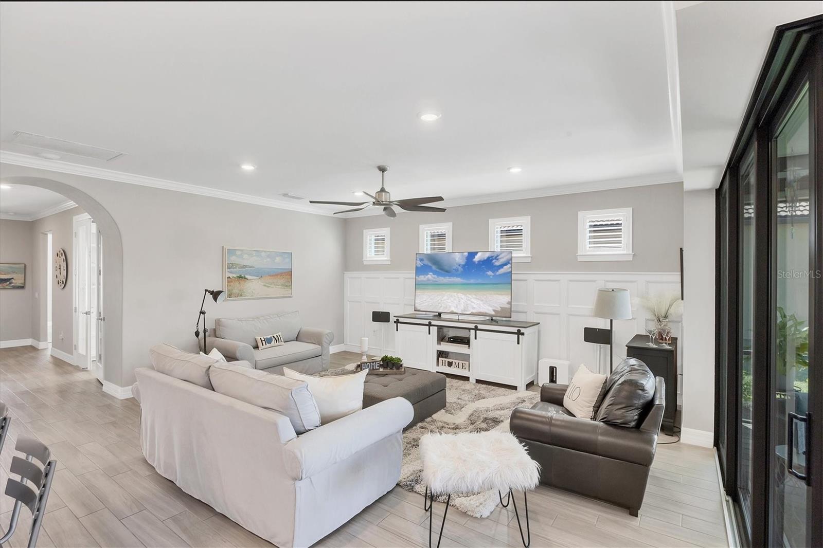 UNFORGETABLE! Describe this "most popular" SUMMERWOOD floor plan located in the OUTSTANDING community of ISLANDWALK. This home is a SPECTACULAR offering that WON'T LAST LONG. From the outside curb appeal to all the high end options the seller has put together a masterpiece that screams perfection. Before you even step inside, the pavered driveway and sidewalk leads up the Gorgeous leaded glass front door. Don't forget to stop and admire all the extra tropical landscaping put in, sparing no expense. The minute you walk inside you will see this METICULOUSLY taken care is the one for you. Starting with the latest style in neutral decor tones and crown molding. Stroll by the extremely spacious DEN/OFFICE with glass front French doors and arrive at the truly MAGNIFICENT HEART OF THE HOME. The open floor plan brings together the kitchen, living room, and dining space. ZERO CORNER POCKET DOORS enhance the space by opening everything up to the SPACIOUS AND ENHANCED LANAI overlooking GORGEOUS LAKE VIEWS AND VIBRANT SUNSETS! Back inside, the GOURMET kitchen offers QUARTZ Counter tops, 42 inch Cabinets, TILE BACKSPLASH, STAINLESS STEEL appliances, FARMERS SINK, PENDANT LIGHTING, and EXTRA RECESSED LIGHTING. Walk in pantry has CUSTOM SHELVES. SOFT CLOSE kitchen drawers. Bead Board in front of Island. Large living space with enhanced with Board and Batten designed wall. PLANK TILE flooring throughout the main area of home. PLANTATION SHUTTERS on all the windows. Master bedroom with tray ceiling has en suite bath offering dual sinks and walk in shower with Tile to the Ceiling. NEW CARPET. Large walk in closet. Guest bath at other end of the home for privacy with same high end choices.. SEPARATE DEN/OFFICE with BUILT IN SHELVING, TRAY CEILING and CUSTOM SHIP LAP WALL. Heading out to the garage you will find a custom designed entryway bench for taking off your shoes and hanging your coats and hats. 2 car garage with extension adding room for your golf cart, toys, storage, or whatever your needs might be. 3 4x8 heavy duty storage racks. Garage door is insulated to reduce heat. EPOXY FLOOR FINISH. PARTIALLY FINISHED ATTIC WITH PULL DOWN STAIRS. Huge laundry room with tons of space for extra storage or adding more shelves. Wash sink in laundry for those really dirty jobs. Upgraded rounded corners throughout. Upgraded fans and fixtures. NOT DONE YET!! Don't worry about hurricanes, home has IMPACT RESISTANT WINDOWS WITH STORM SMART SCREEN ON LANAI AND FRONT DOOR. Islandwalk is a Premier resort style community offering 2 Clubhouses with swimming pools/spa and fitness centers, 12 lighted pickleball courts,8 Har Tru tennis courts, bocce ball, Dog Park and 2 activities directors coordinating tons of activities/social events. Designed w/ the outdoors in mind- walking paths and bridges flow throughout the community amidst the tropical landscape. Located minutes to Manasota Beach, Venice Beach, shopping, and Venice Downtown with its quaint shops, restaurants, and theatres. Plus just around the corner from the Atlanta Braves stadium and spring training camp, the NEW WELLEN PARK designed community with tons of restaurants, shops, and activities, The 80 acre Grand Lake with numerous outdoor water activities and walking trails. Back gate is now open for easy access to enjoy all the activity choices outside of Islandwalk. RUN, RUN, RUN, DON'T WALK. Don't miss out- this is the new upcoming PLACE TO BE!!! Start living your Florida Lifestyle Today!!