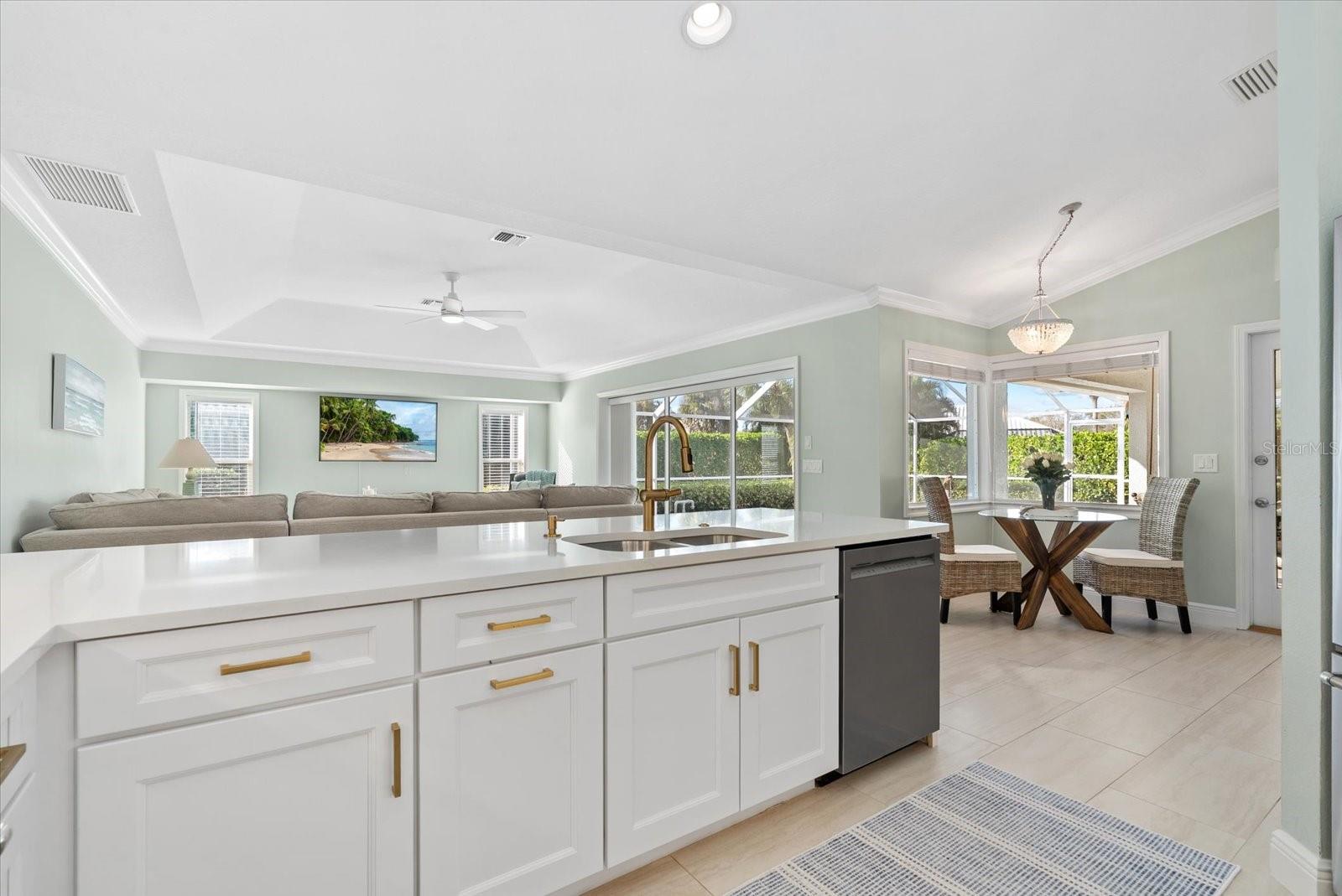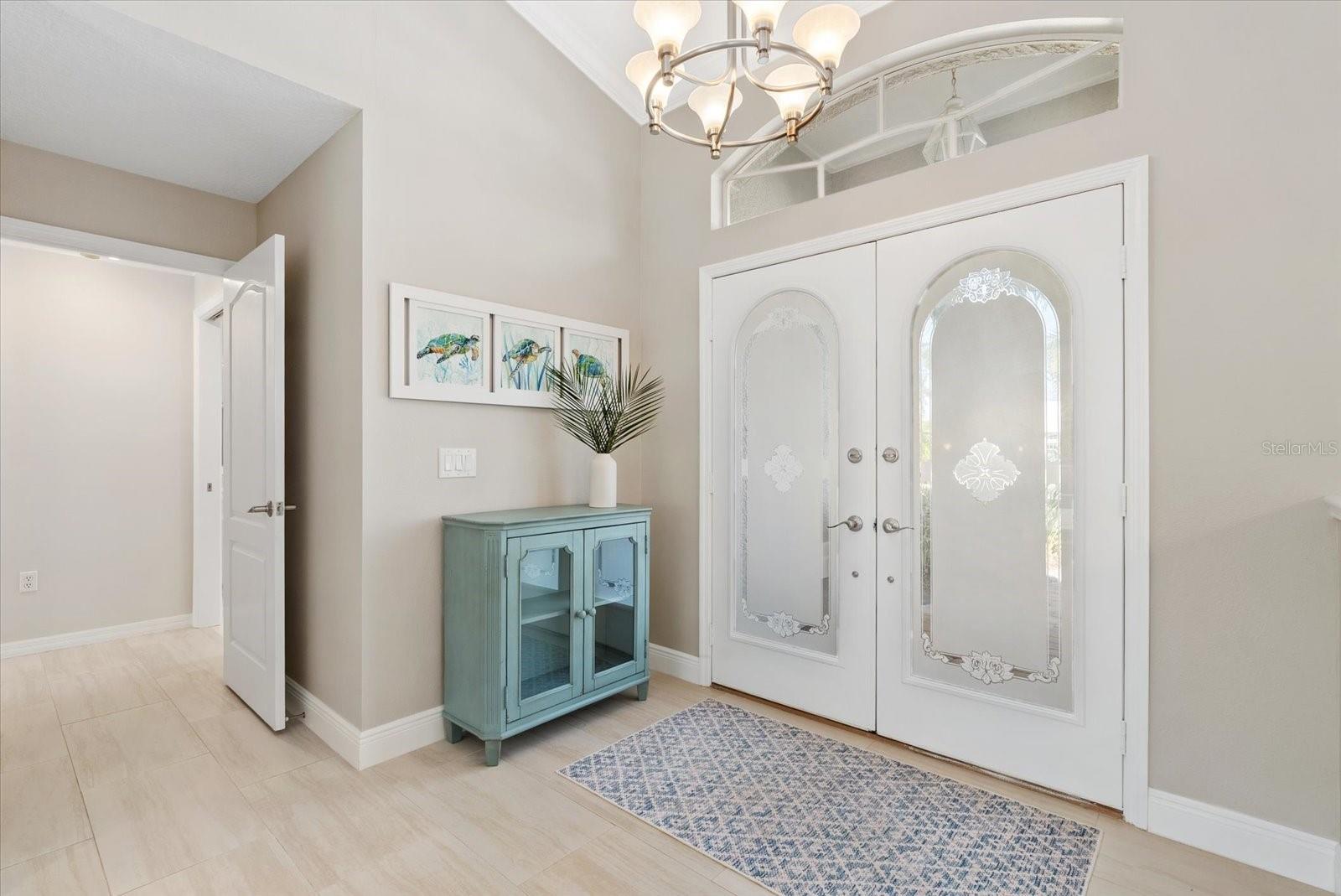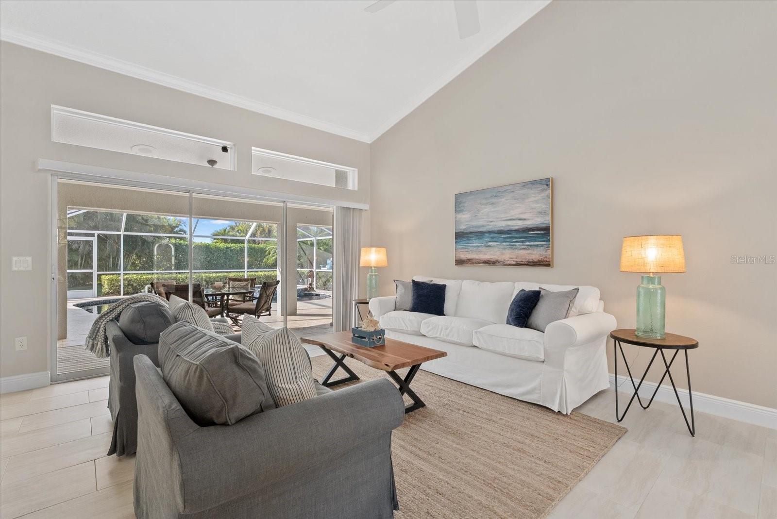 BRAND NEW HVAC! HEATED POOL & SPA! 3 CAR GARAGE! NEWER ROOF! 331 Meadow Beauty Court is situated on an oversized one-third acre lot at the end of a quiet cul-de-sac in the Lakes of Jacaranda. This thoughtfully updated residence delivers privacy, space, and refined Florida living. Notable updates include the Roof 2018, Re-piped 2022, Interior updates completed 2023, HVAC January 2026! The interior is tastefully updated with tile flooring throughout and fresh carpet in the two guest bedrooms. Crown molding adds architectural interest throughout the home, while the open kitchen, breakfast nook, and family room combination creates a seamless, functional layout ideal for everyday living and entertaining. The open kitchen features a walk-in pantry and is completely renovated with new cabinetry, quartz countertops and stainless-steel appliances, offering a clean and modern aesthetic. Multiple living spaces include a dining and living room combination, as well as a separate family room—each enhanced by abundant natural light from sliding glass doors leading to the screened-in lanai. The primary suite is privately positioned and features its own set of sliding glass doors to the lanai, dual walk-in closets, and an en-suite bathroom with split vanities, a soaking garden tub, and a separate shower. The split floor plan places two spacious guest bedrooms and a beautifully renovated guest bathroom, complete with a floor-to-ceiling tiled shower, glass enclosure, and quartz vanity. Outdoors, the property truly distinguishes itself. The expansive screened lanai offers a heated pool and spa with a PebbleTec finish and is surrounded by freshly sealed travertine tile decking. Lush landscaping and mature pitch apple hedges fully enclose the backyard, creating a PRIVATE, resort-like setting that is topped off with a custom-made beach complete with sand and palm trees! This adds a unique and playful coastal retreat to enjoy the Florida sun with your toes in the sand from your backyard! There is a private well for all your irrigation needs. Significant upgrades include a newer roof from 2018, re-piped in 2022, interior renovations completed in 2023, and a brand-new A/C system installed January 2026. The Lakes of Jacaranda has a community clubhouse, pool, tennis and pickleball courts specifically for the use of the residents of Lakes of Jacaranda. This is a polished, move-in-ready home offering exceptional privacy, strong updates, and a backyard experience designed to be enjoyed year-round. Located a short drive from downtown Venice, and the local sparkling beaches, downtown Wellen Park and CoolToday Park, home of the Braves spring training facility.
