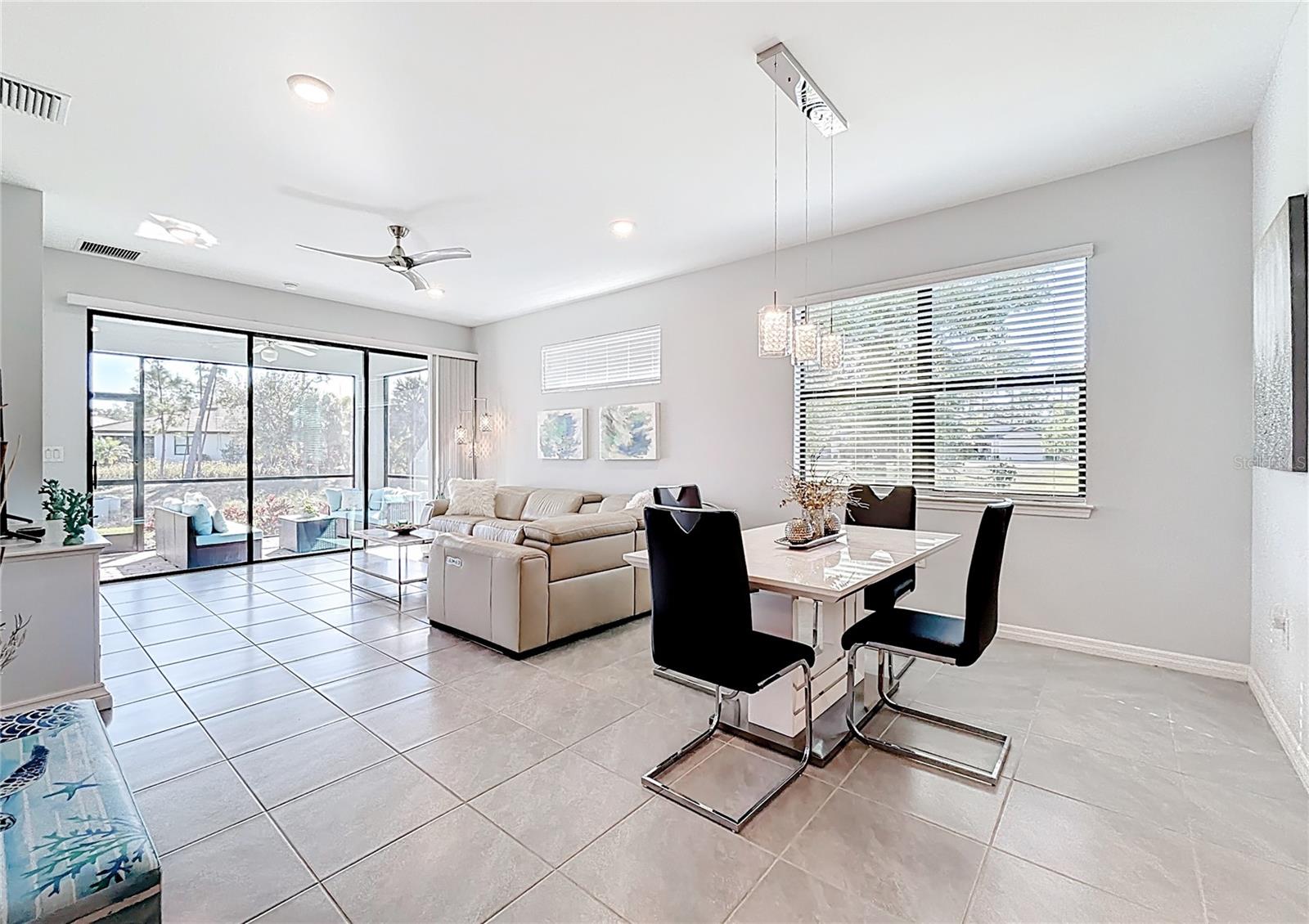 Welcome to an exceptional opportunity to own a luxury paired villa in The Preserve at West Villages, one of Wellen Park’s most desirable gated communities in Venice, Florida. Perfectly positioned at the end of a quiet cul-de-sac, this home offers low traffic, no road noise, and a rare sense of privacy and nature that is increasingly hard to find. The standout feature? A stunning 90-degree water view from your lanai, with no neighboring lanai obstructing the side view - a truly unique setting that delivers serene pond views, open sightlines, and unforgettable Florida bird watching! This premium lot location alone sets this home apart from new construction options. Inside, the villa features 2 bedrooms plus a den, an open-concept floor plan, and tile flooring throughout (no carpet anywhere) creating a clean, modern, and low-maintenance living space ideal for full-time residents or seasonal homeowners. The thoughtfully designed kitchen offers granite countertops, large center island with breakfast bar, two pantries (abundant storage rarely found in villas), and flows seamlessly into the dining and living areas for effortless entertaining. Additional interior highlights include window blinds, upgraded ceiling fans, and upgraded chandelier and pendant lighting—valuable additions that are not included with most new construction villas. These upgrades are already in place, saving both time and money. Peace of mind comes standard with updated 2020 construction, tile roof, hurricane shutters. The 2-car garage paired with a rare double-length driveway, provide ample parking for guests—another feature seldom found in paired villas. The Preserve at West Villages is a gated community with some of the most reasonable HOA fees in Wellen Park, offering exceptional value. Fee includes lawn care, irrigation, irrigation maintenance, annual mulch refresh, roof replacement reserves, and exterior painting reserves, allowing for true maintenance-free living. Residents enjoy resort-style amenities such as a community pool, pickleball courts, fitness center, club room, and bocce ball. Location is everything, and this home delivers. Just minutes from Publix, dining, shopping, and the rapidly growing Downtown Wellen Park, residents enjoy a vibrant lifestyle filled with weekly concerts, yoga classes, farmers markets, walking paths around Grand Lake. You'll also look forward to Wellen Parks signature annual events including Oktoberfest, the Wellen Wine Festival, Fine Art Fair, and Luminary Festival, and many more! CoolToday Park (home of Atlanta Braves Spring Training) is only 2.5 miles away, adding to the area’s appeal. This is more than a home - it’s a luxury, low-maintenance Florida lifestyle in one of Venice’s most sought-after master-planned communities. Villas with this water view, driveway length, cul-de-sac location, community amenities, and low fees rarely come to market. Schedule your private showing today and experience why this property truly stands apart.